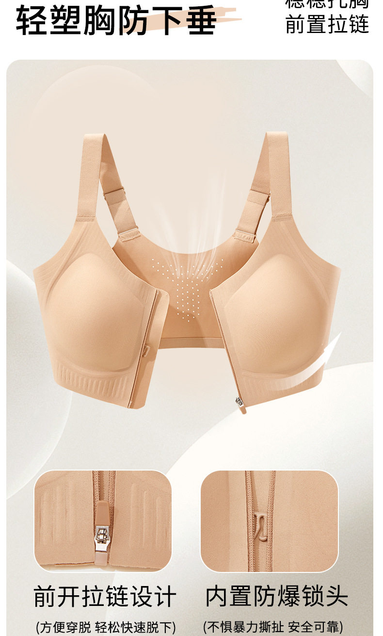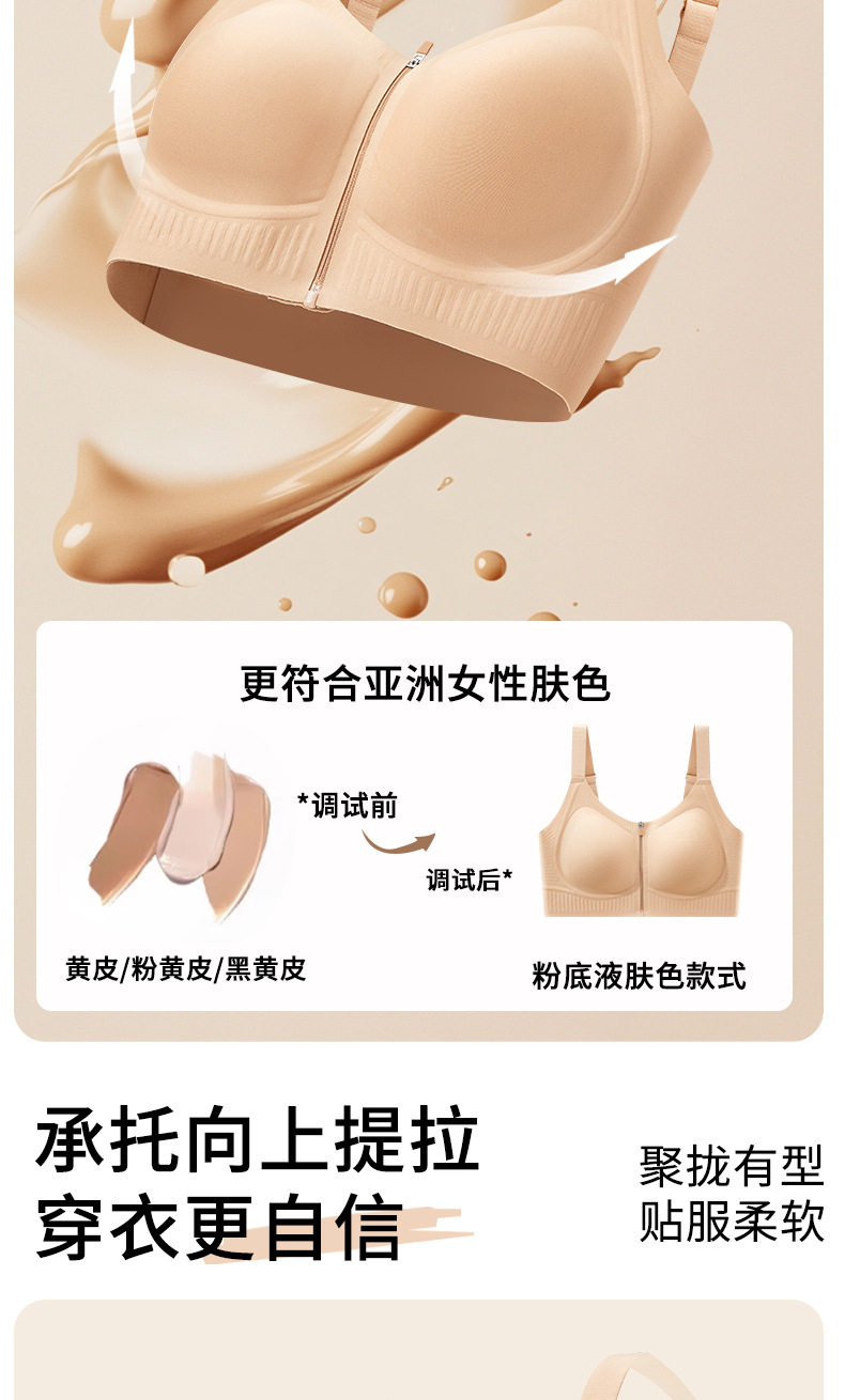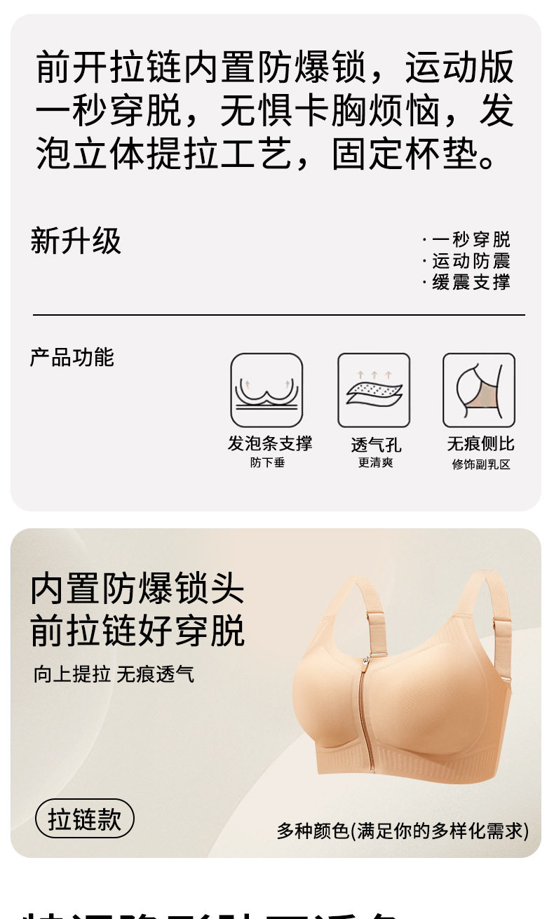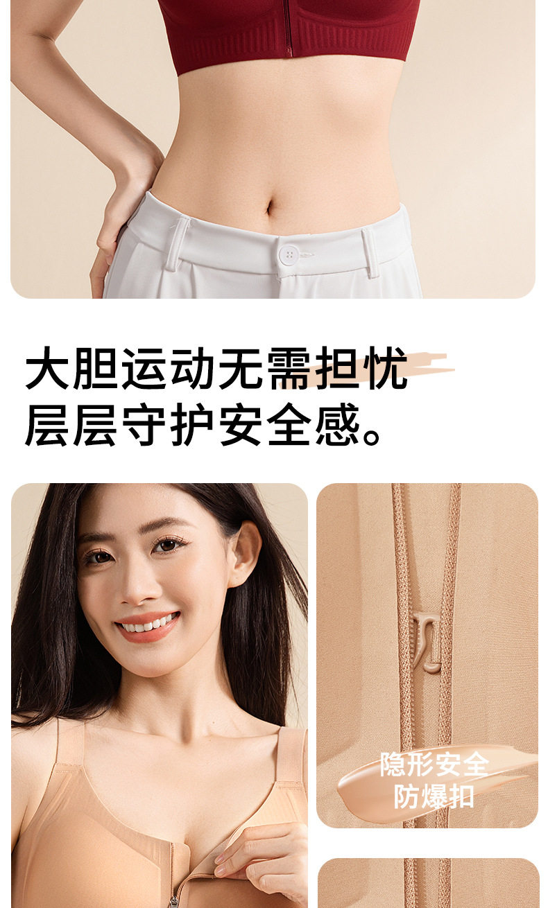 前置拉鍊粉底液運動文胸桑蠶絲養膚大胸顯小無鋼圈瑜珈運動內衣女