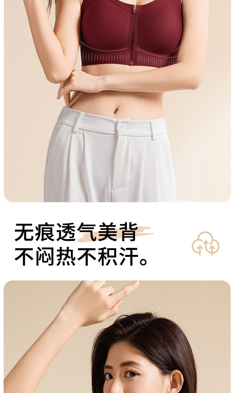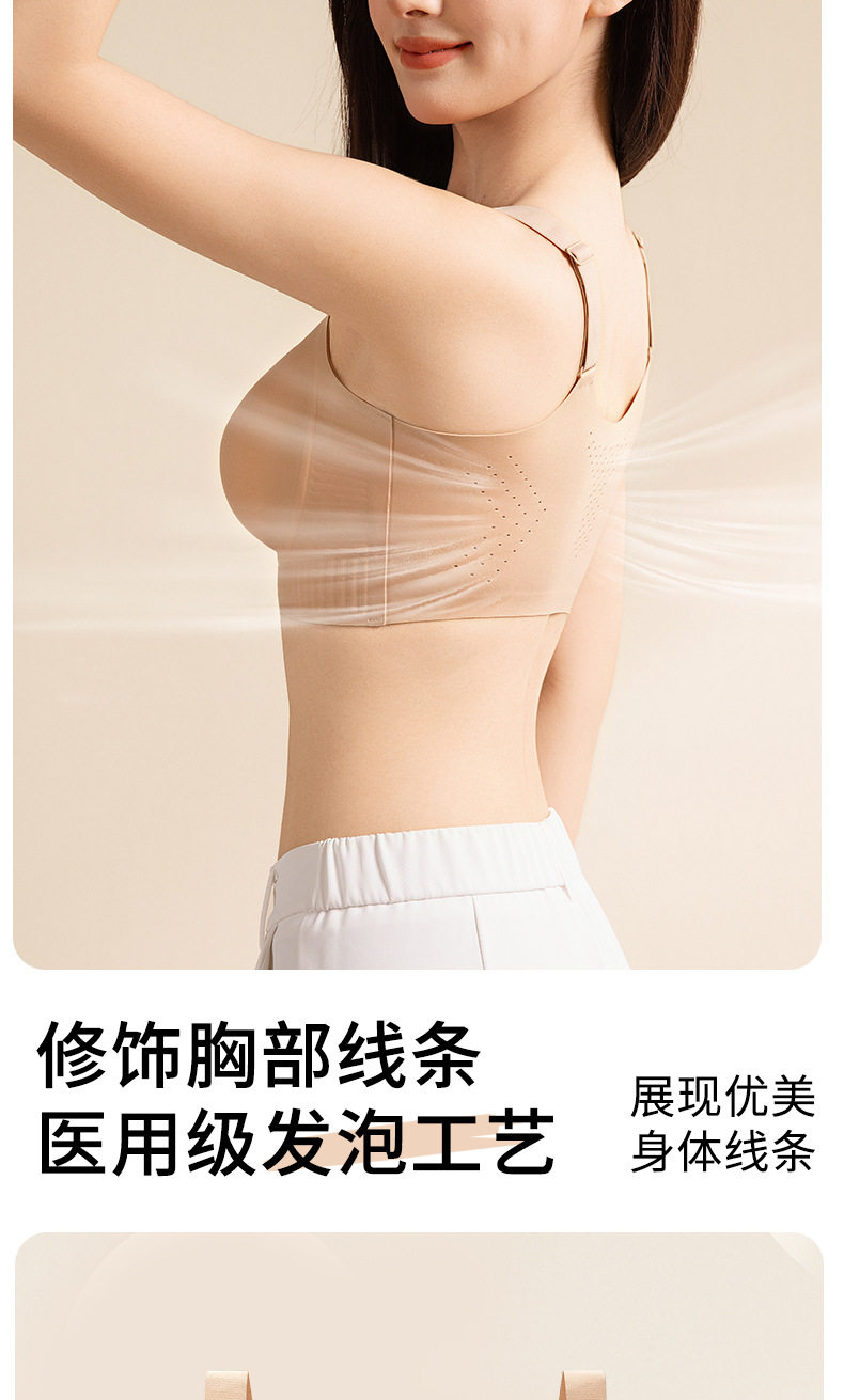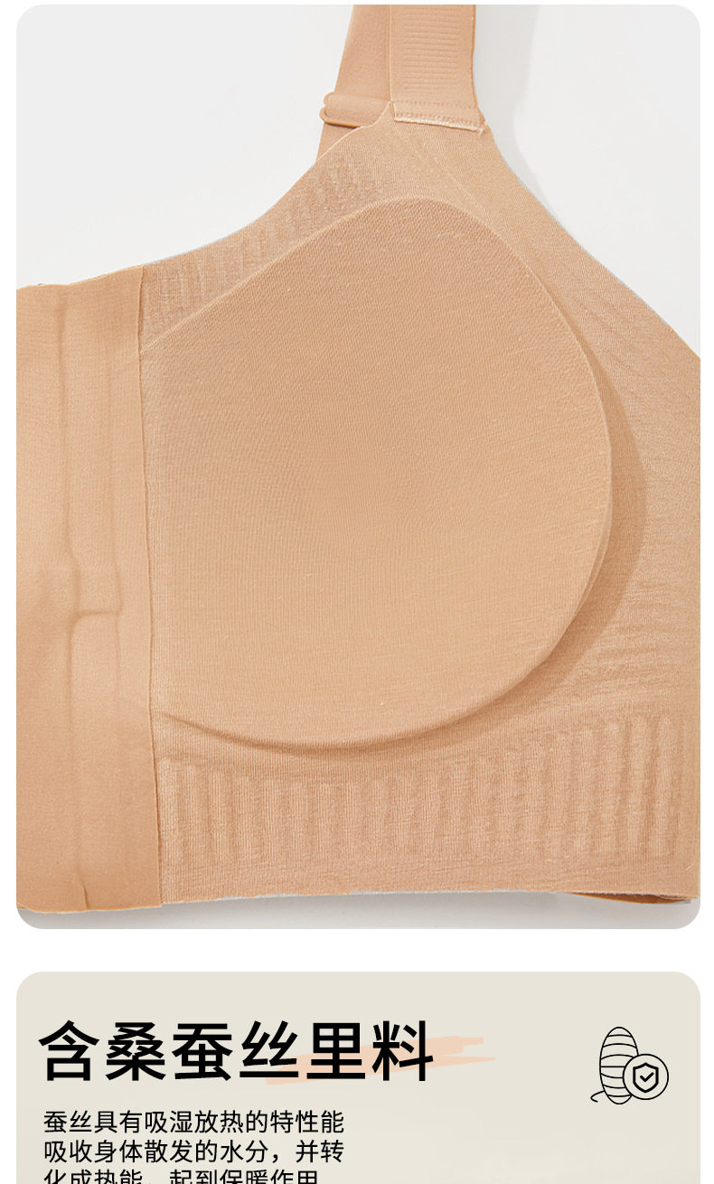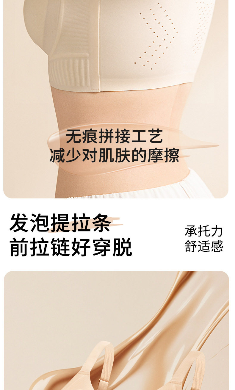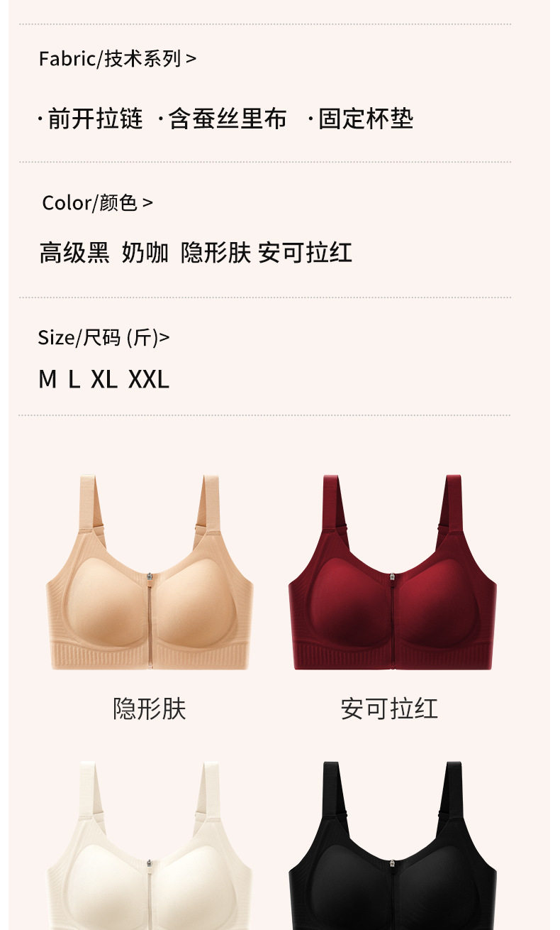前置拉鍊粉底液運動文胸桑蠶絲養膚大胸顯小無鋼圈瑜珈運動內衣女