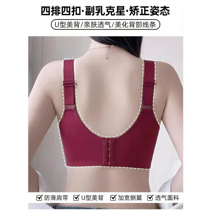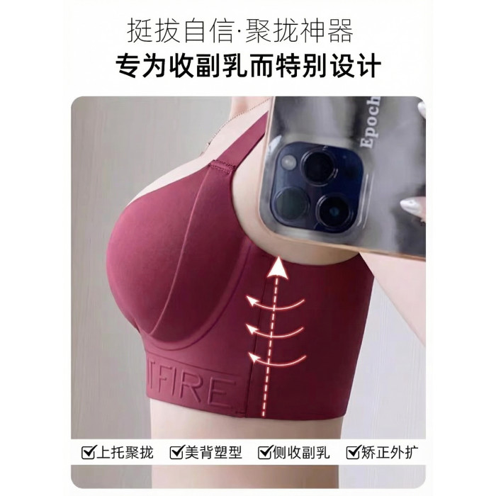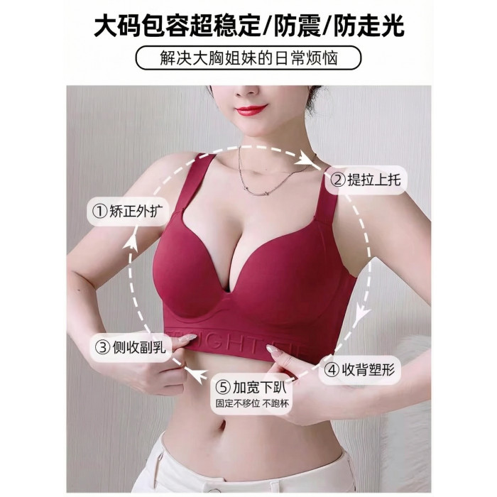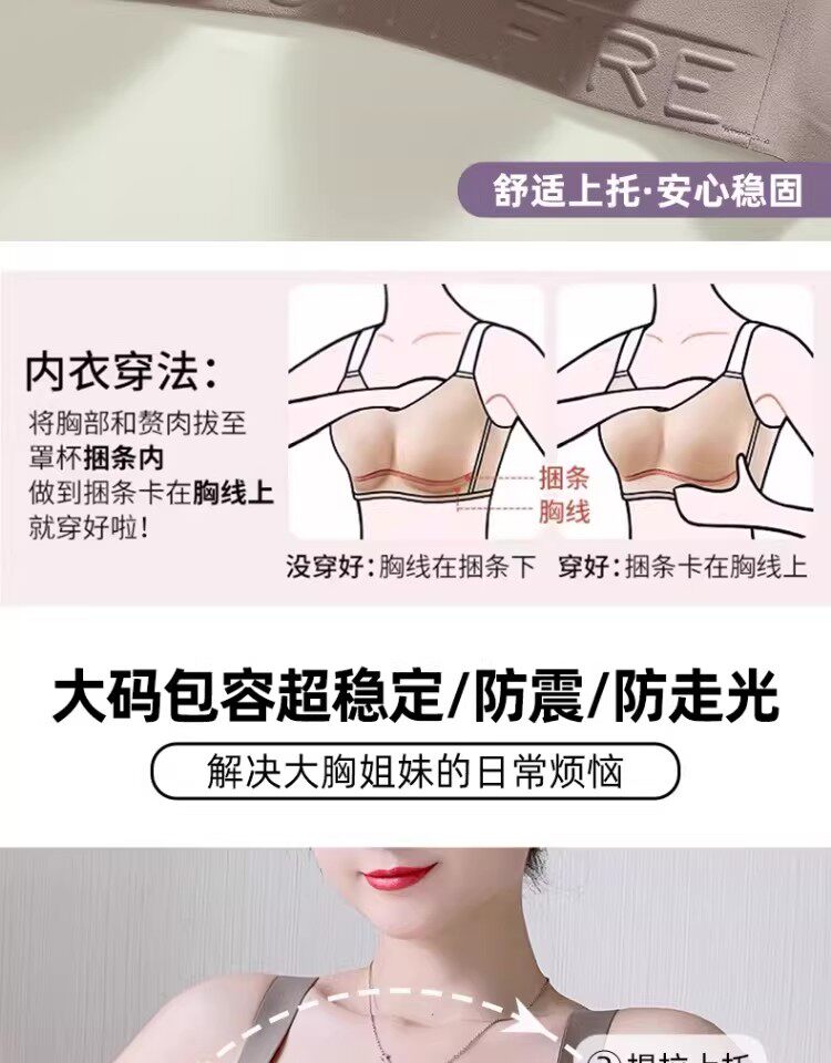 新款本命年紅色內衣女士大胸顯小聚攏收副乳防下垂大碼文胸罩套裝