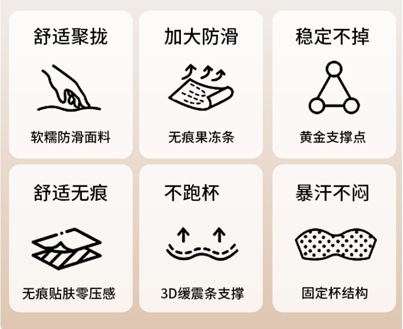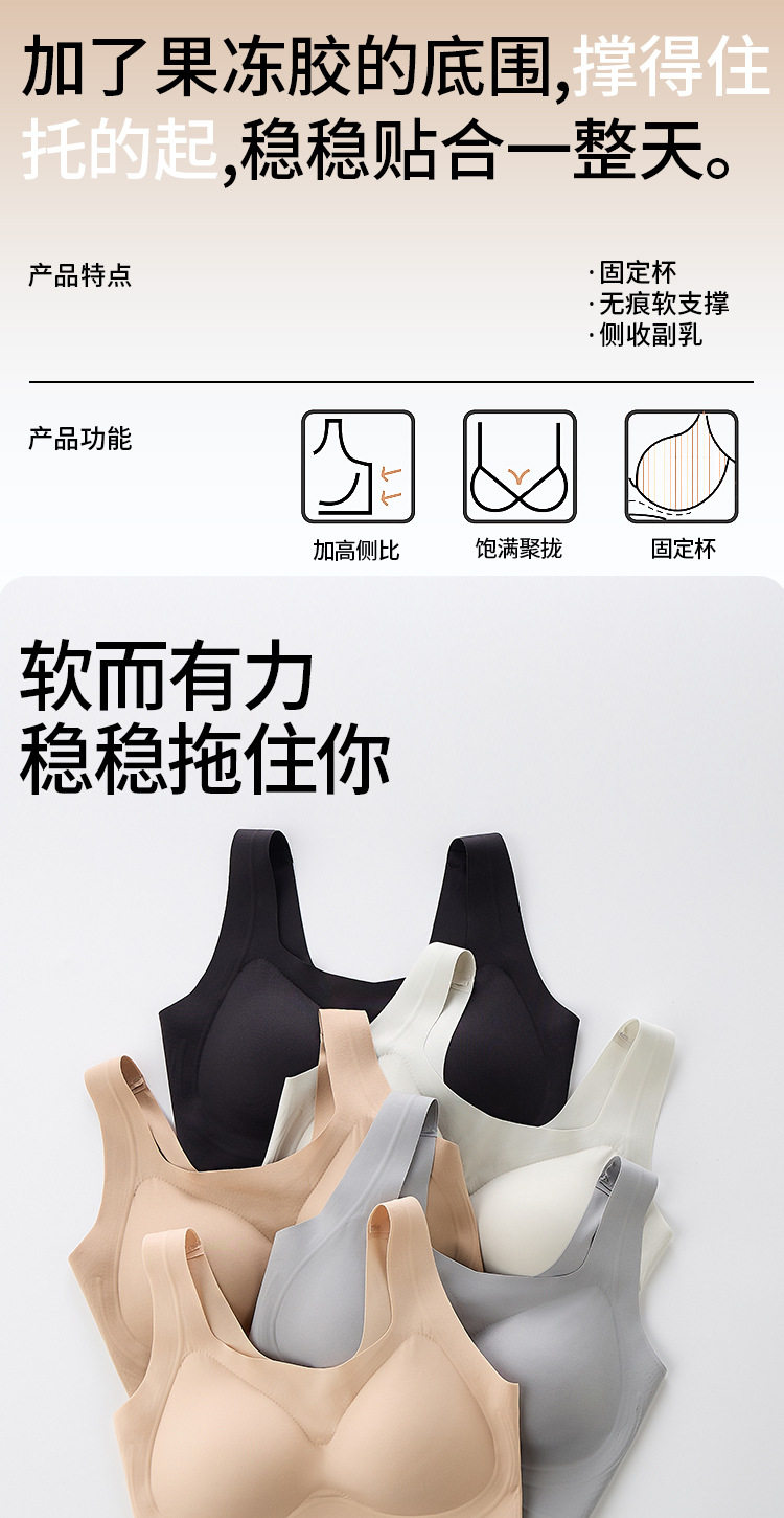 高質量軟支撐提拉舒適聚攏收副乳內衣粉底液隱形全固定杯舒適文胸