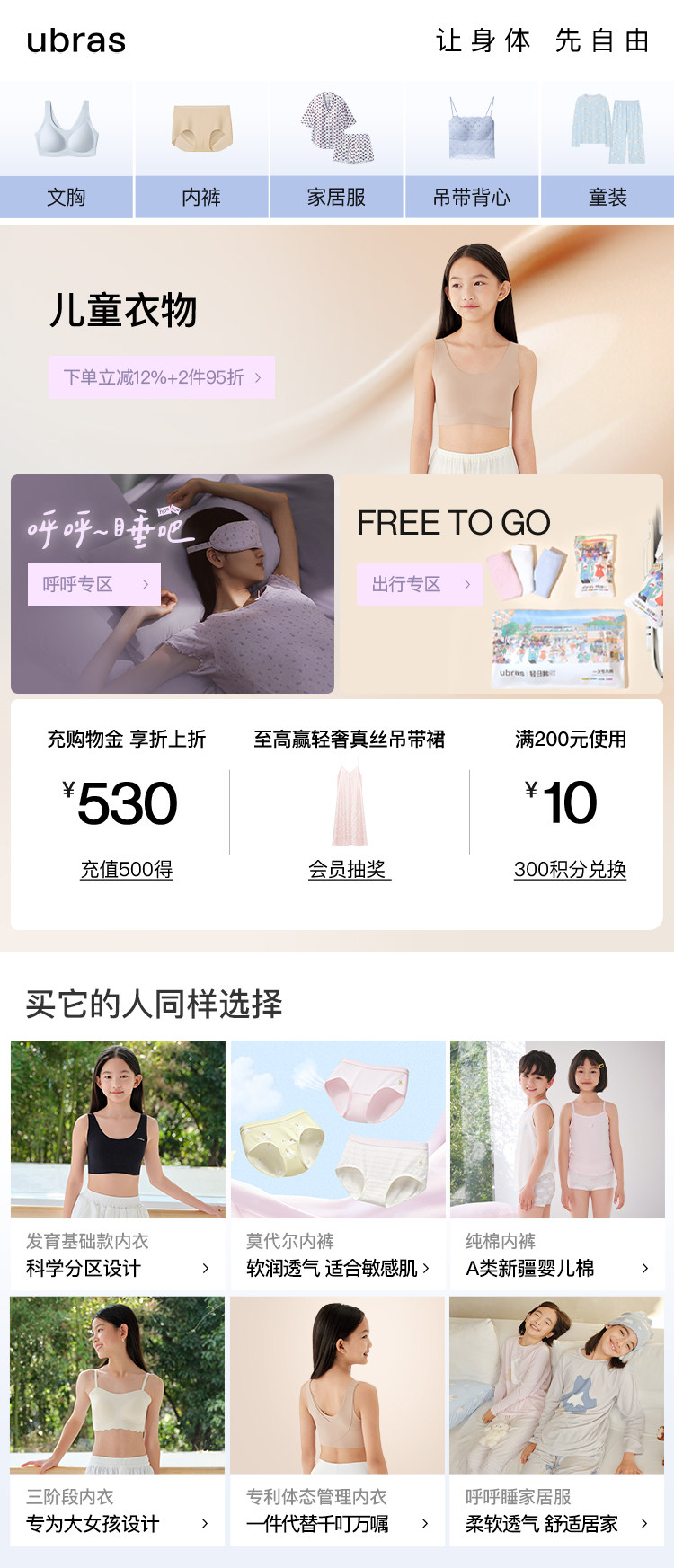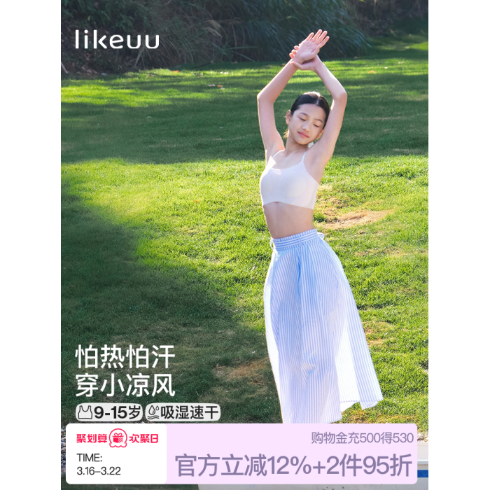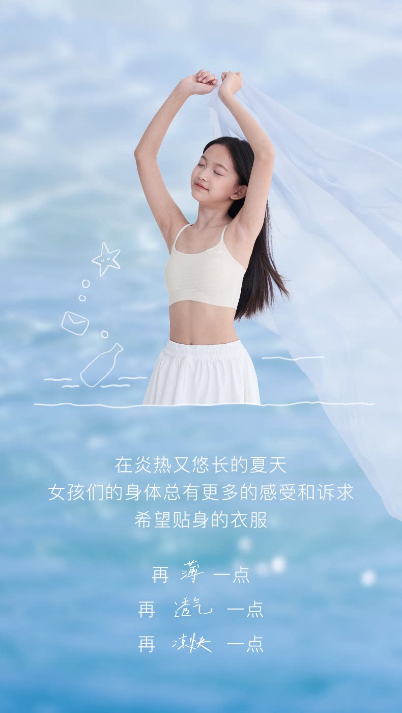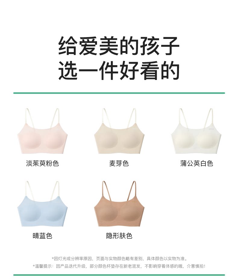 ubras旗下小涼風少女內衣無痕背心初高中學生女童發育文胸細肩帶