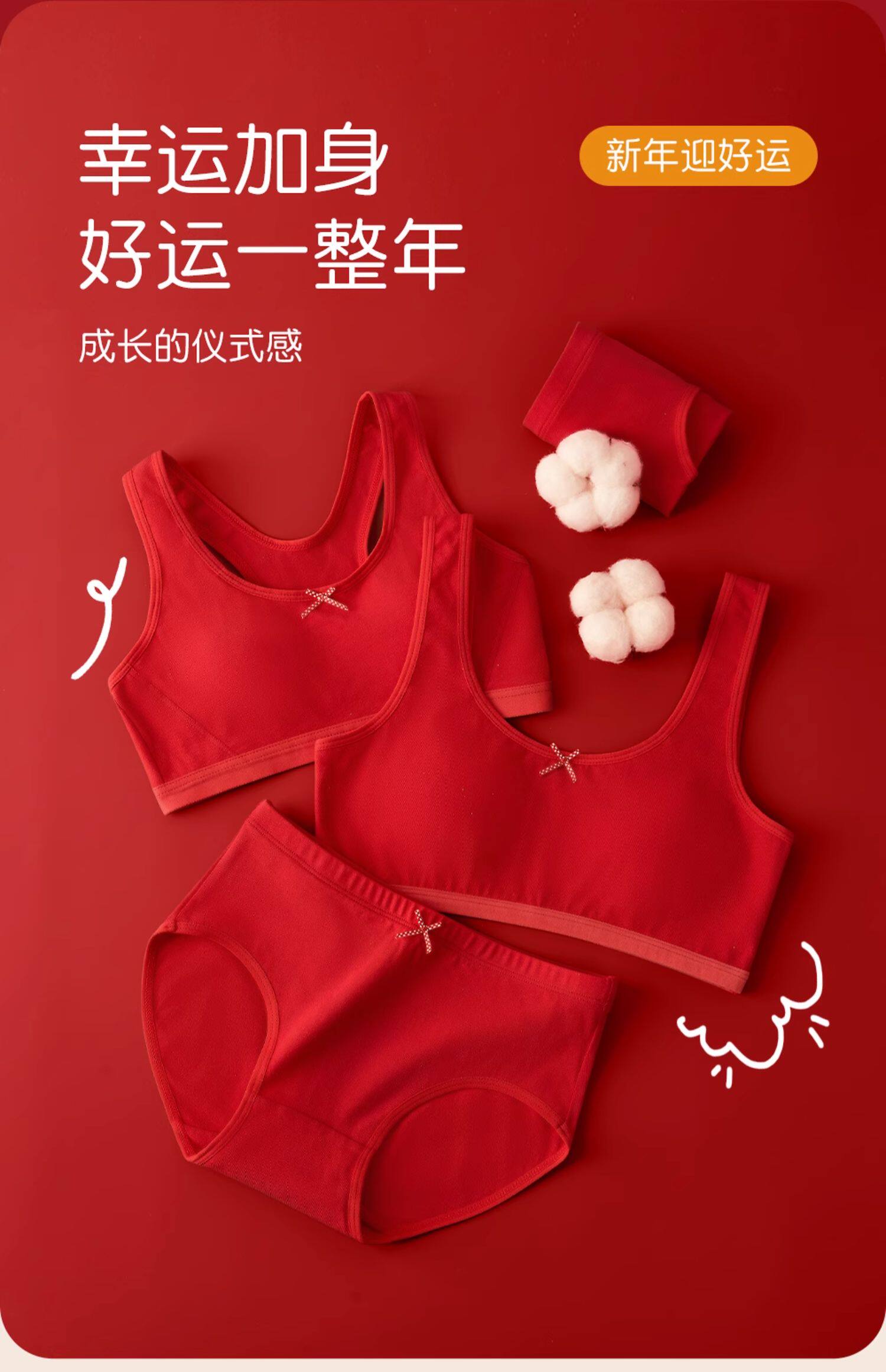 女童本命年內衣套裝2026馬年紅色內衣內褲發育期一二階段少女文胸