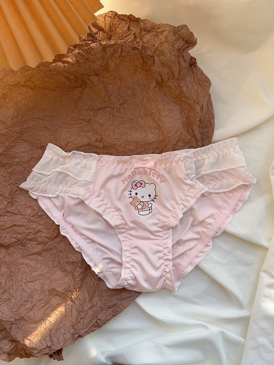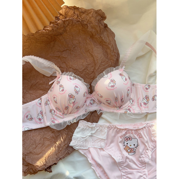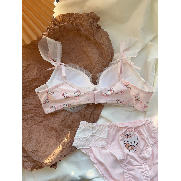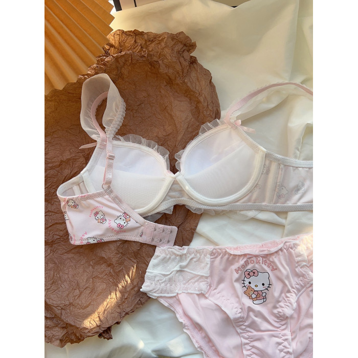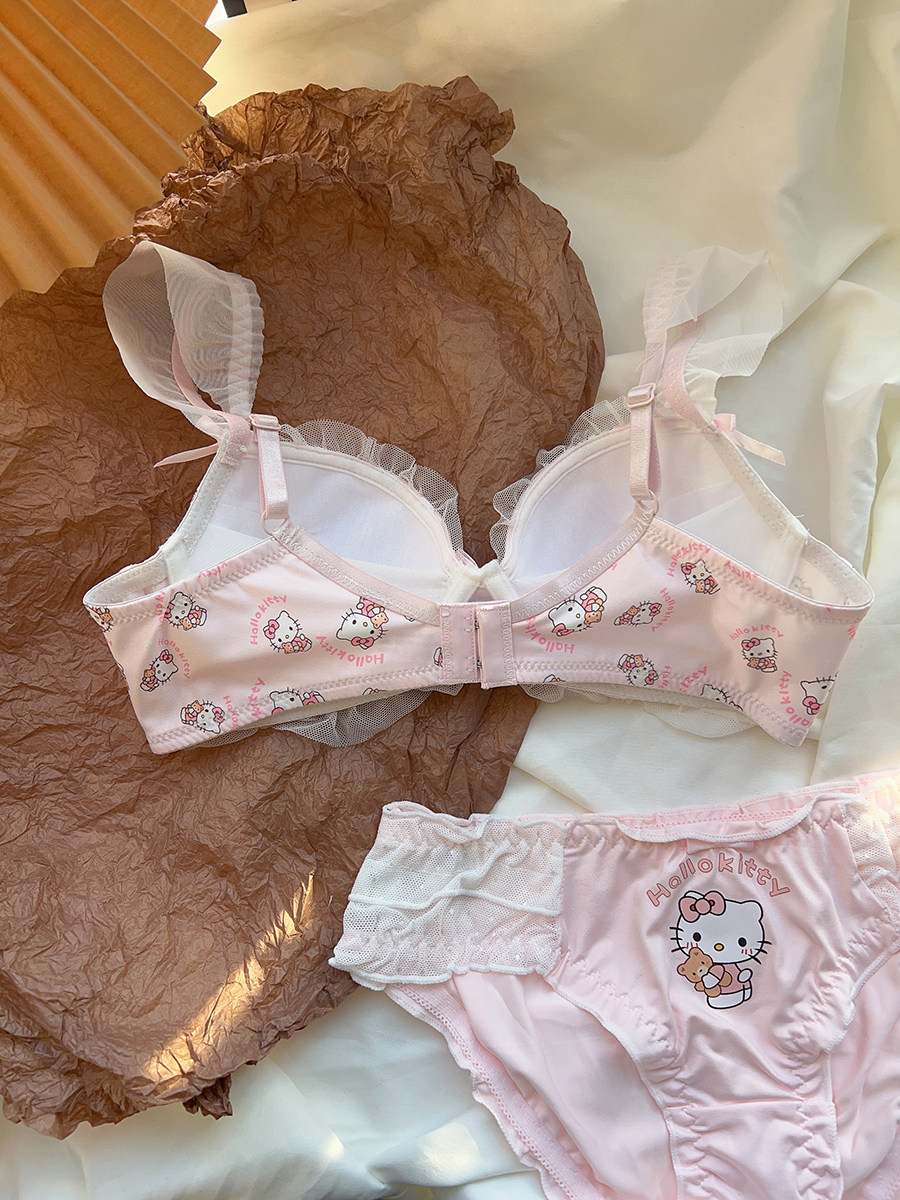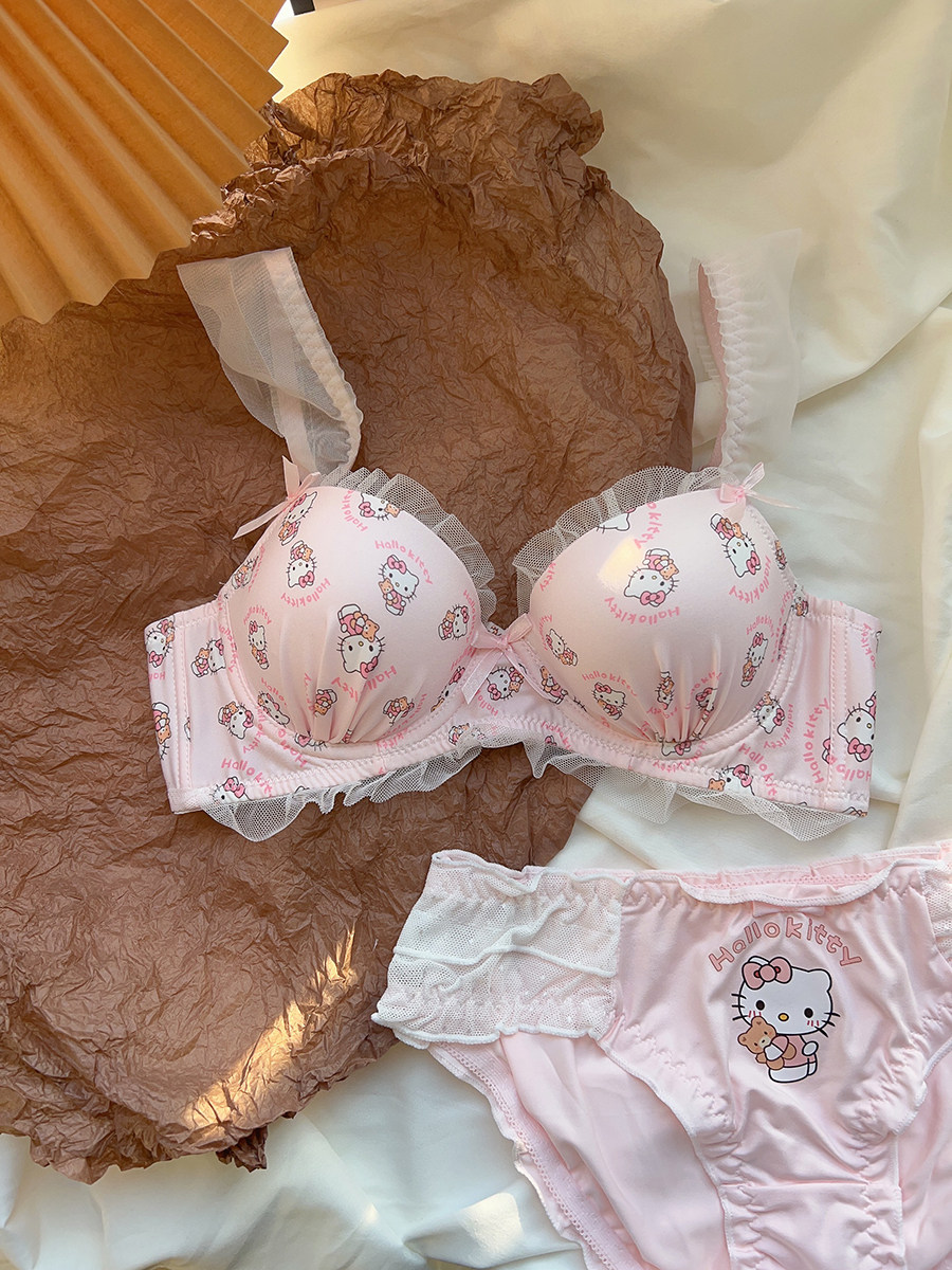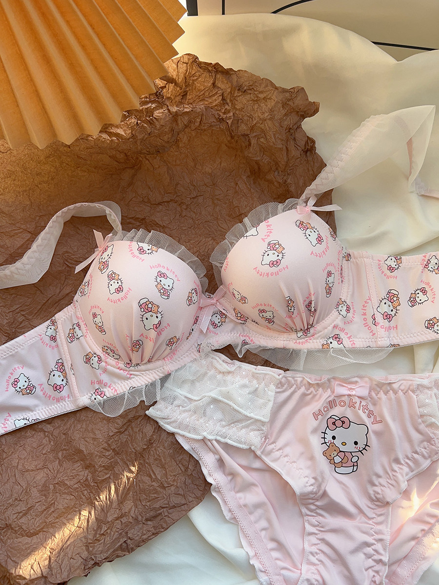粉色喵喵 可愛日系少女內衣無鋼圈蝴蝶結kt貓小胸聚攏文胸罩套裝