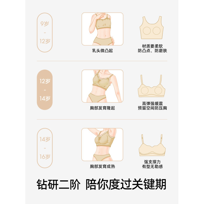 有棵樹少女文胸初中高中生內衣防震發育期青少年12至14嵗女童背心