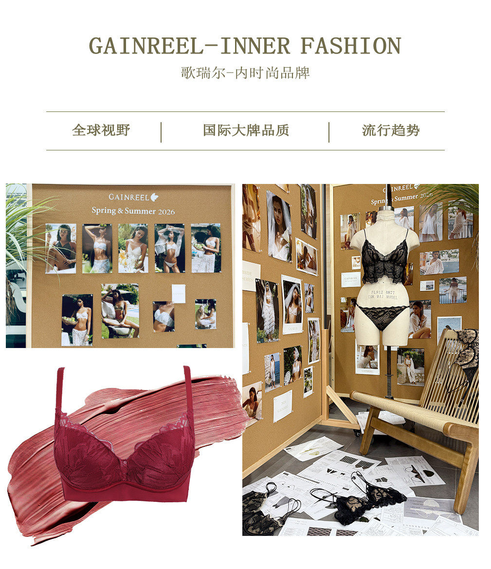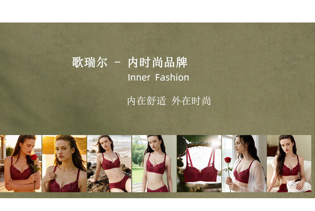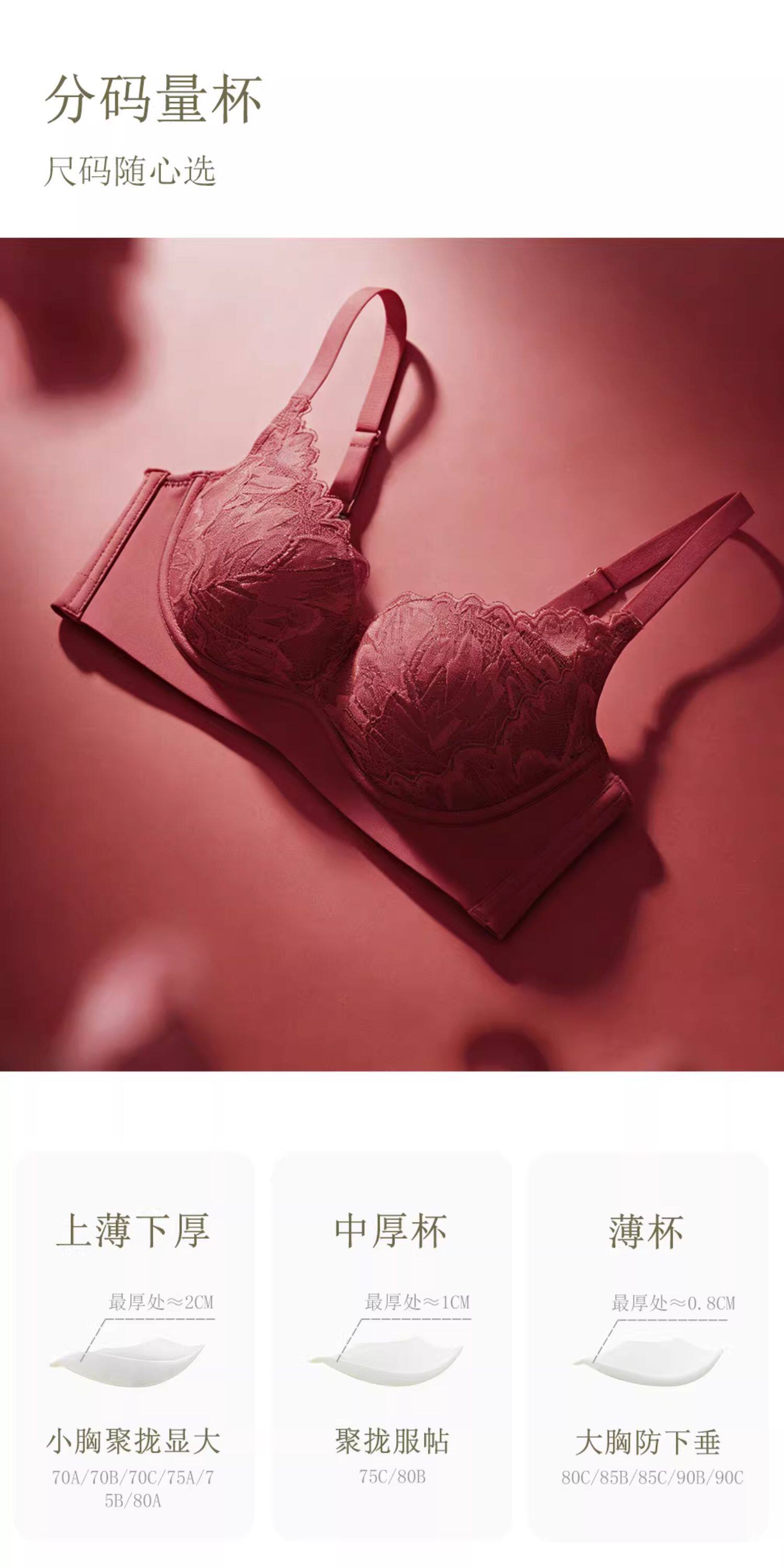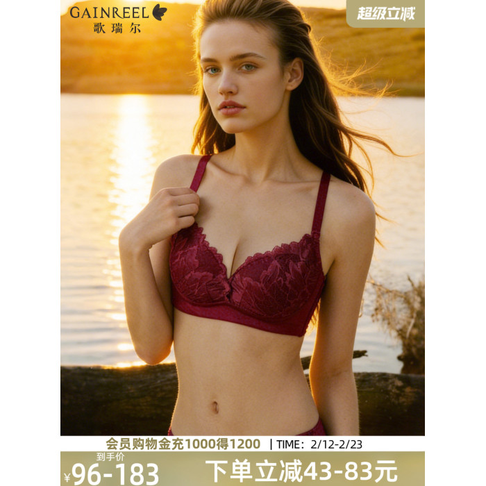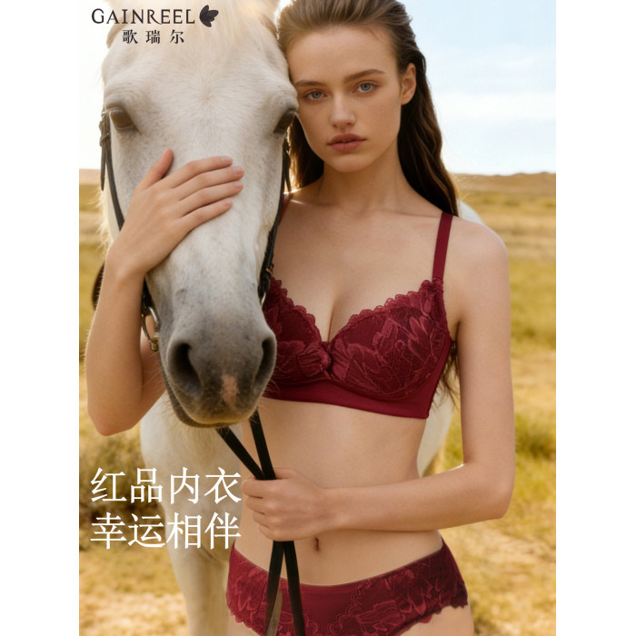 歌瑞爾紅色結婚聚攏無鋼圈蕾絲內衣女防下垂側收副乳調整型文胸罩