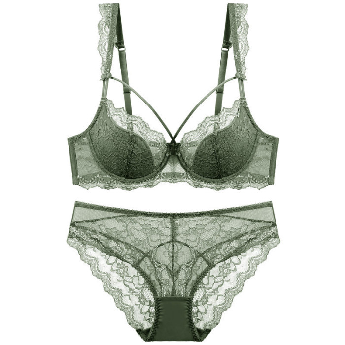歐美性感蕾絲內衣女薄棉大胸顯小舒適透氣聚攏大碼文胸套裝