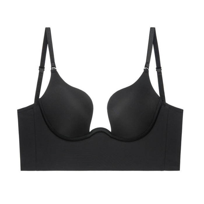性感光面無痕內衣U型大露背美背文胸小胸聚攏防下垂文胸掛脖胸罩