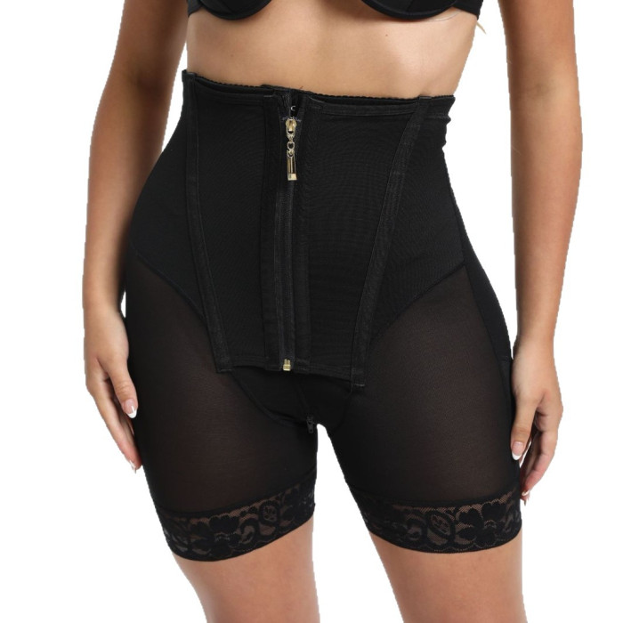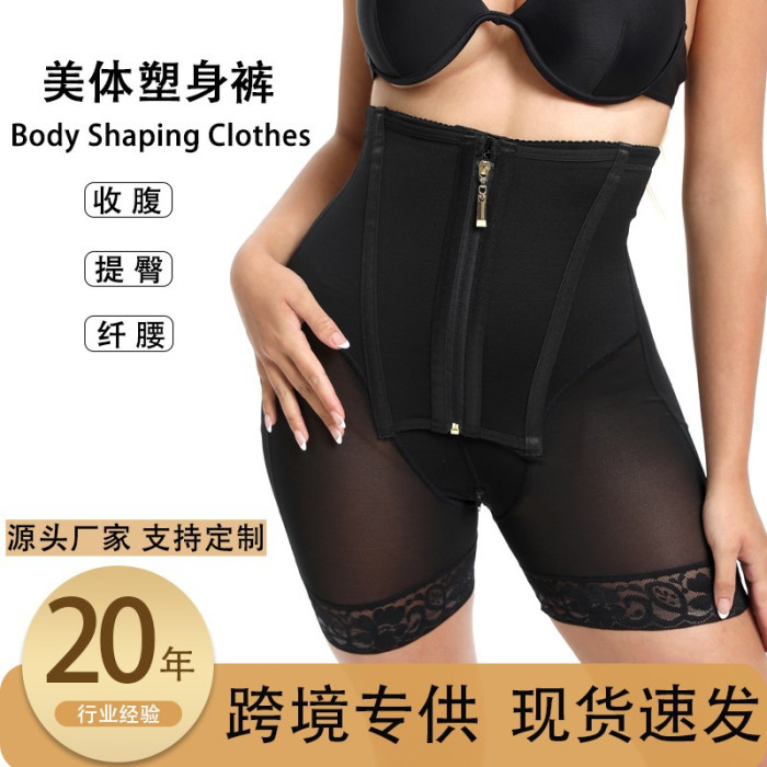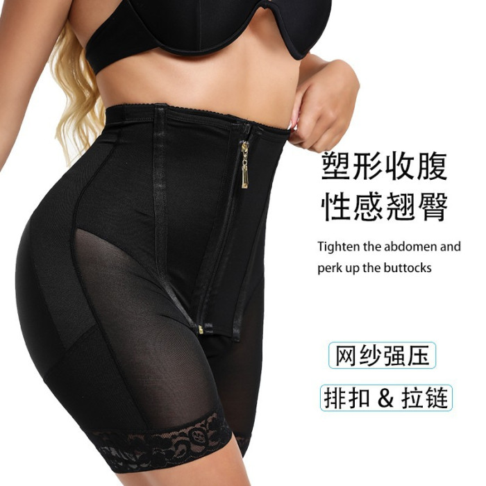 歐美高腰排釦拉鍊大碼收腹褲束腰緊身收腹褲薄款美體提臀褲