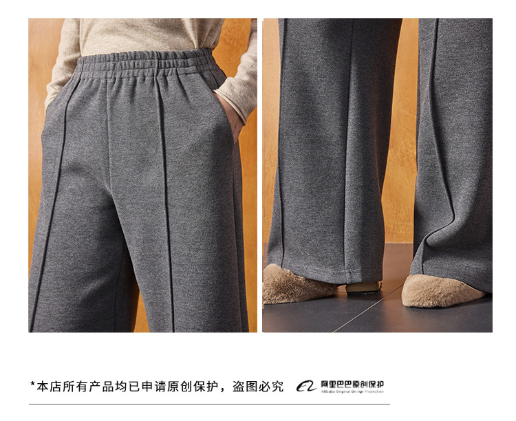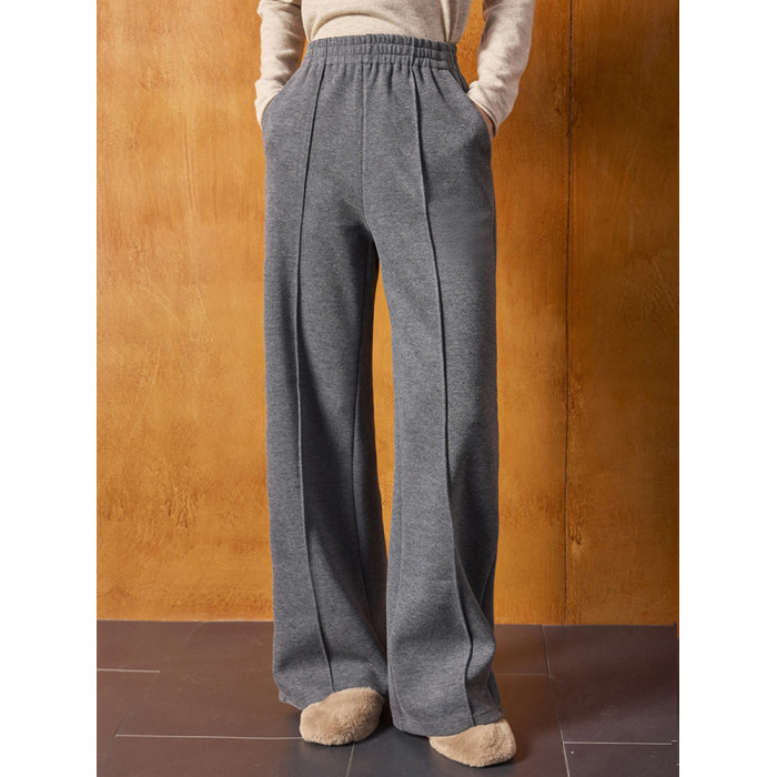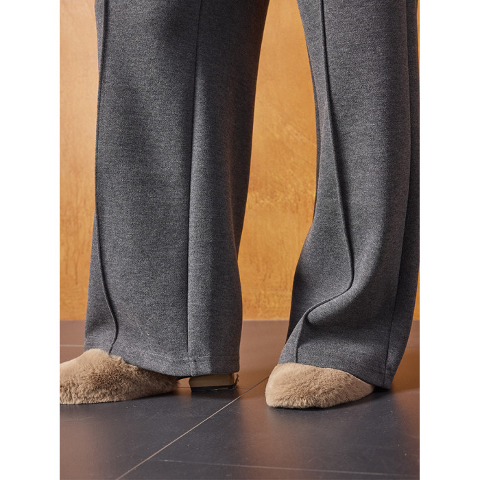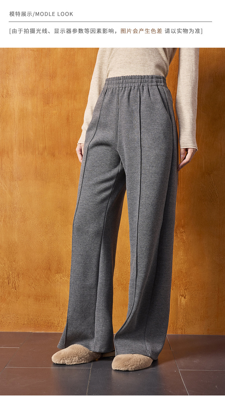 【盛都】25秋冬肌理感【羊毛醋酸】灰色休閒褲加厚直筒濶腿褲