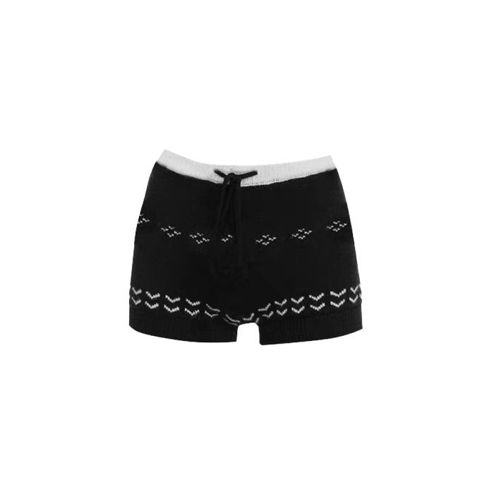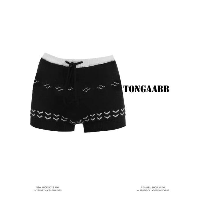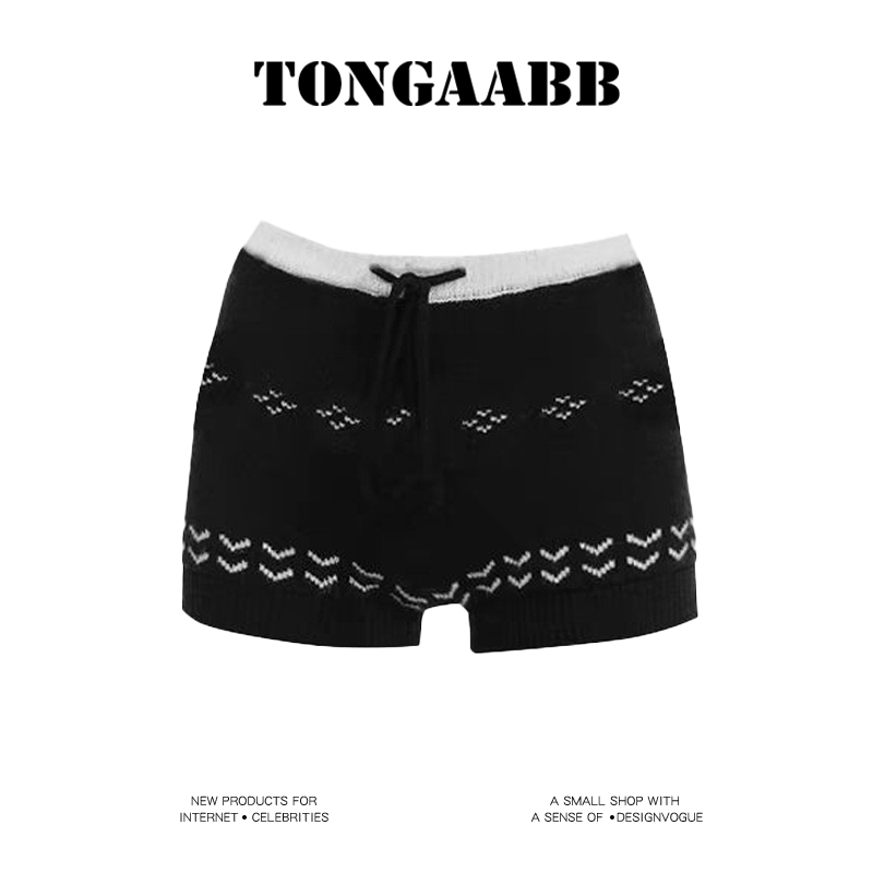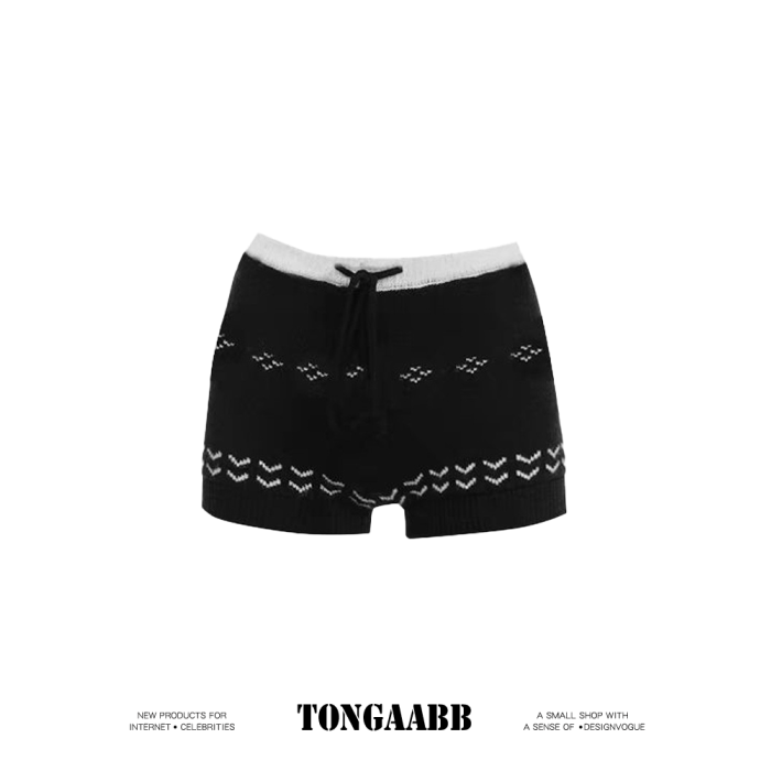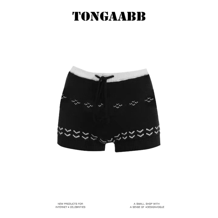 TONGAABB美式辣妹費爾島針織提花短褲女冬百搭修身顯瘦毛線休閒褲