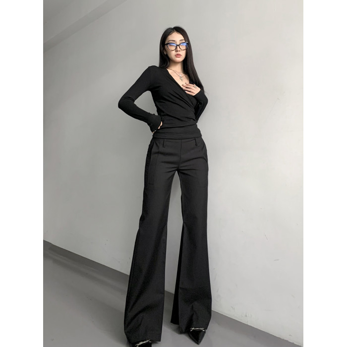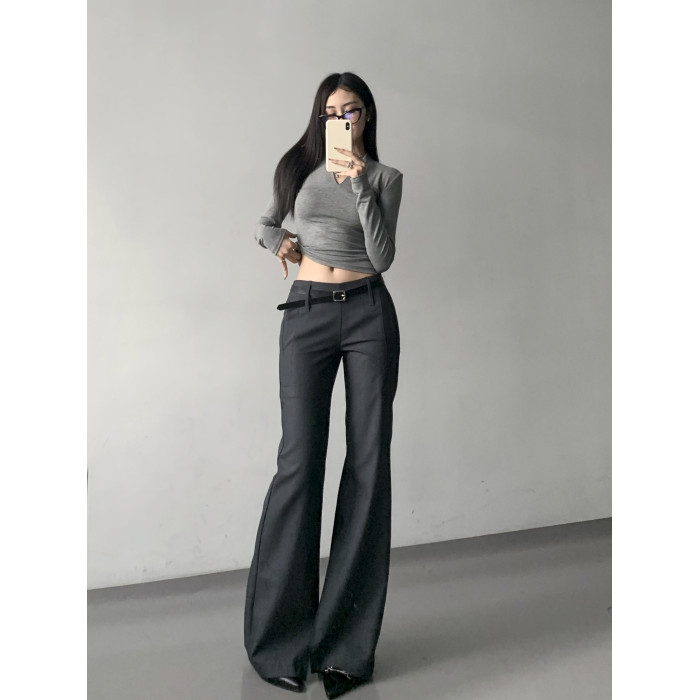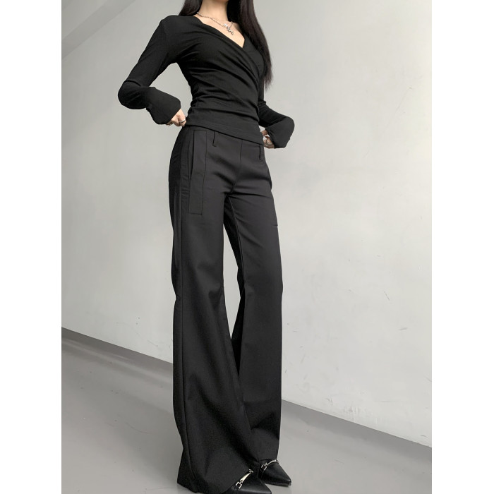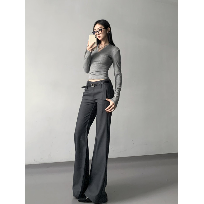 灰色西裝濶腿褲女高街垂感高級感寬松顯瘦直筒褲春秋高個微喇叭褲