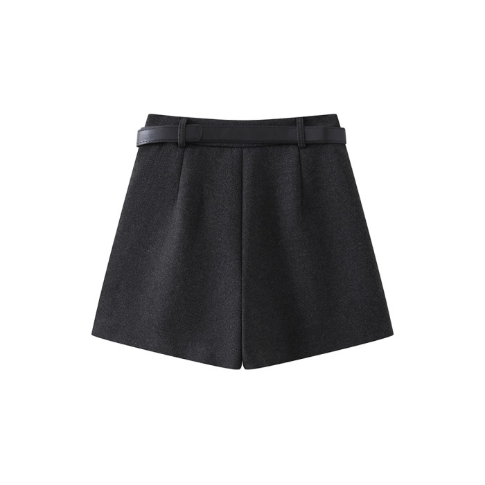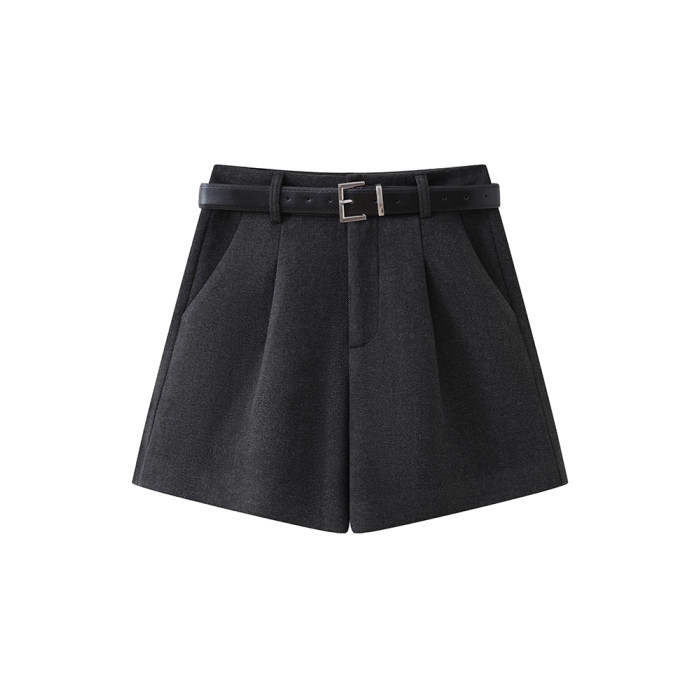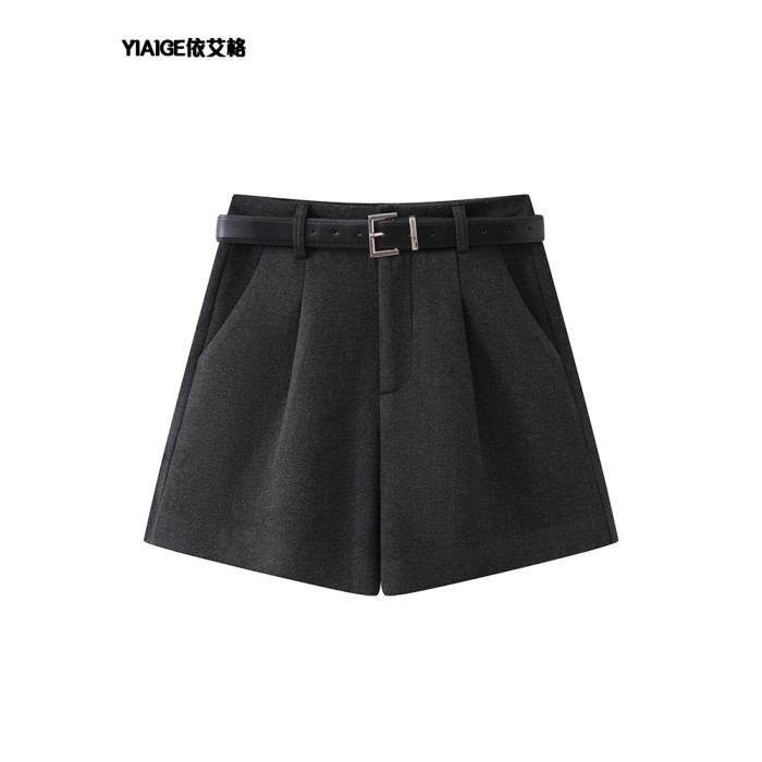 灰色毛呢西裝短褲女秋冬2025新款小個子顯瘦寬松高腰a字濶腿褲子