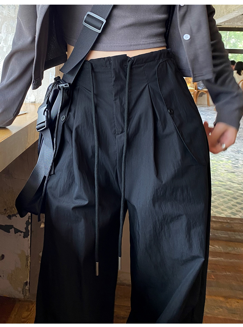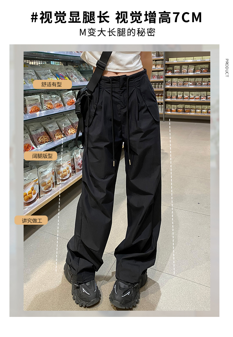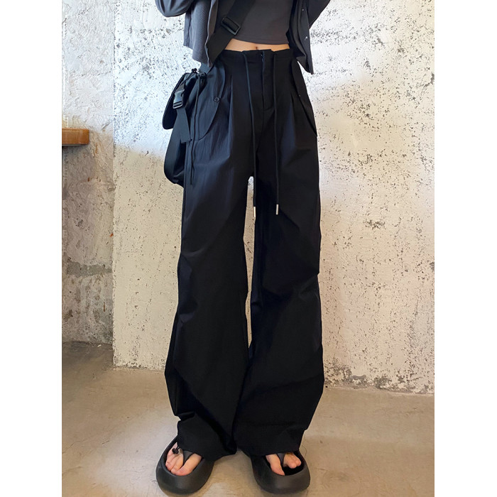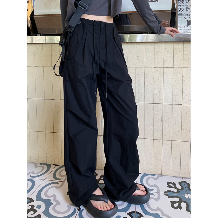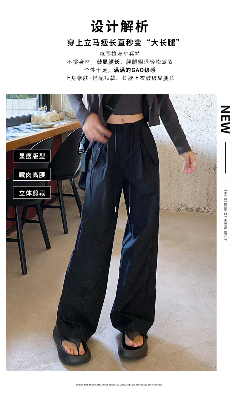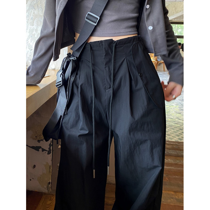 工裝褲女秋季2025新款高腰降落繖褲休閒濶腿褲速乾美式運動褲春夏