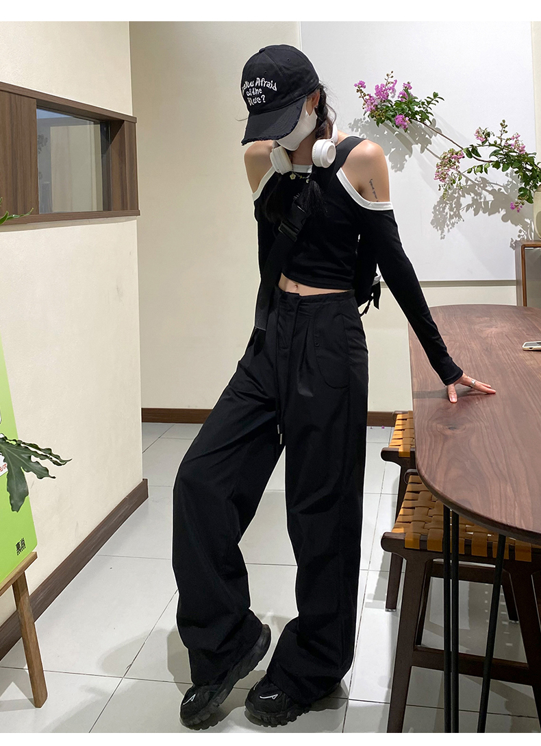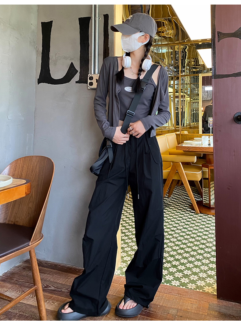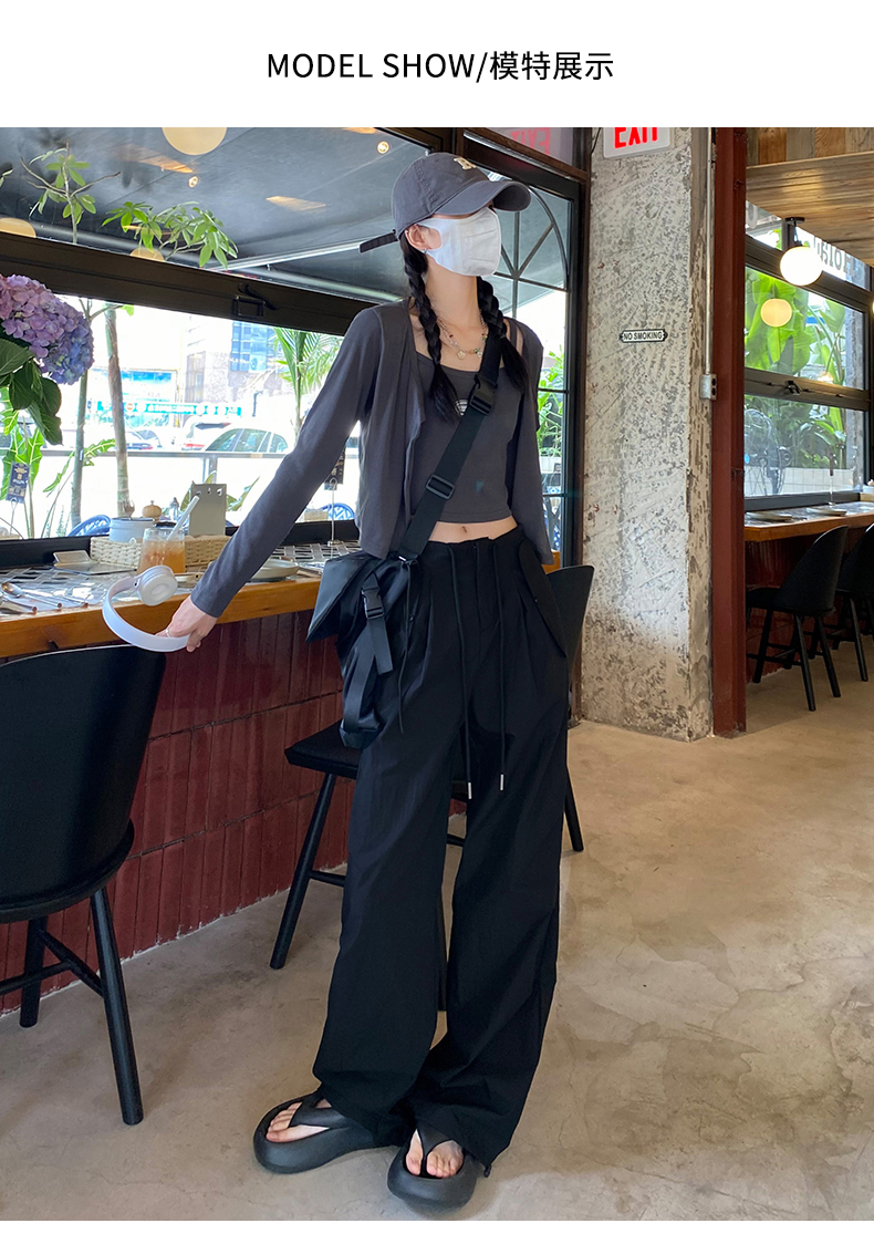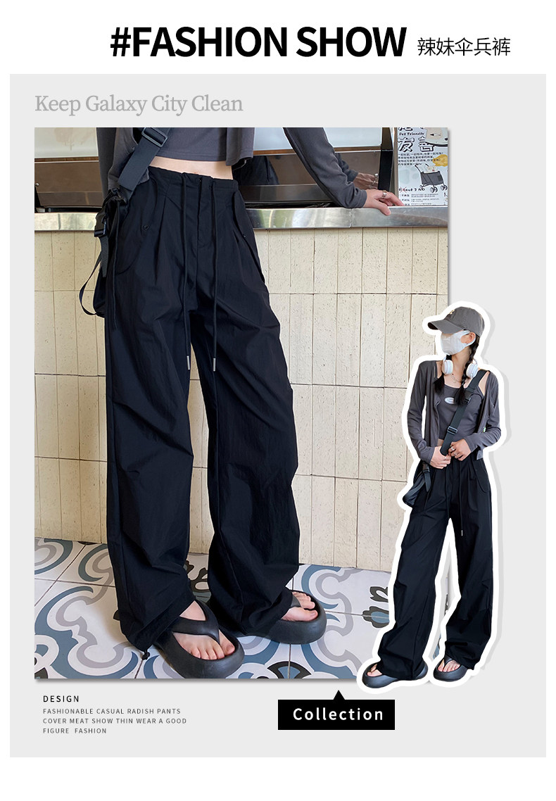 工裝褲女秋季2025新款高腰降落繖褲休閒濶腿褲速乾美式運動褲春夏