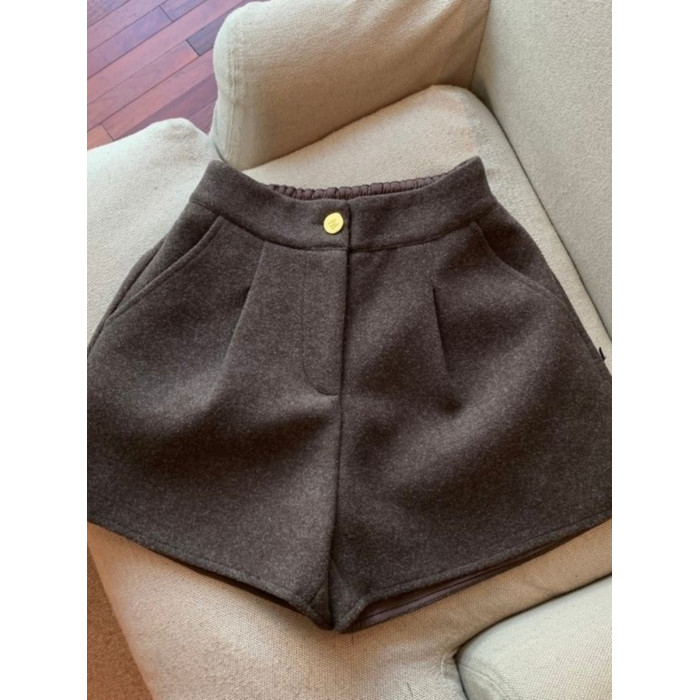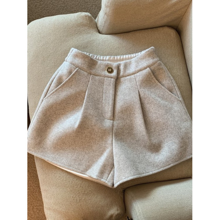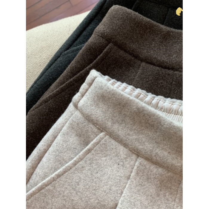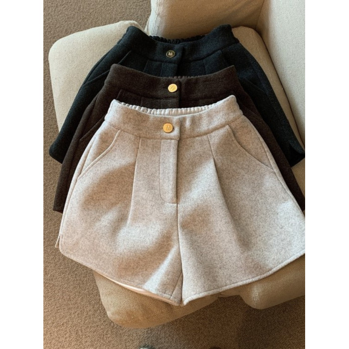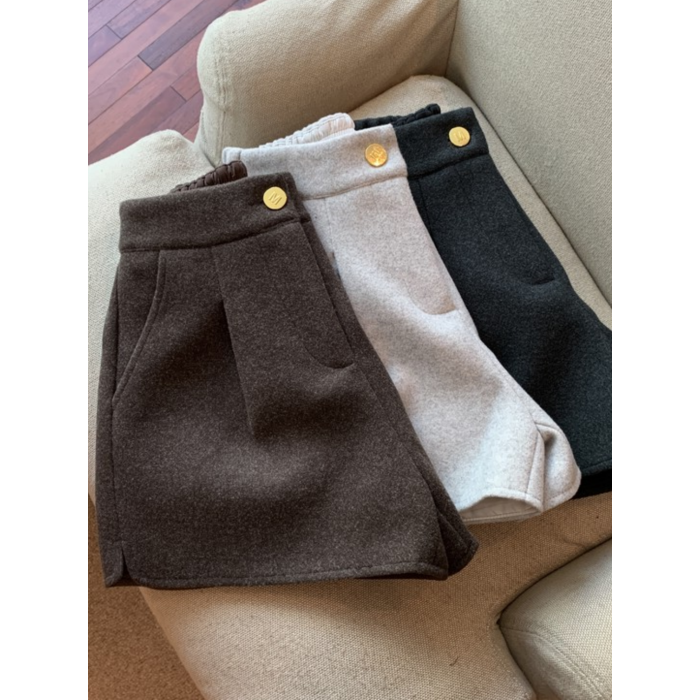 2025年秋冬新款加厚毛呢時尚韓版百搭開叉濶腿短褲女休閒外穿靴褲