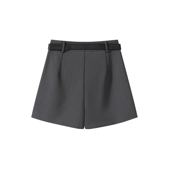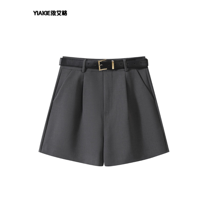 灰色西裝短褲女小個子2025年新款春夏季顯瘦高腰a字休閒濶腿褲子