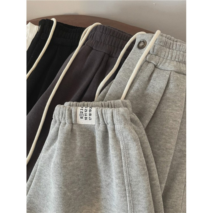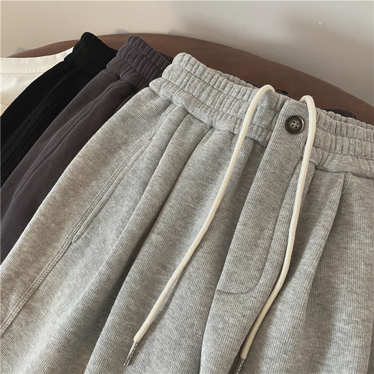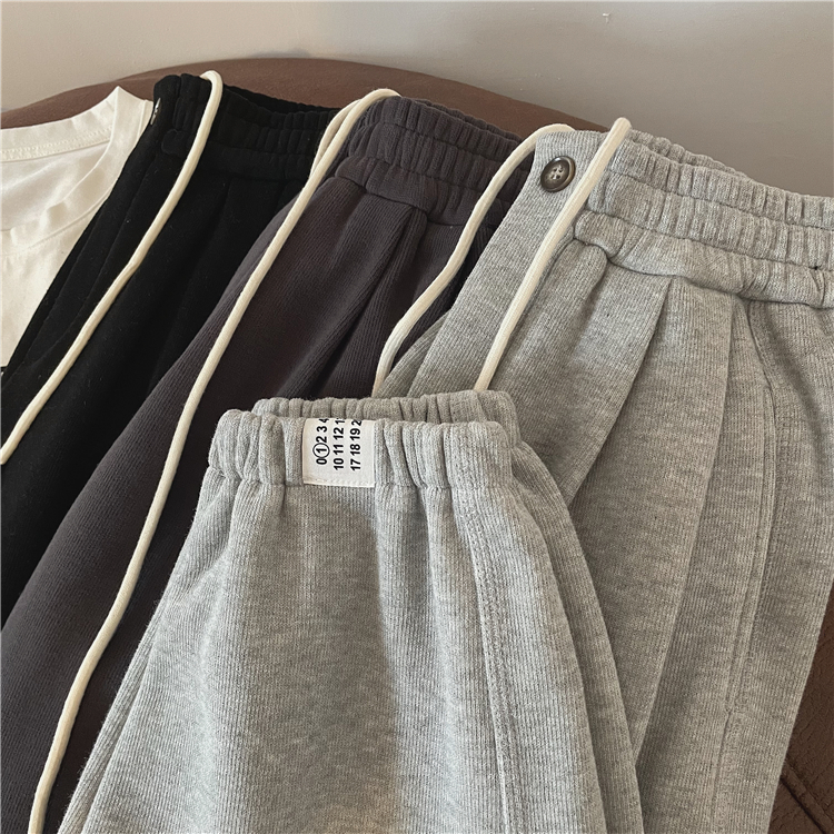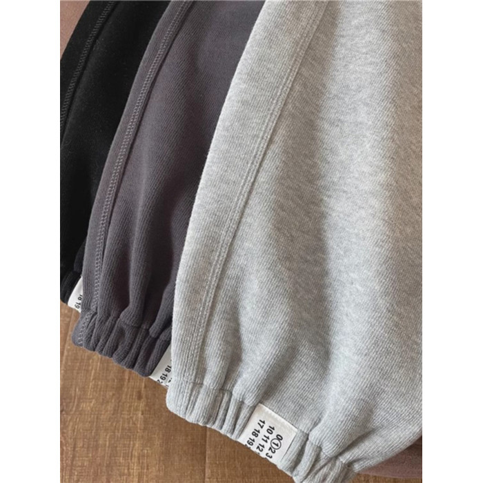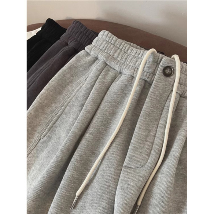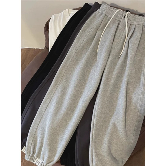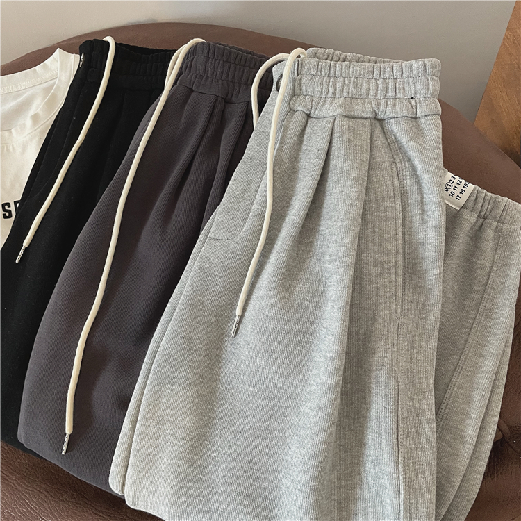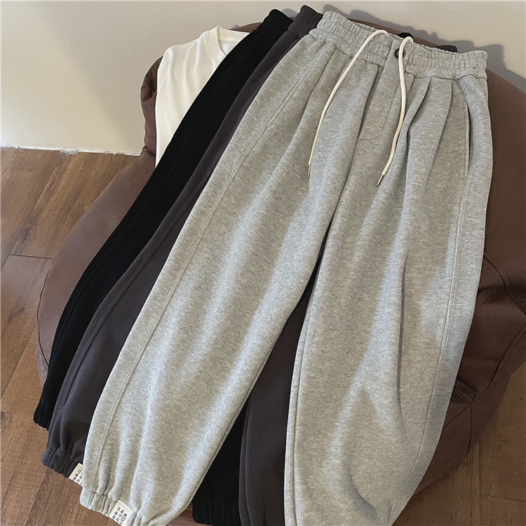 胖妹妹加絨加厚松緊腰休閒運動褲女秋冬季新款大碼寬松束腳衛褲