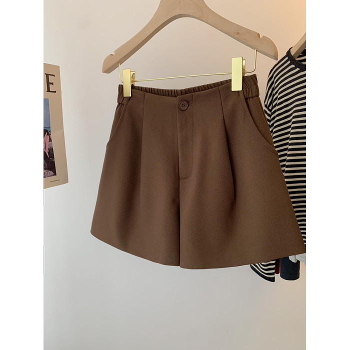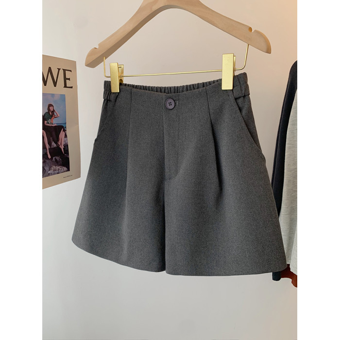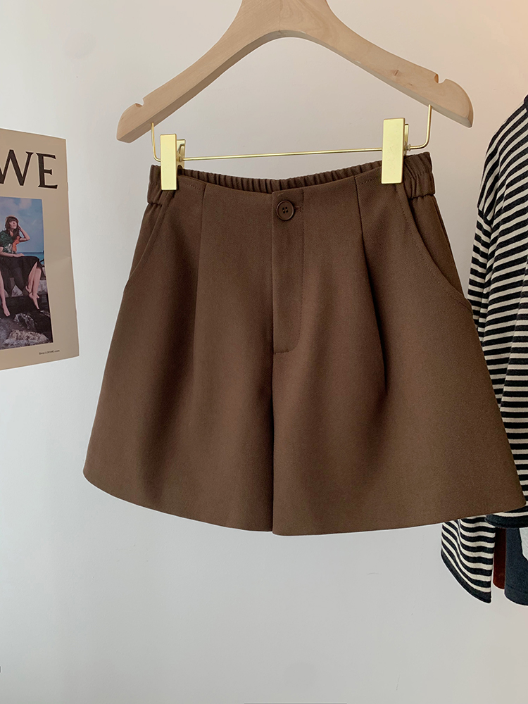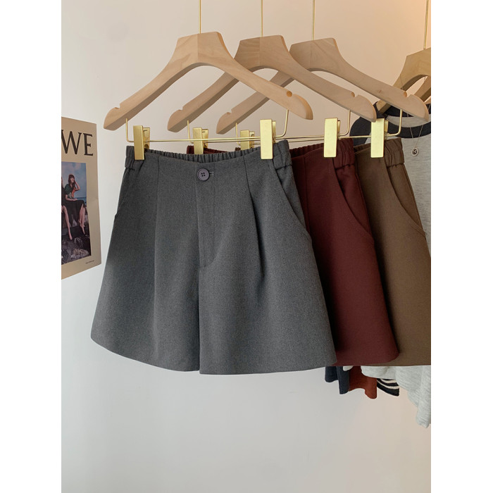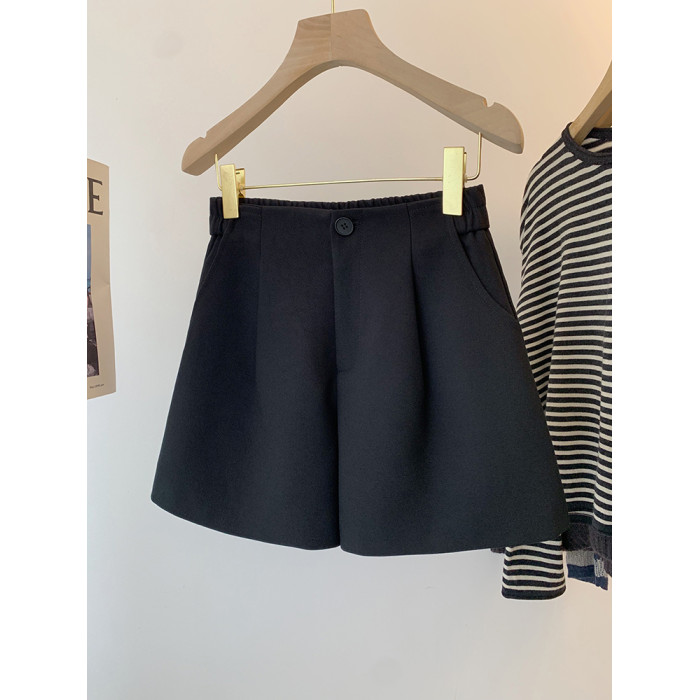 松緊高腰休閒濶腿毛呢短褲女2025秋冬新款外穿百搭小個子打底a字