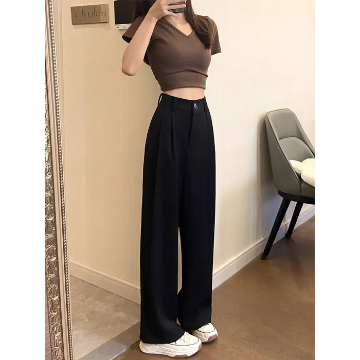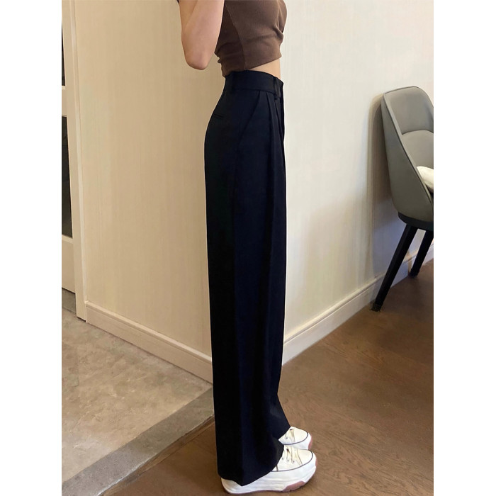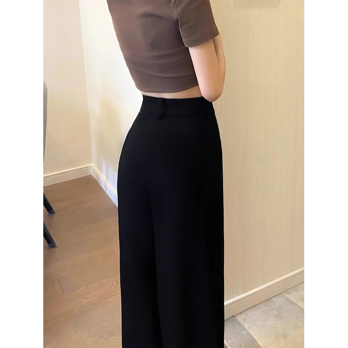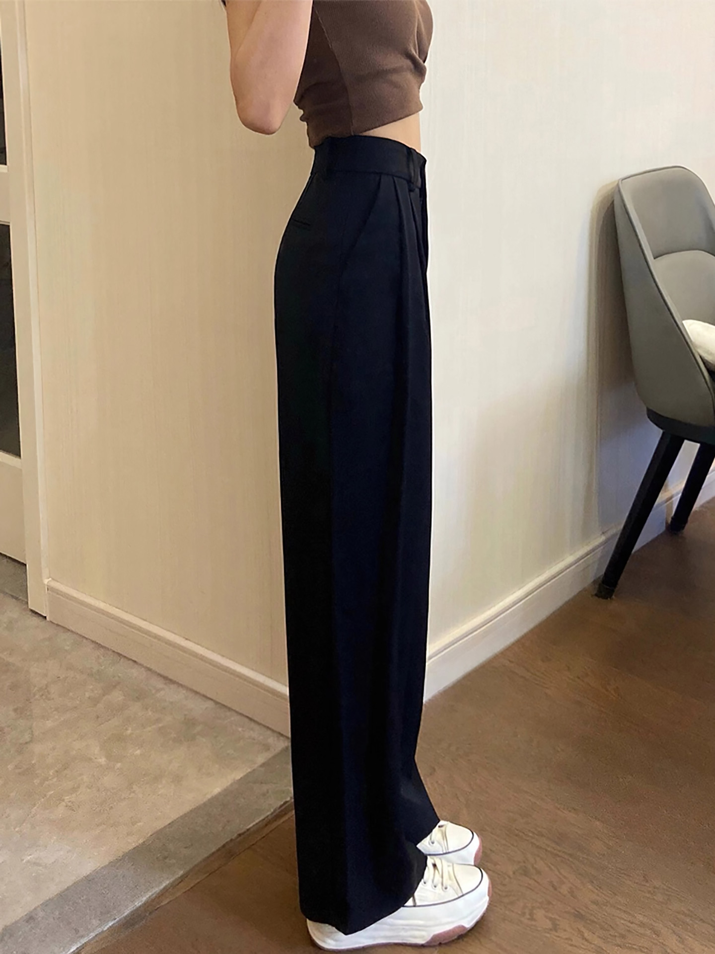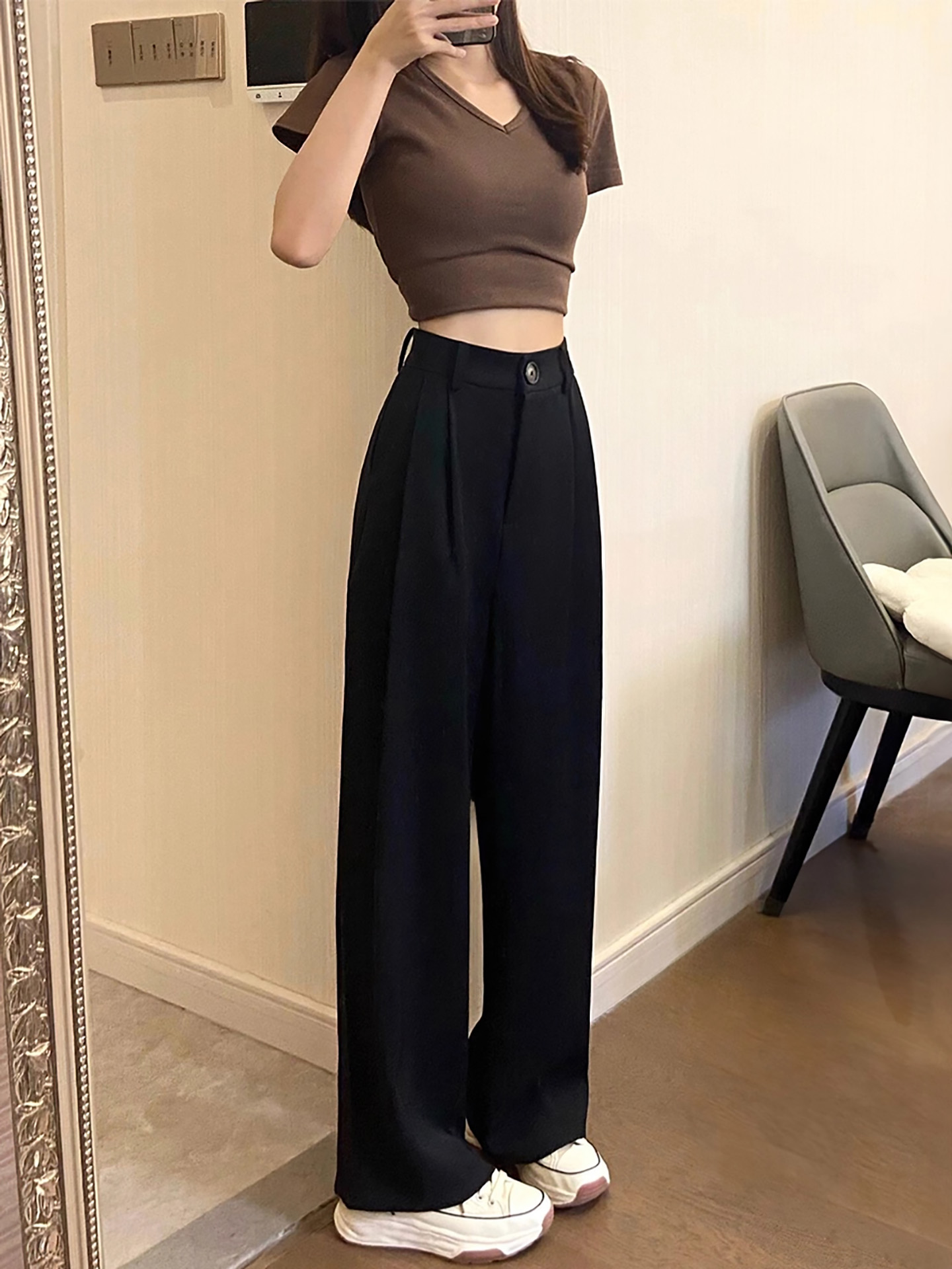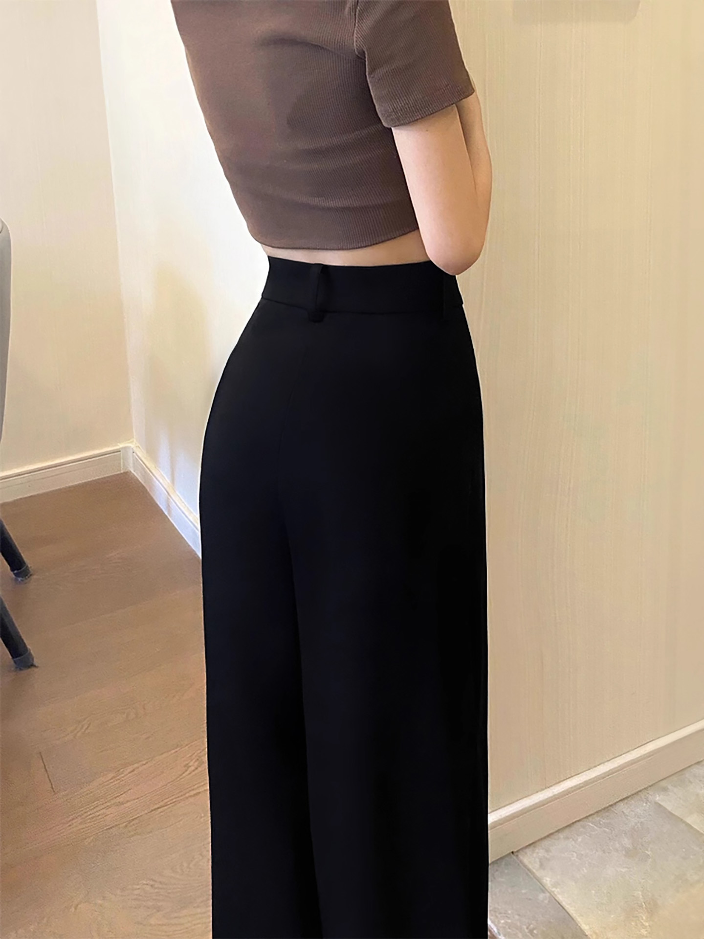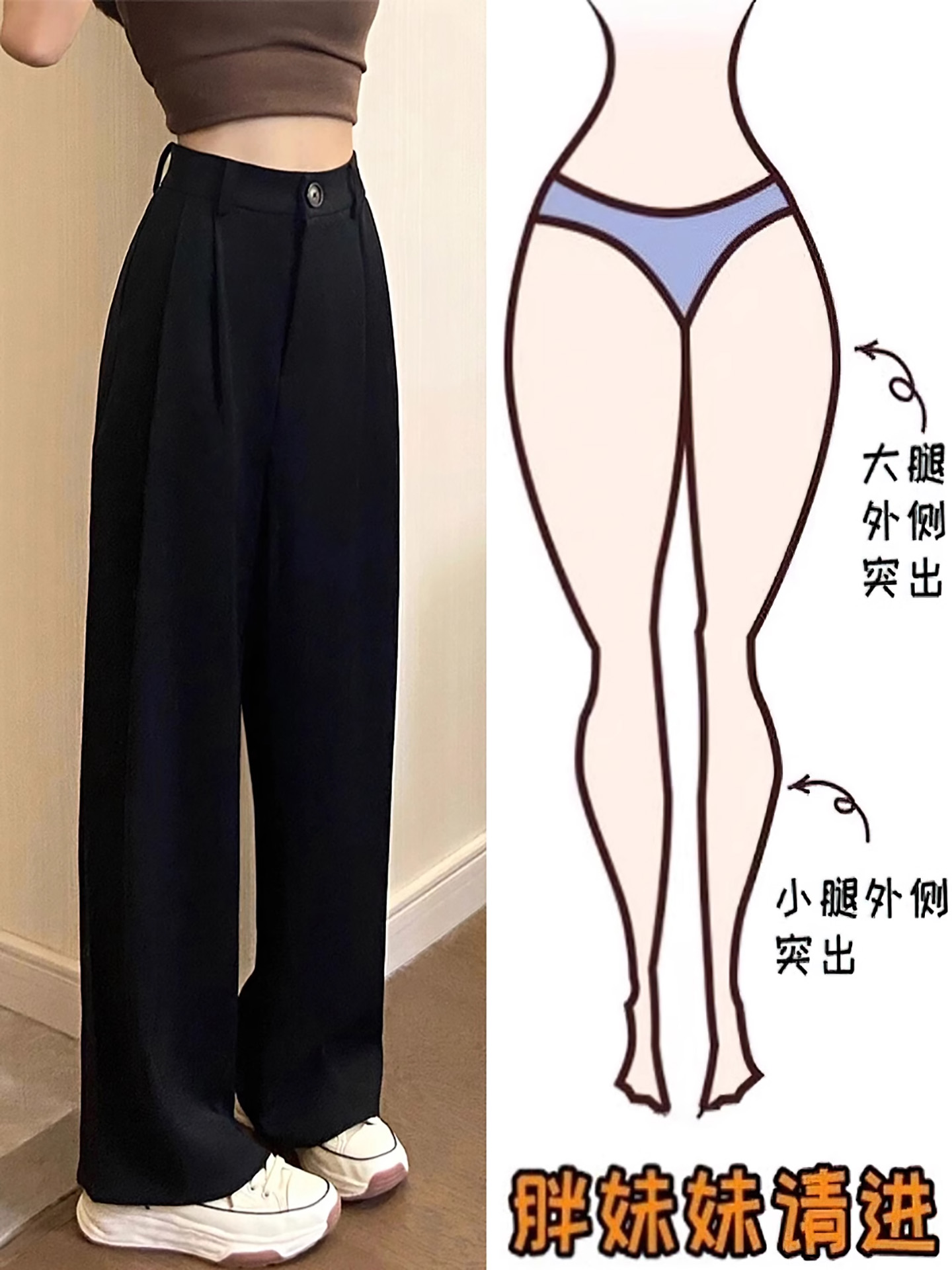 梨形身材黑色濶腿西裝褲女秋新款大碼胖mm高腰顯瘦寬松垂感休閒褲