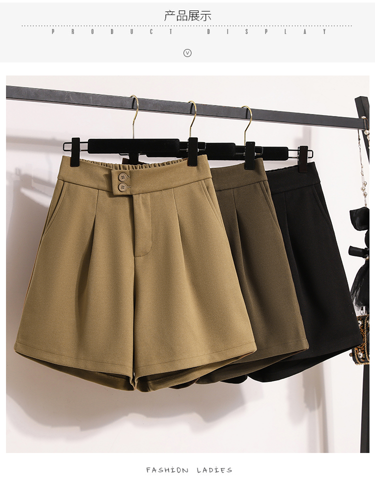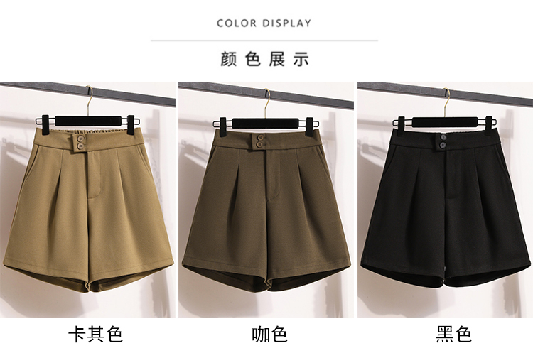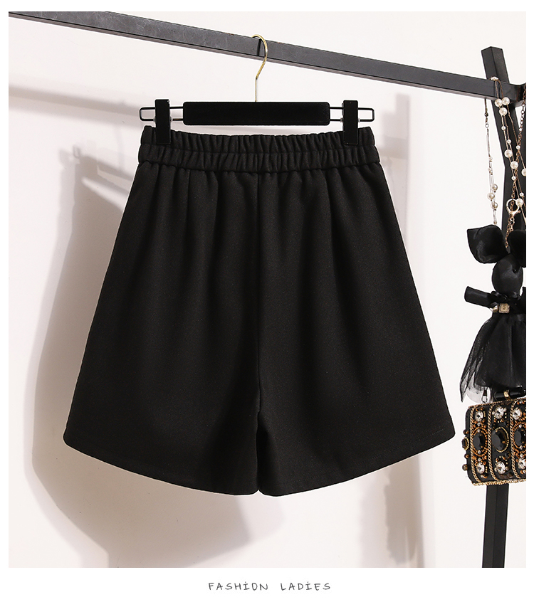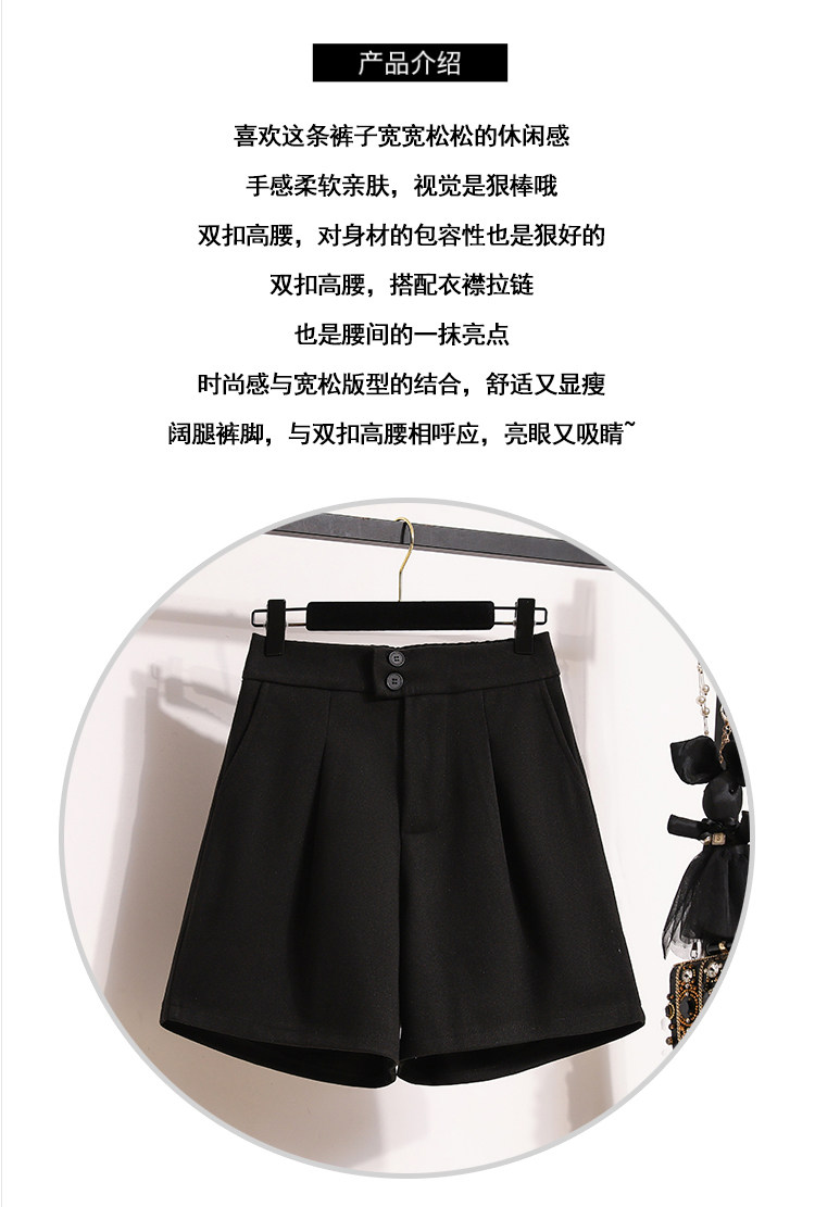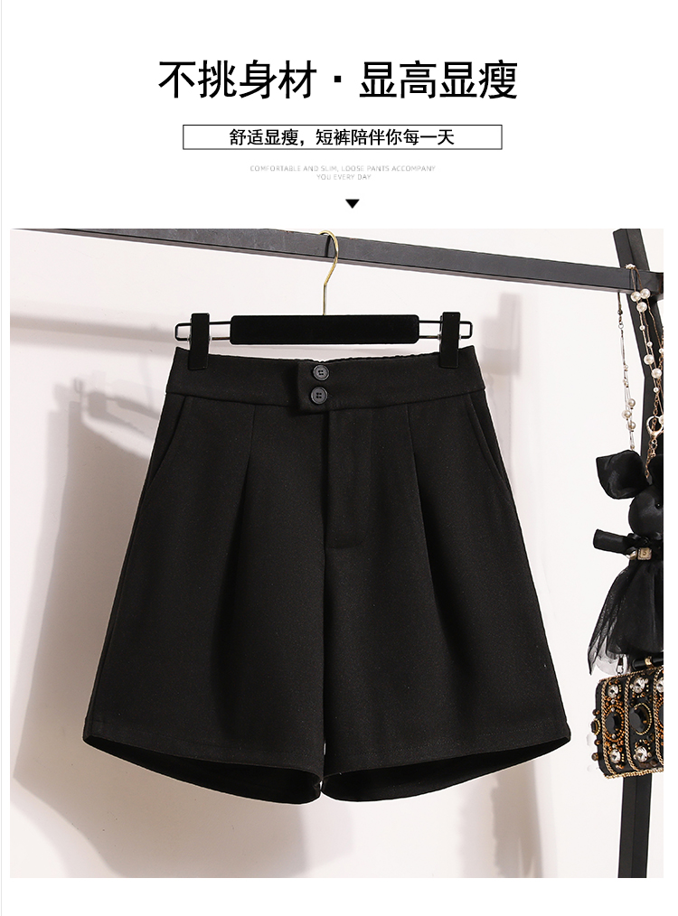 大碼秋季寬松外穿濶腿毛呢短褲女胖mm顯瘦高腰a字遮肉氣質休閒褲