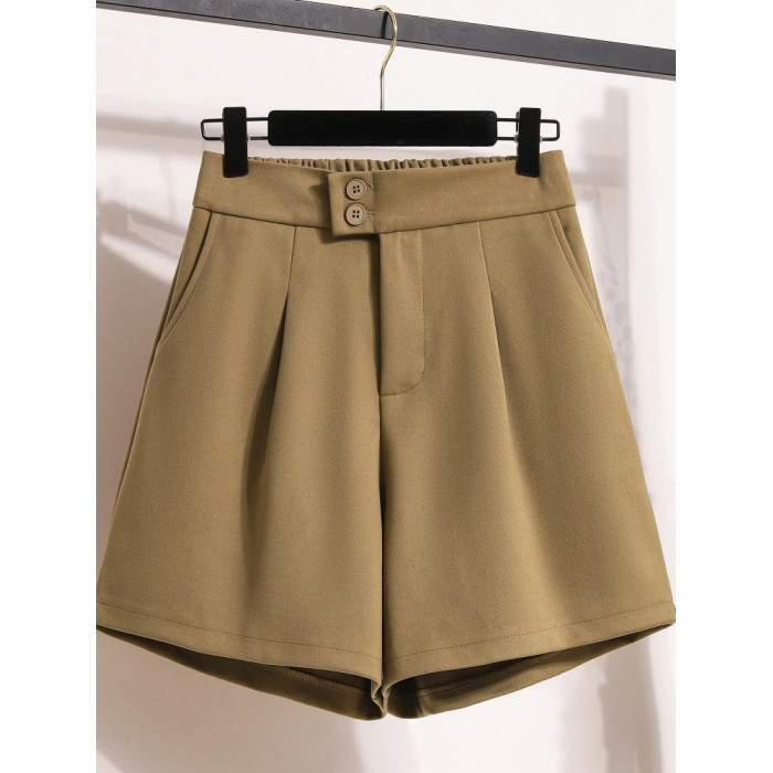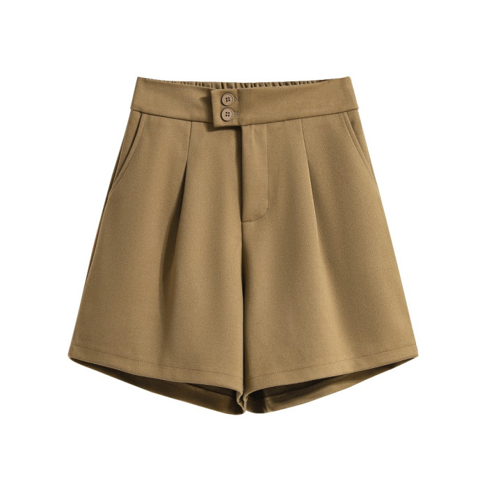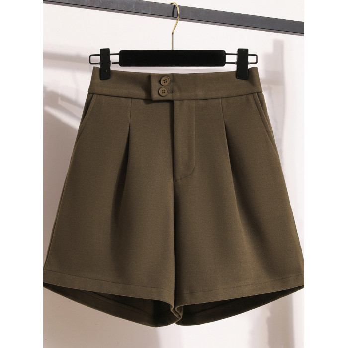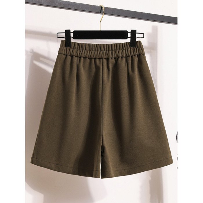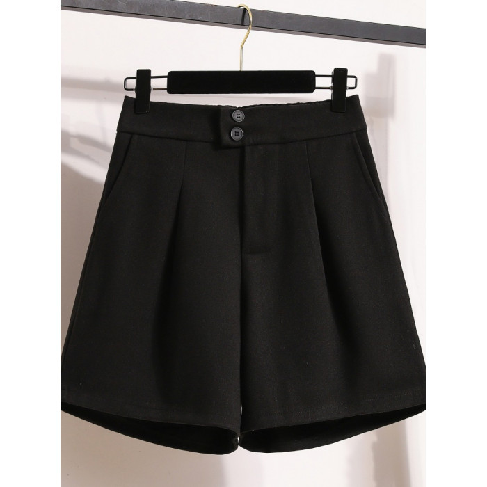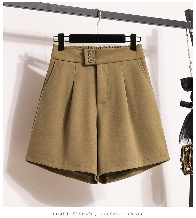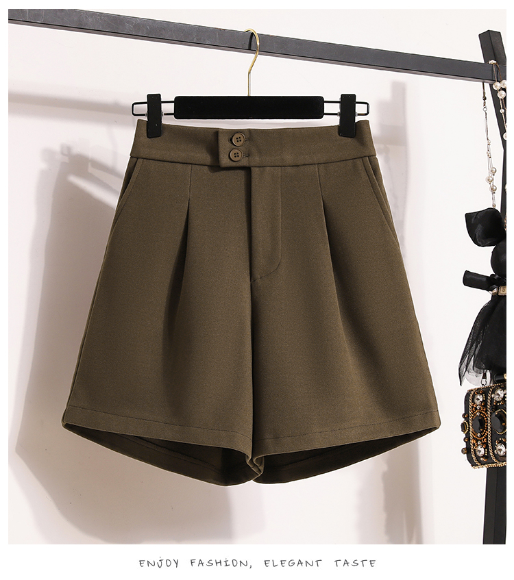 大碼秋季寬松外穿濶腿毛呢短褲女胖mm顯瘦高腰a字遮肉氣質休閒褲