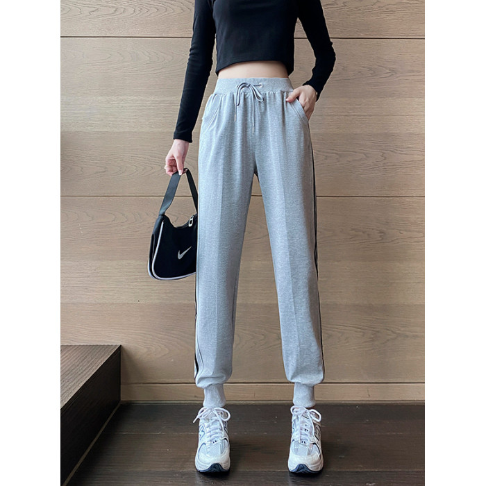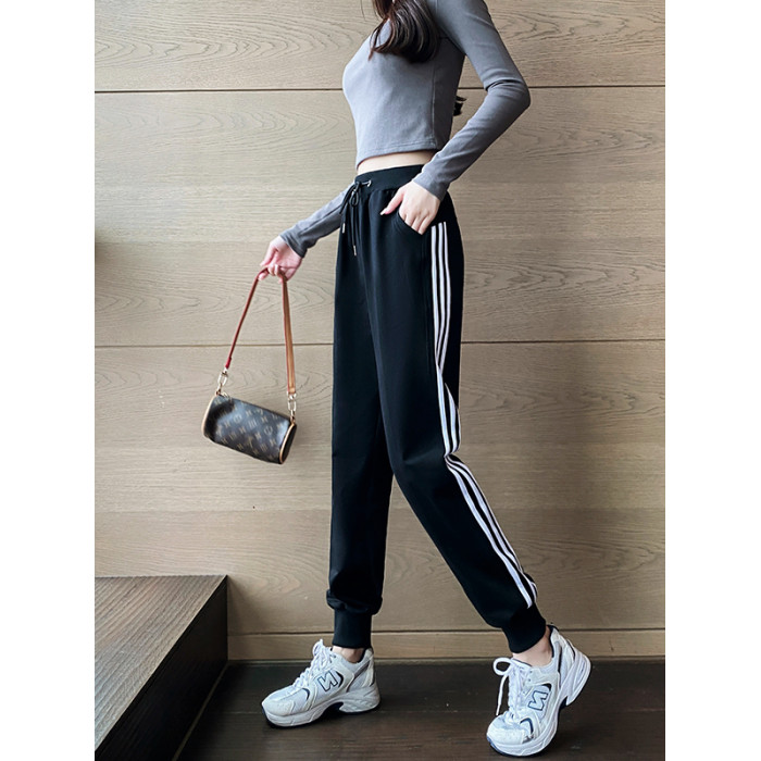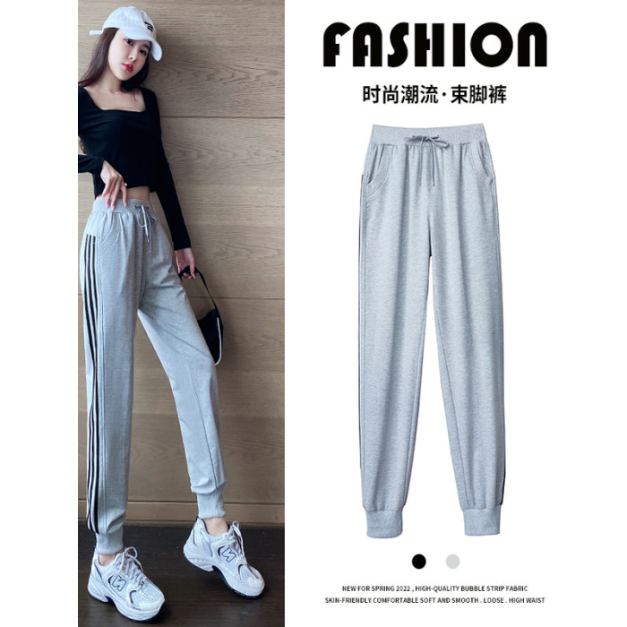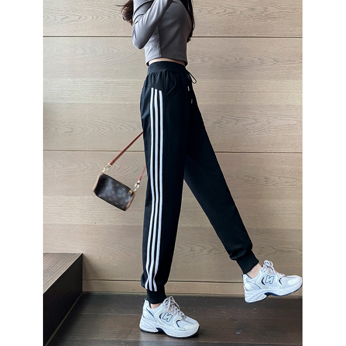 運動褲2025秋季新款女純棉三條杠簡約休閒寬松高腰顯瘦百搭束腳褲