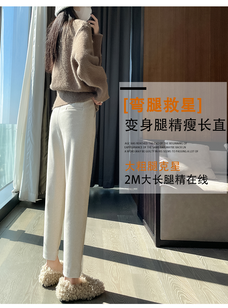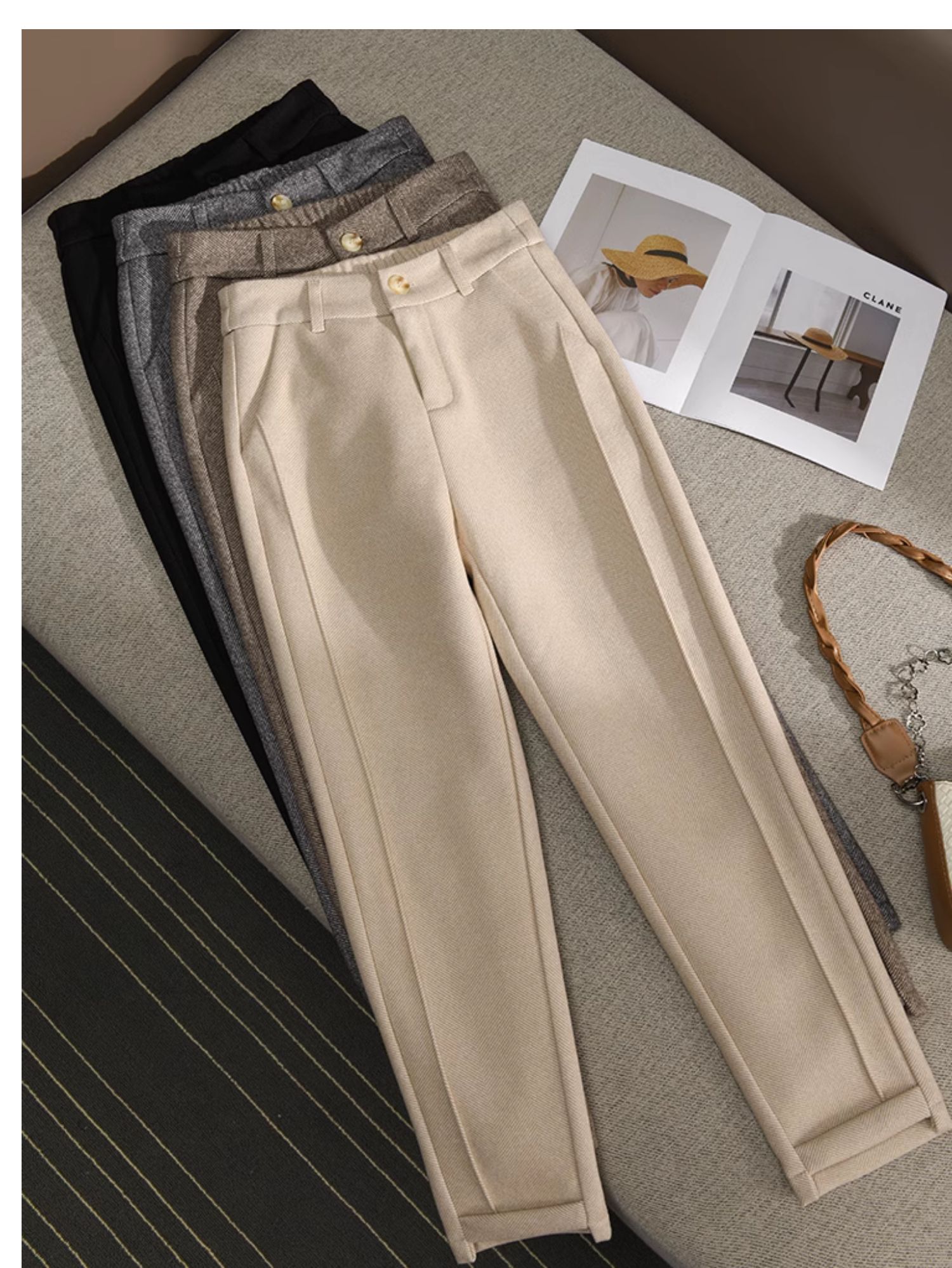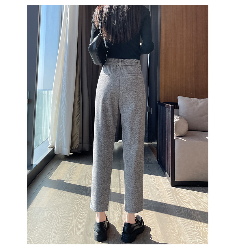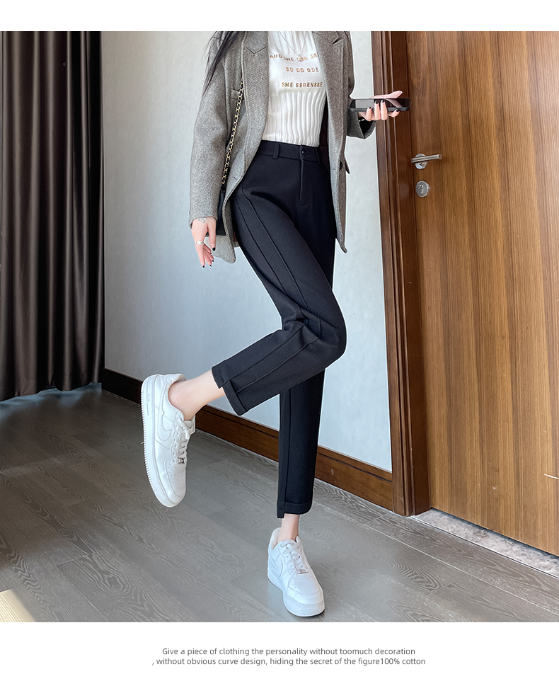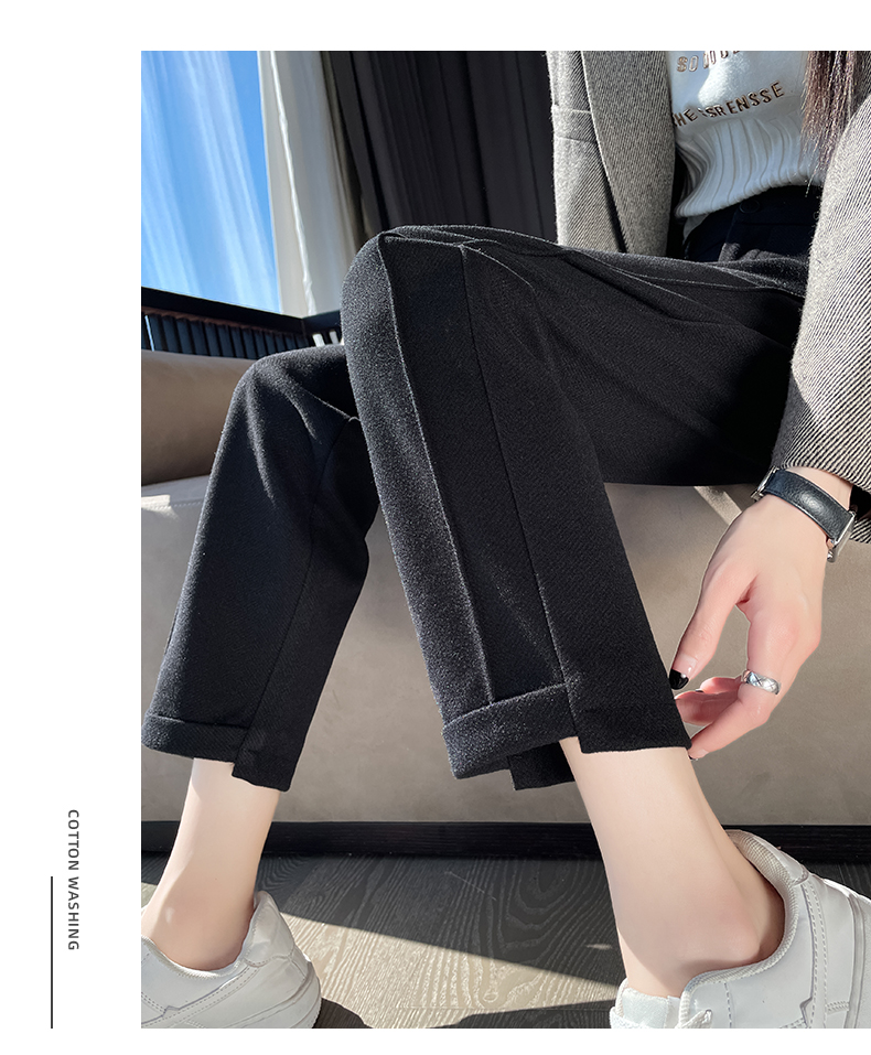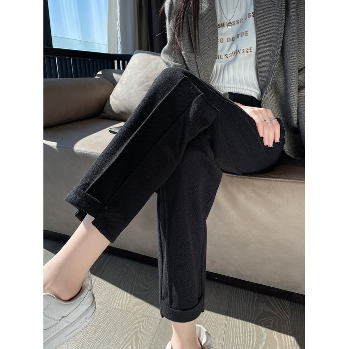 加絨毛呢褲子女秋冬季小個子高腰休閒寬松直筒西裝褲八九分菸管褲