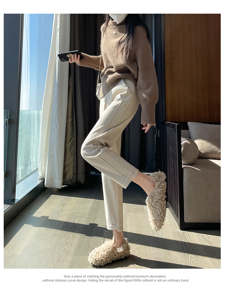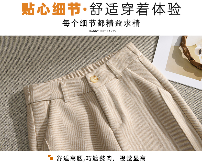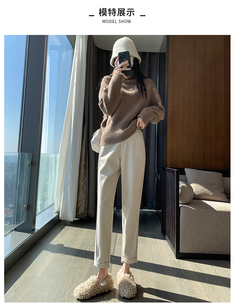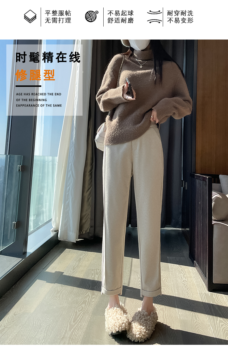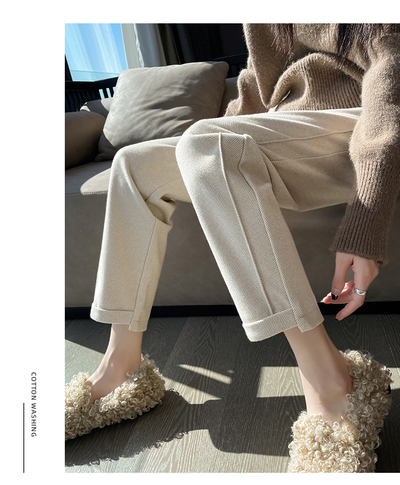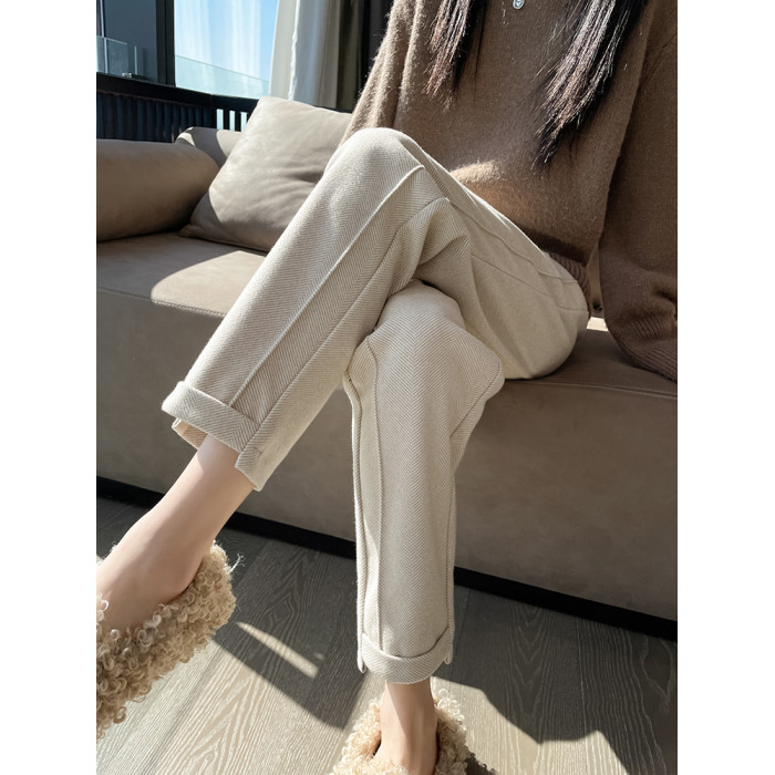 加絨毛呢褲子女秋冬季小個子高腰休閒寬松直筒西裝褲八九分菸管褲