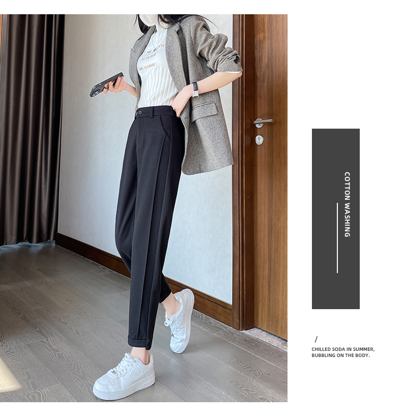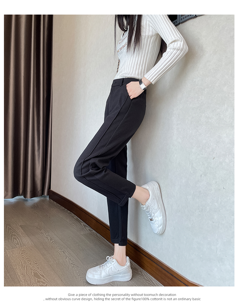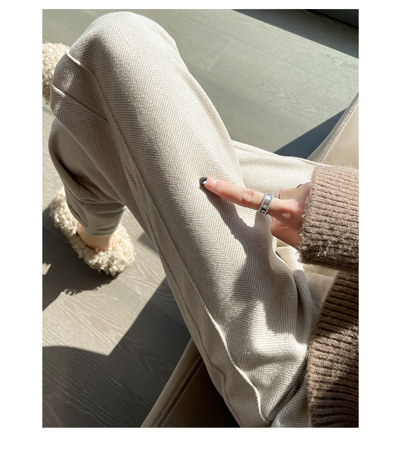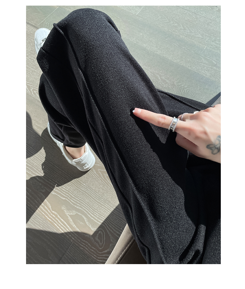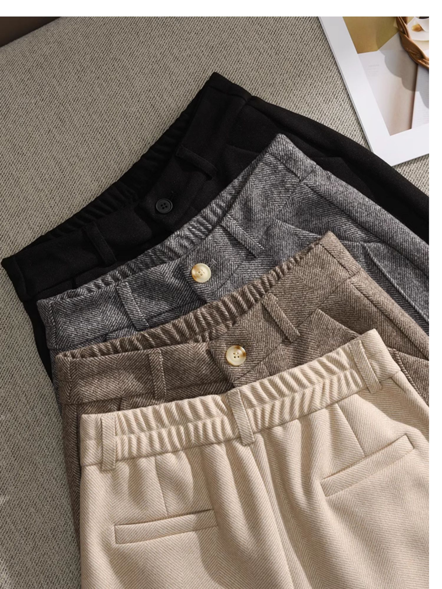 加絨毛呢褲子女秋冬季小個子高腰休閒寬松直筒西裝褲八九分菸管褲