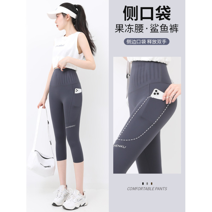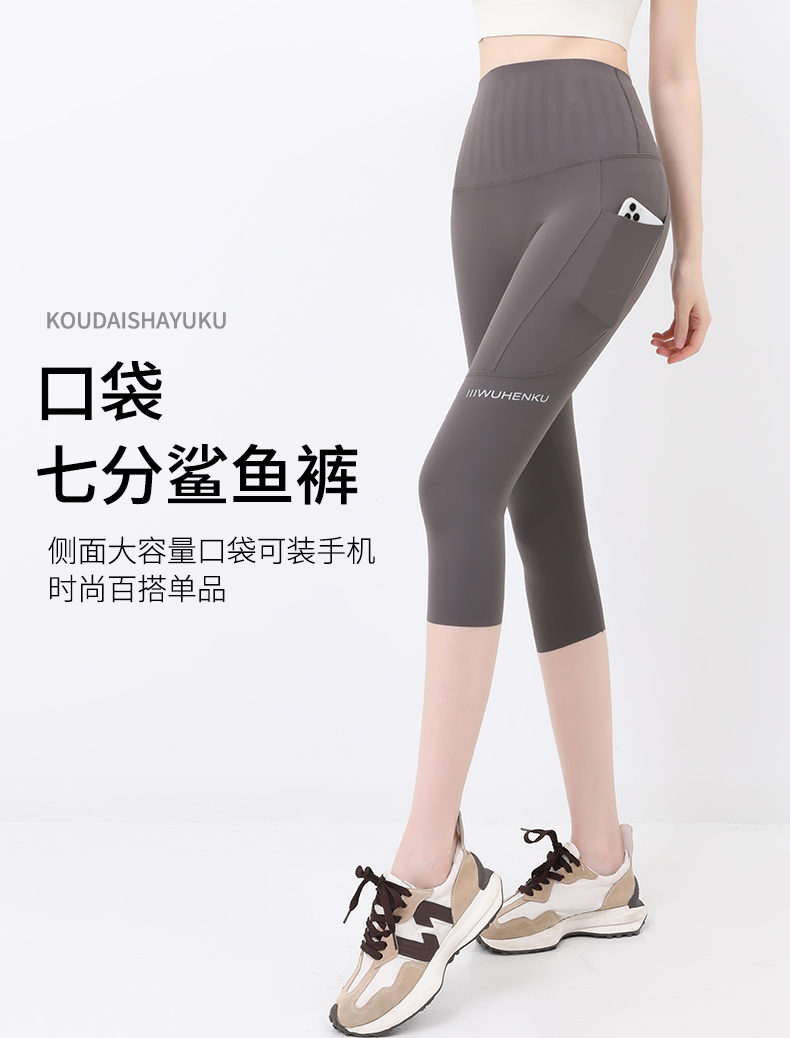 七分鯊魚褲女外穿健身夏季薄款打底褲高腰提臀瑜珈褲冰絲2025新款