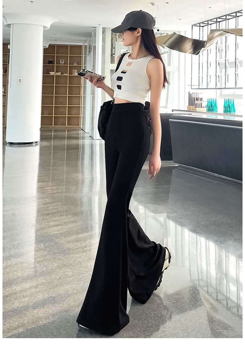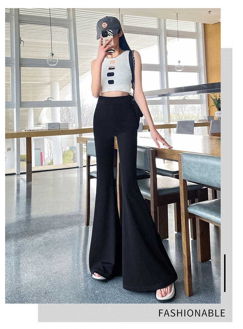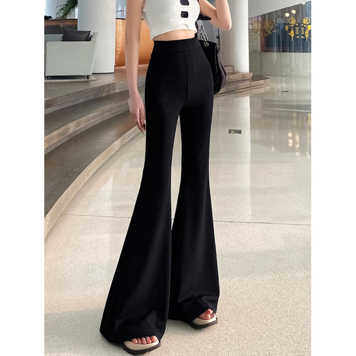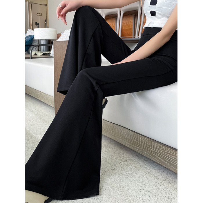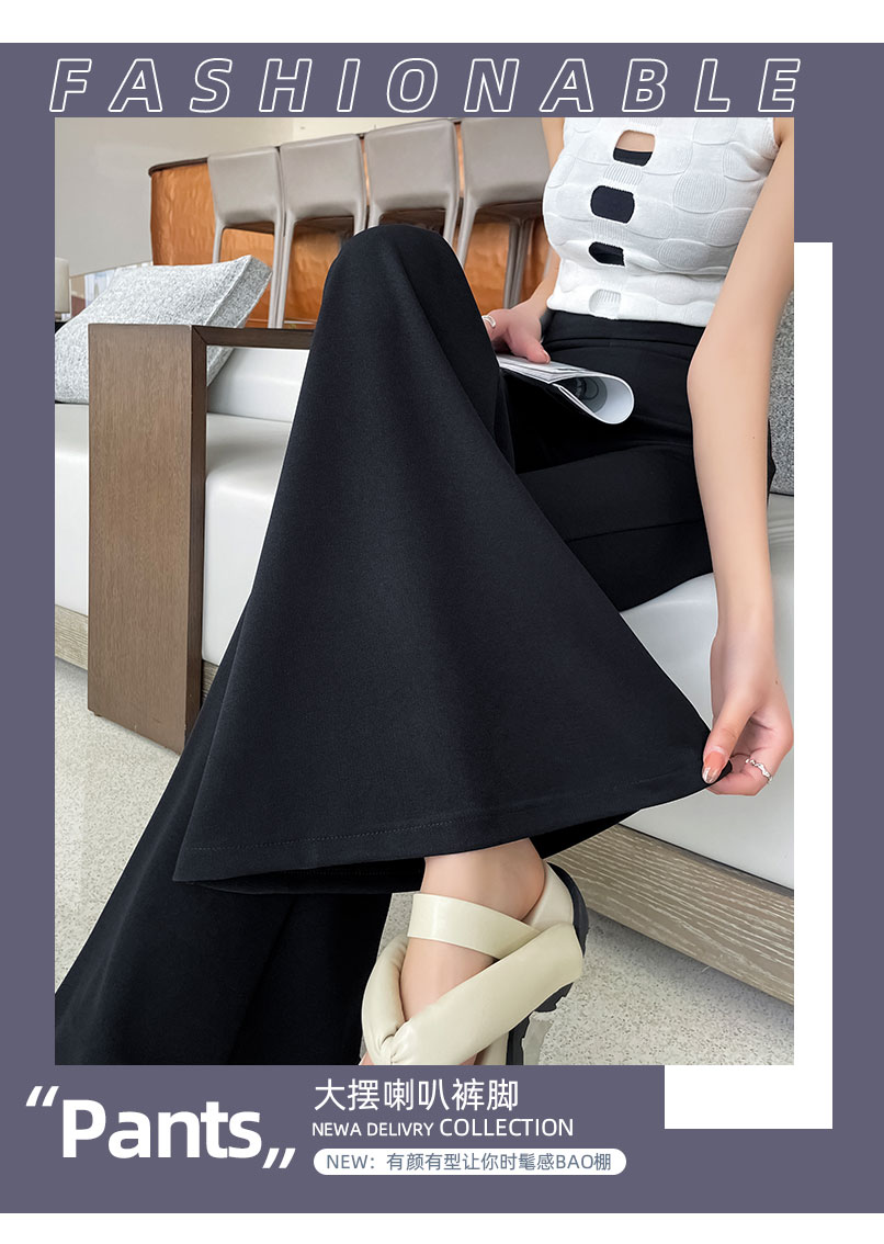 黑色大喇叭褲女夏季高腰顯瘦垂感西裝濶腿褲高個子加長拖地馬蹄褲