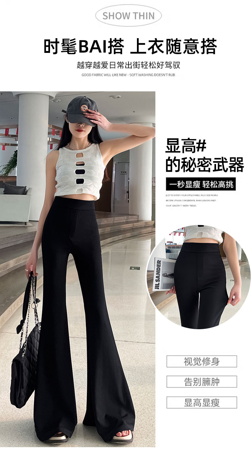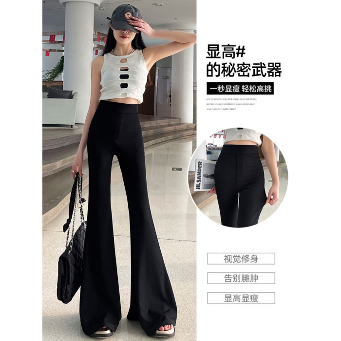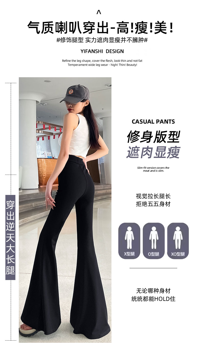 黑色大喇叭褲女夏季高腰顯瘦垂感西裝濶腿褲高個子加長拖地馬蹄褲