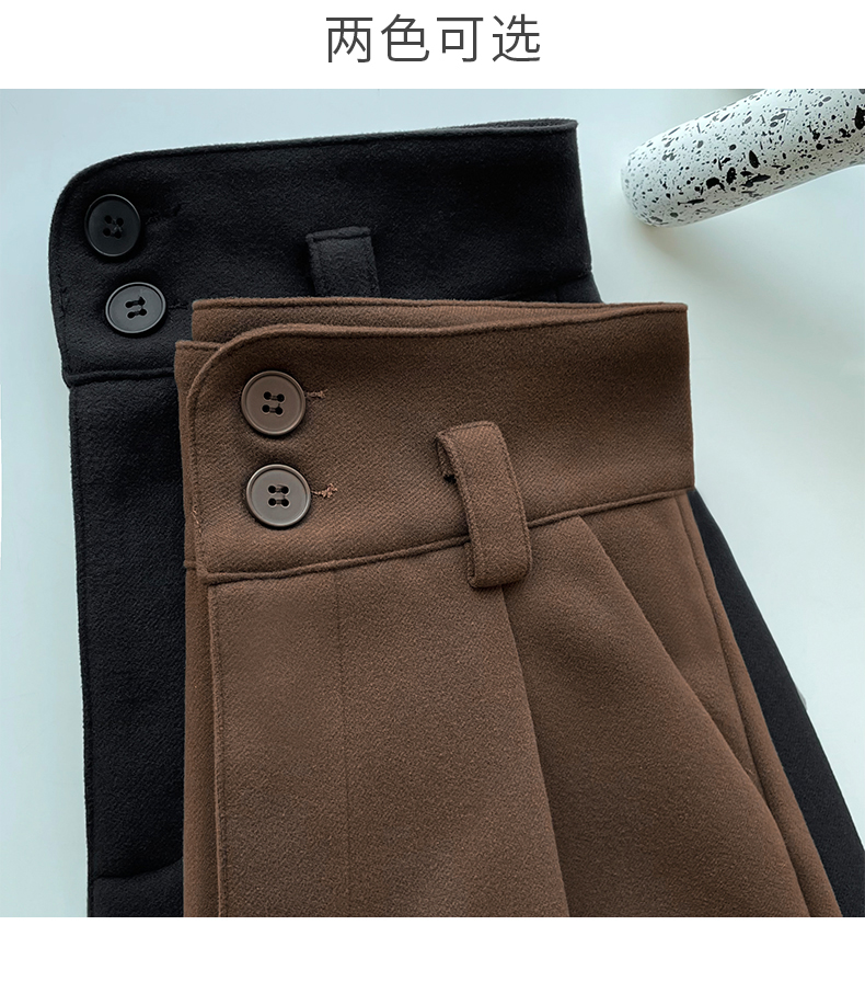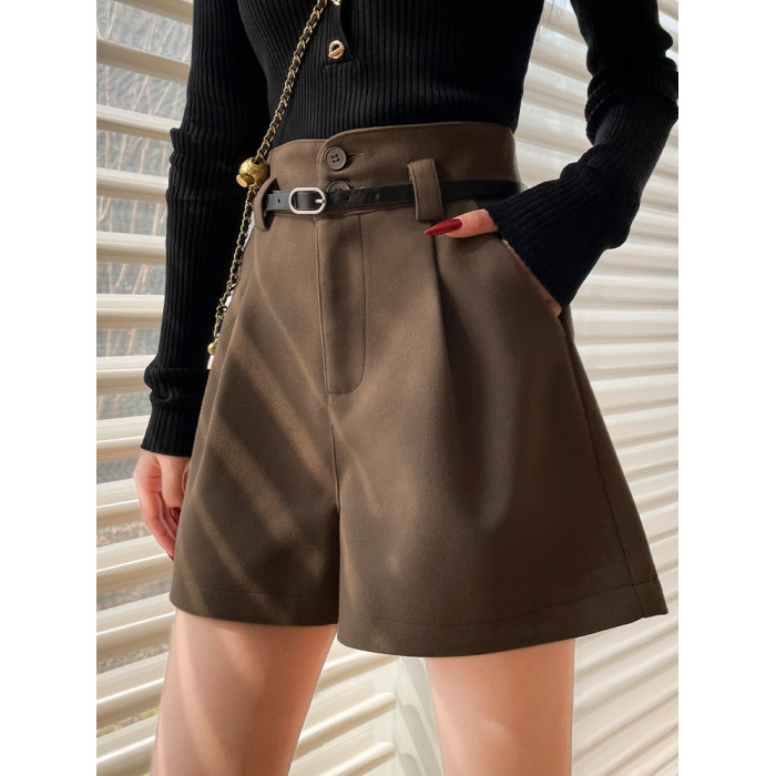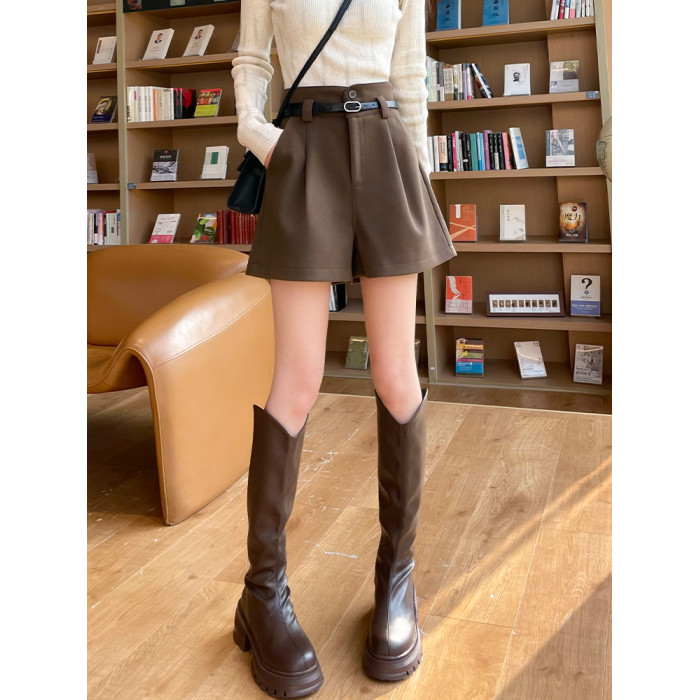 咖色毛呢短褲女秋冬季新款加厚高腰顯瘦外穿打底a字濶腿休閒靴褲