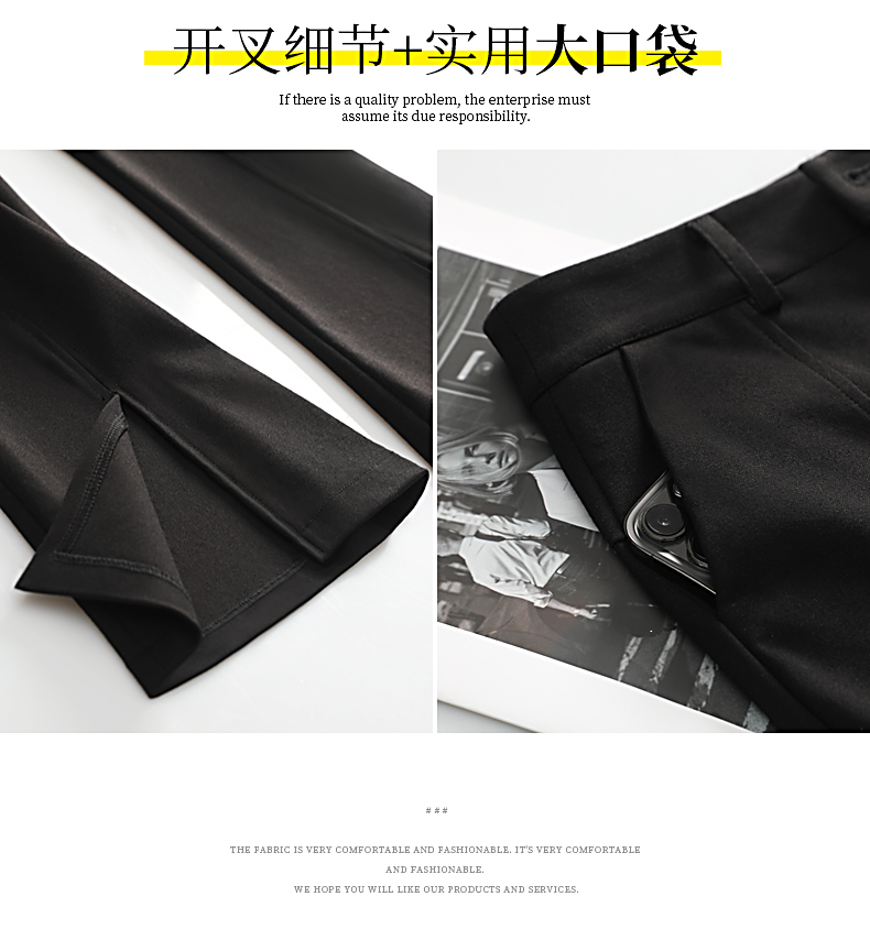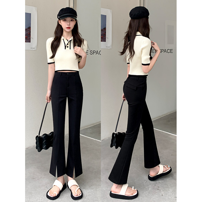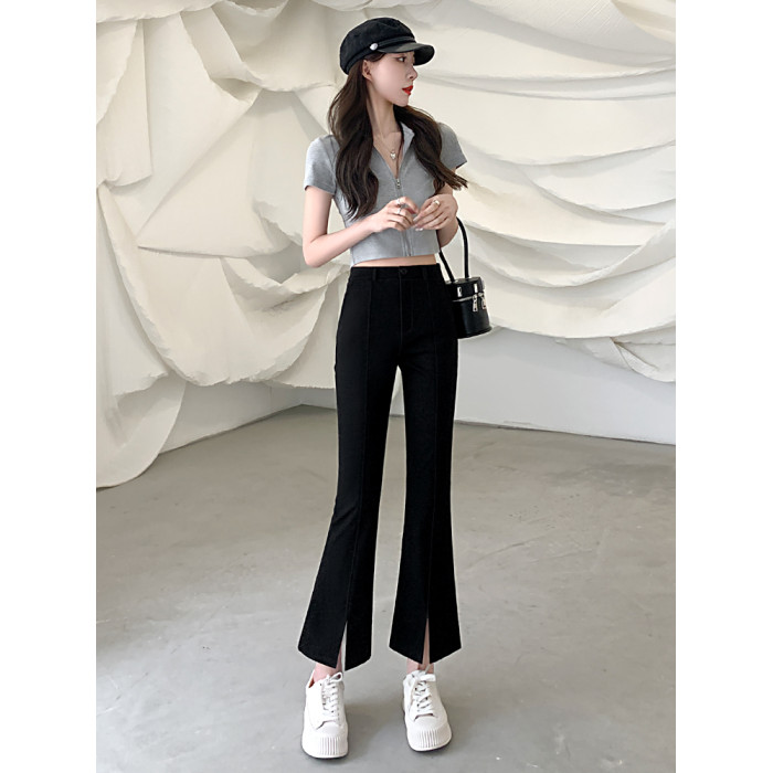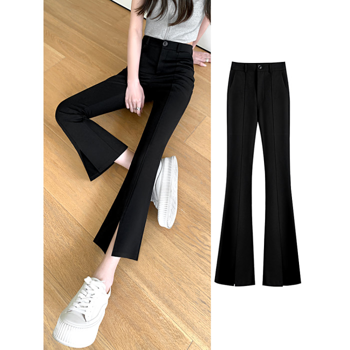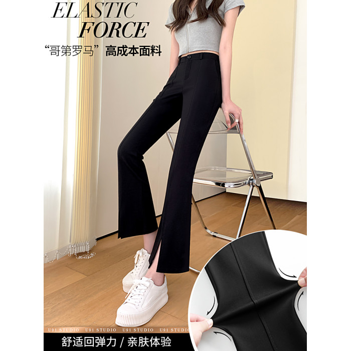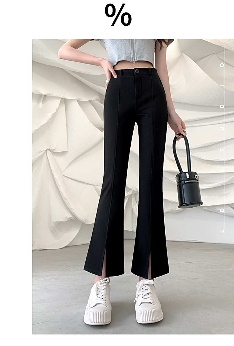 九分微喇叭褲女春秋季高腰顯瘦黑色2025新款八分小個子西裝褲開叉