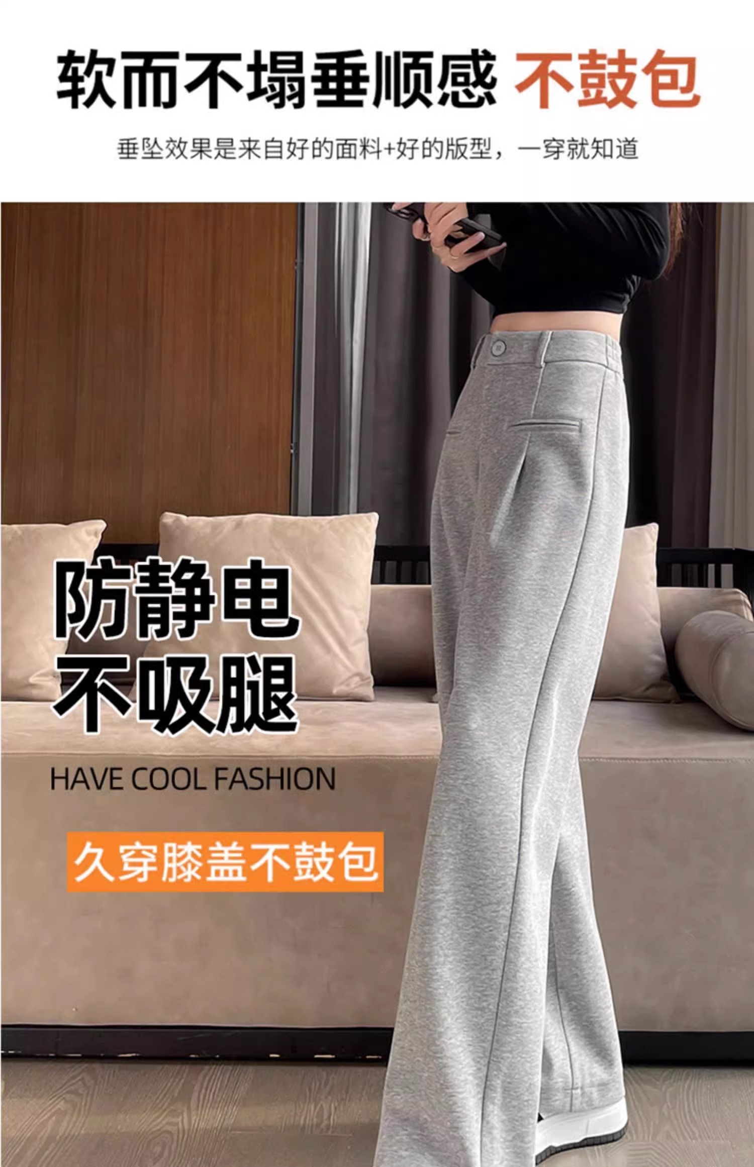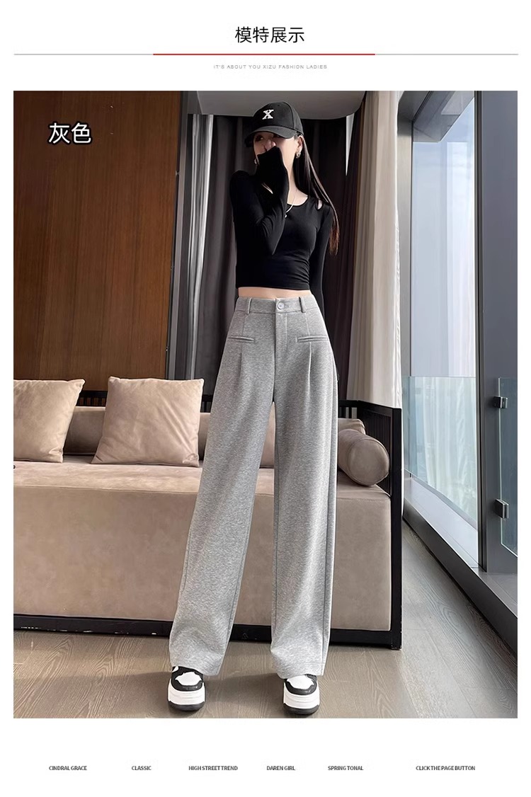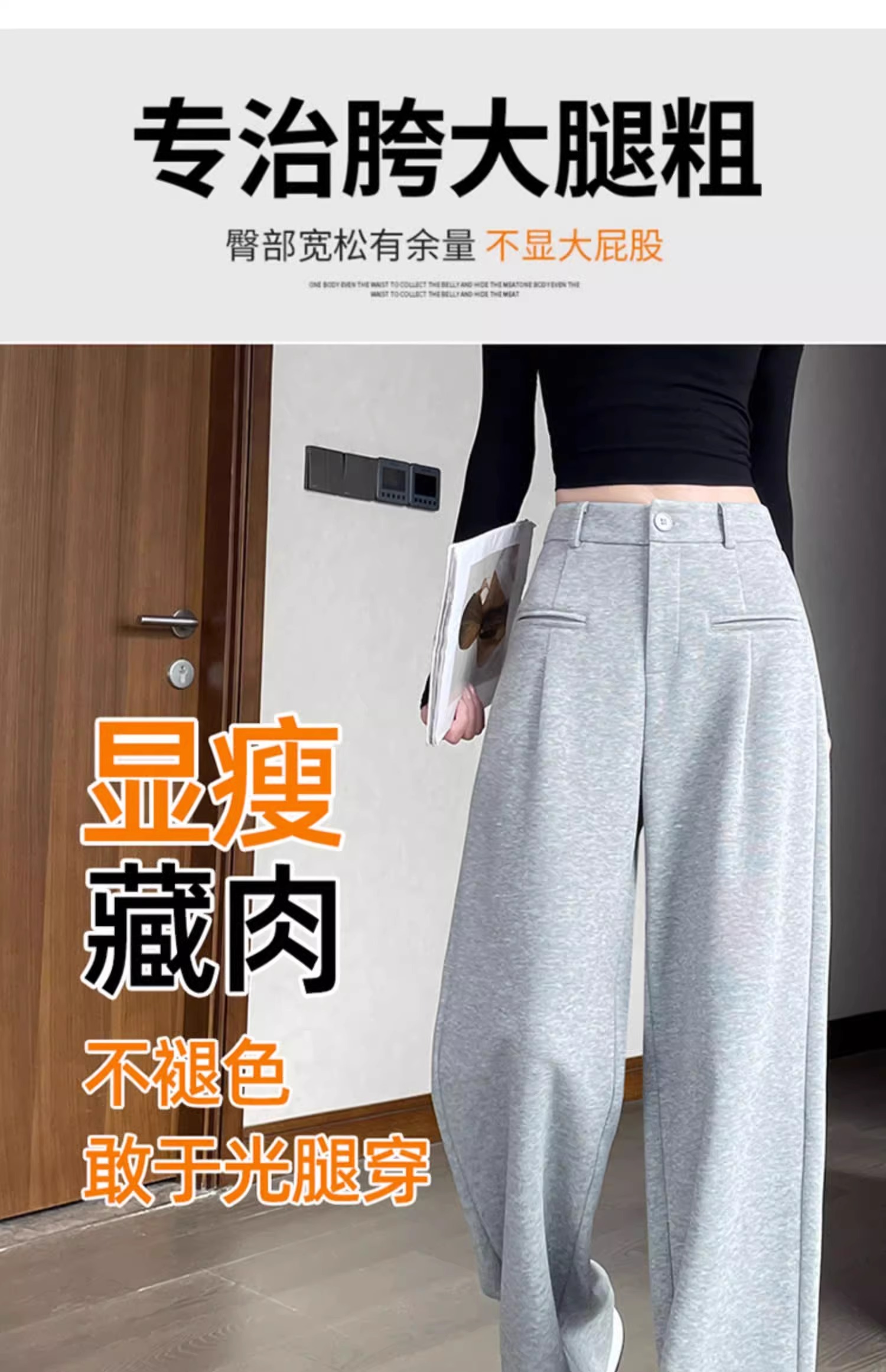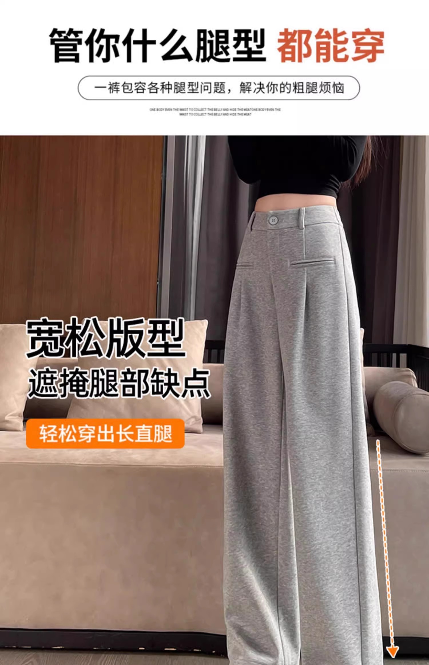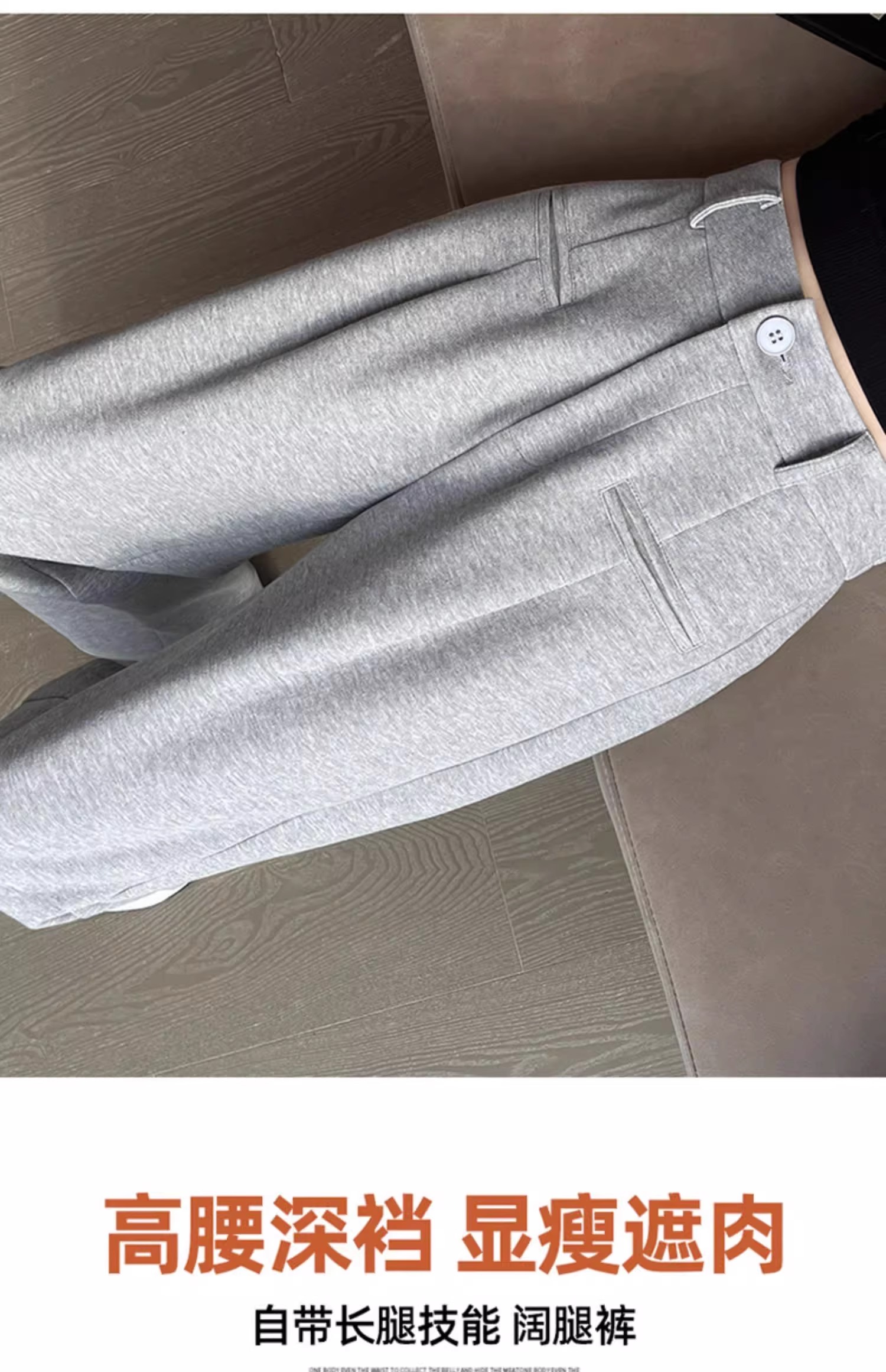 145小個子灰色西裝濶腿褲女春秋150高腰垂感直筒褲寬松運動休閒褲