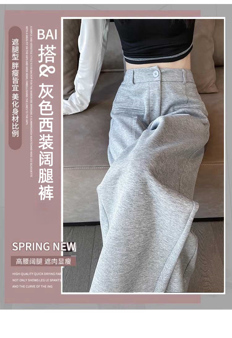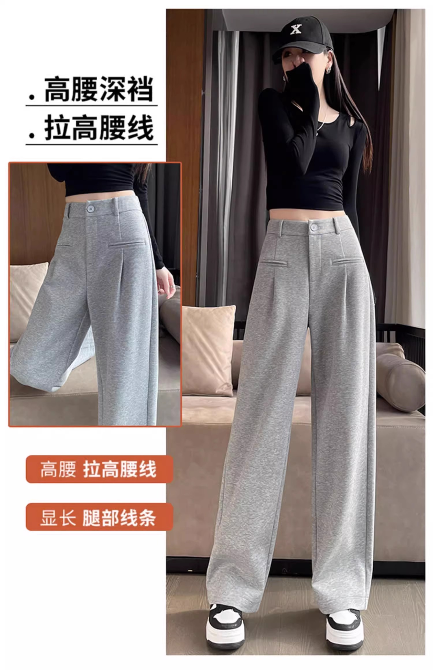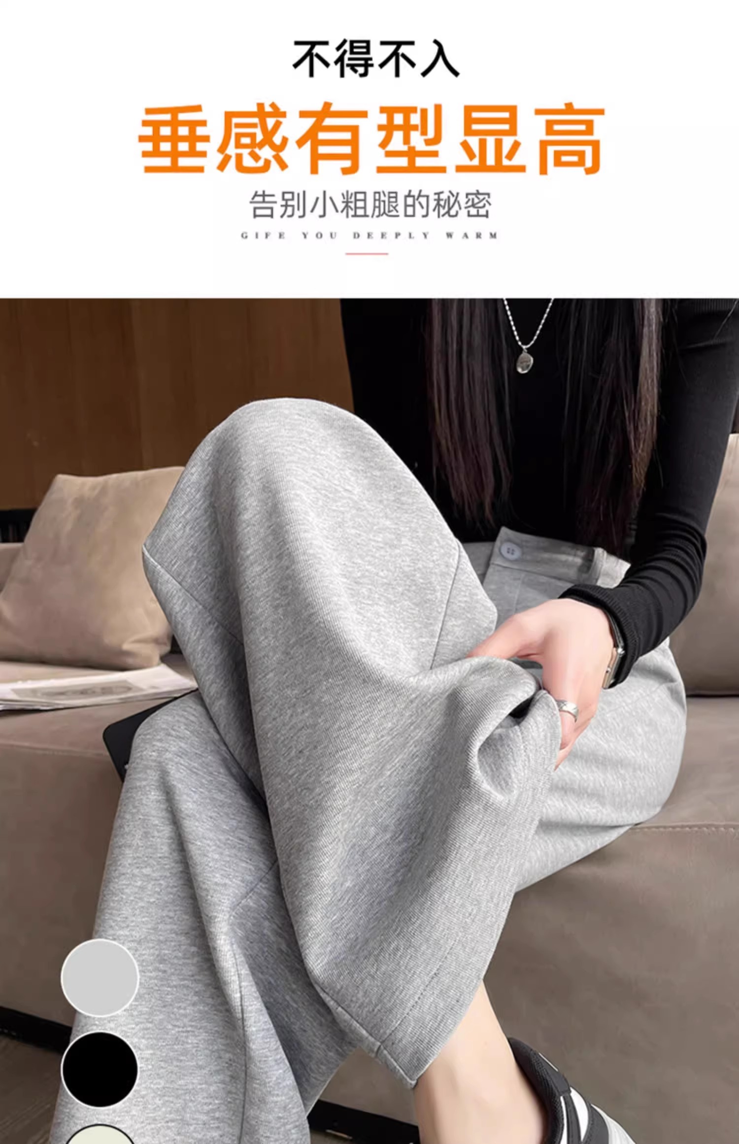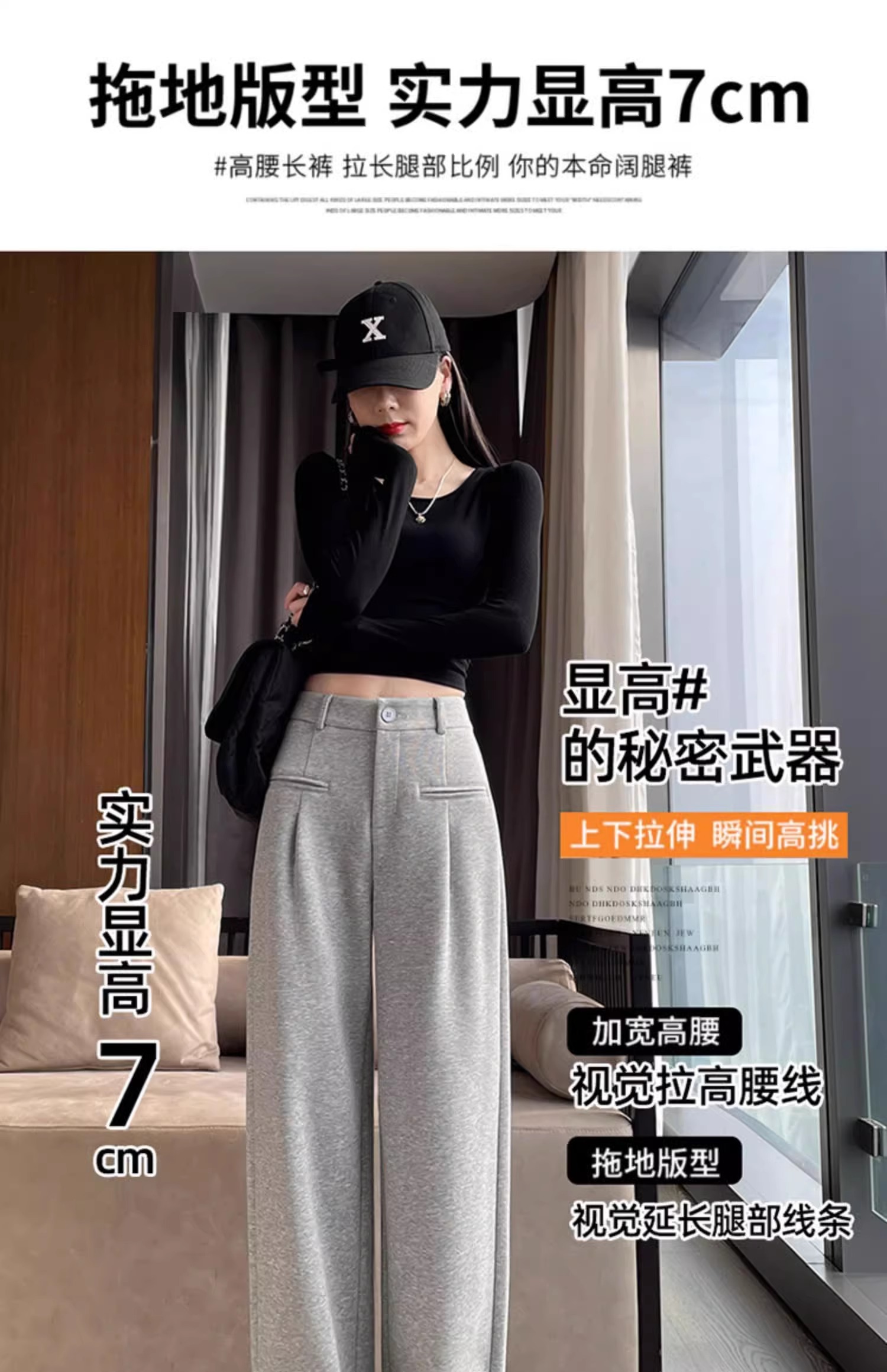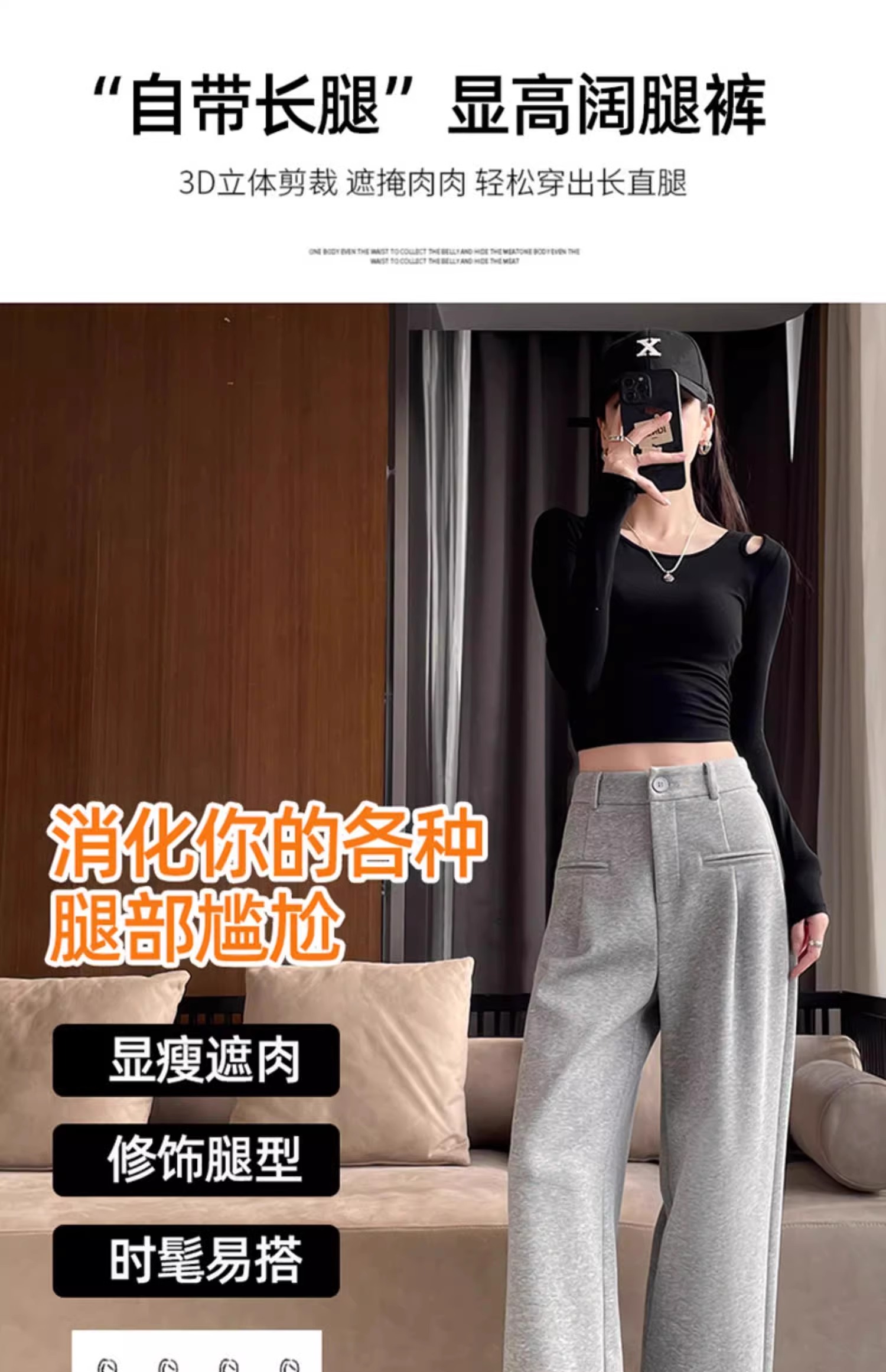 145小個子灰色西裝濶腿褲女春秋150高腰垂感直筒褲寬松運動休閒褲