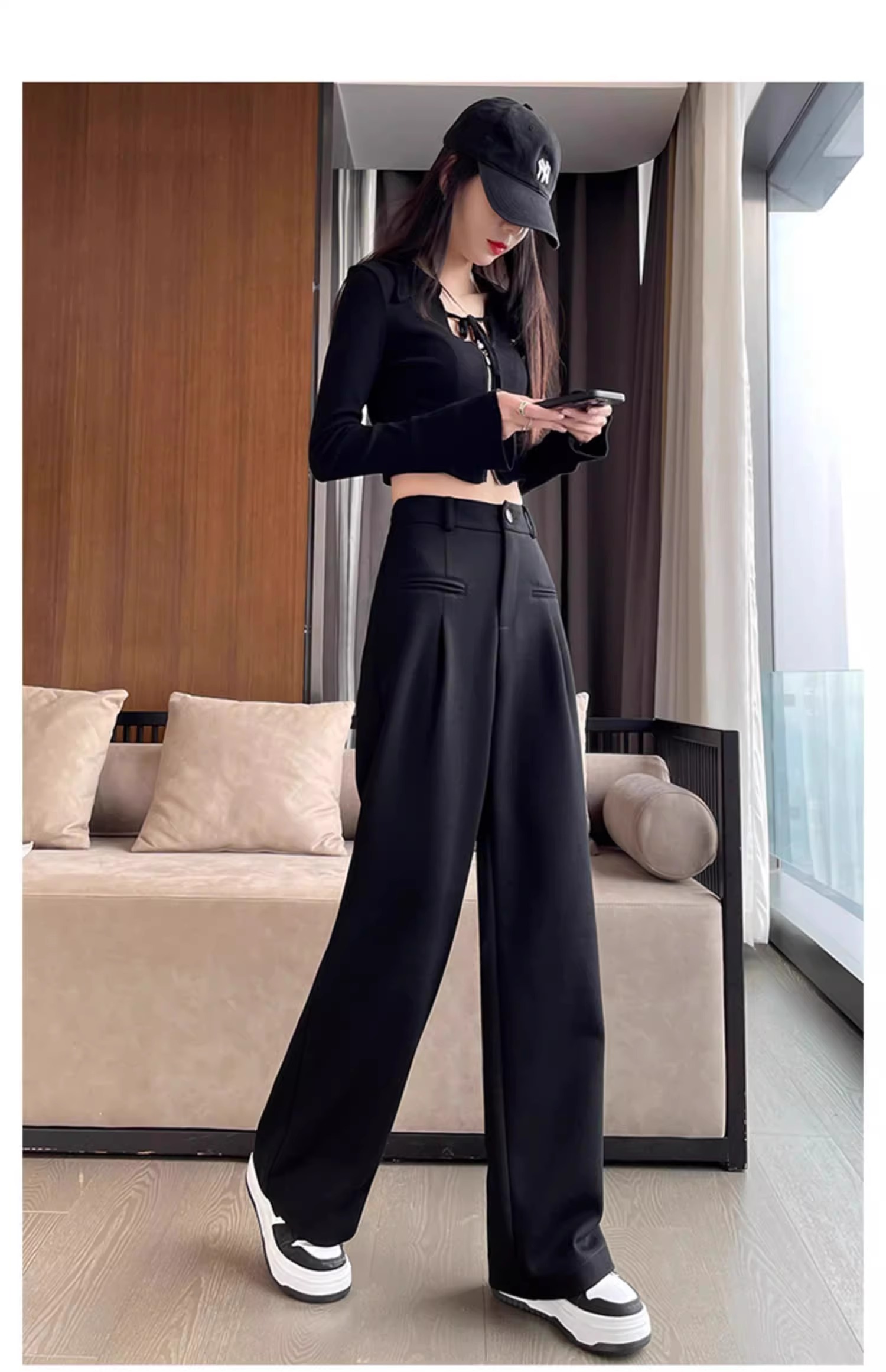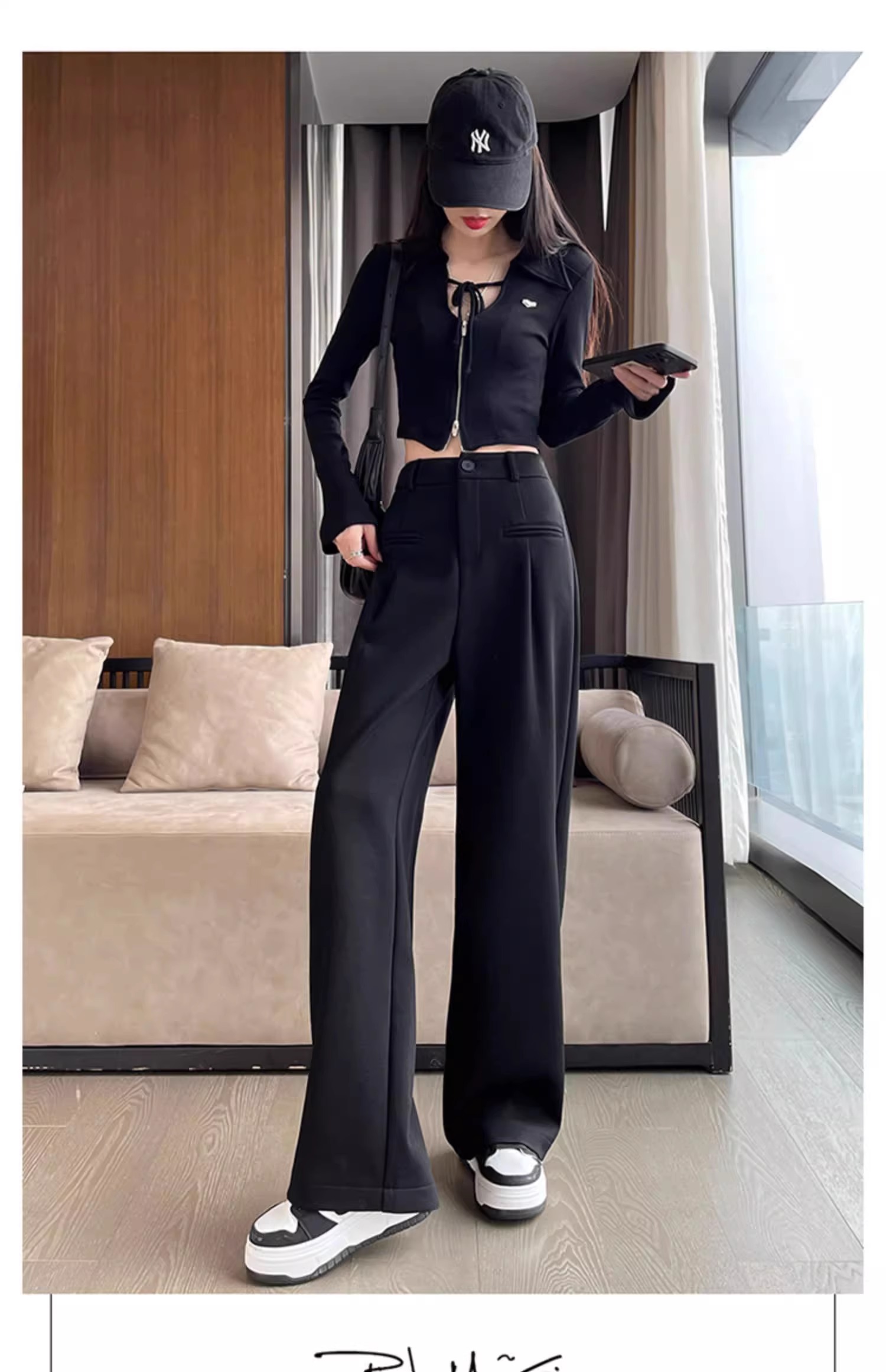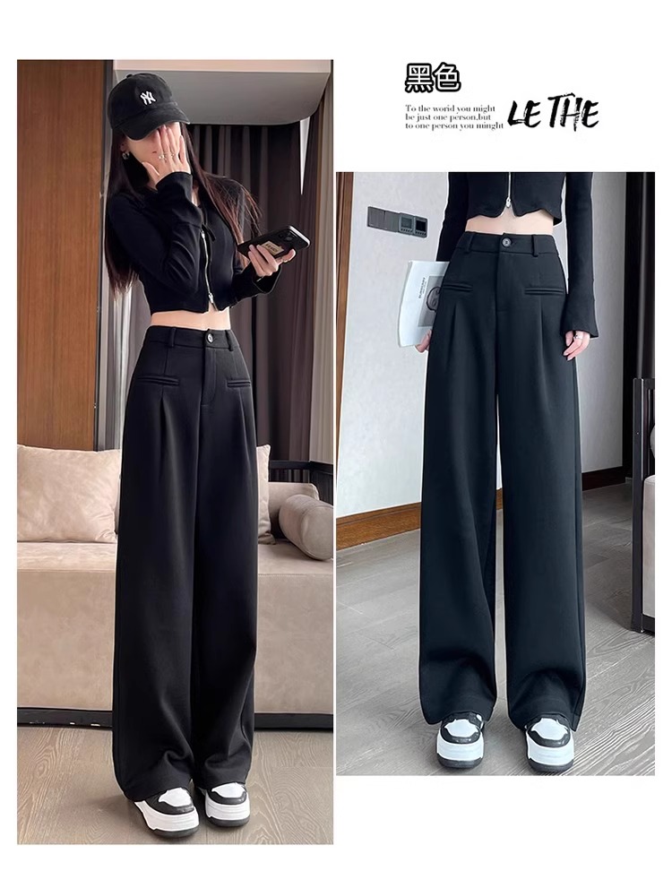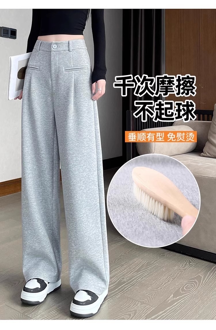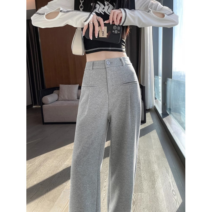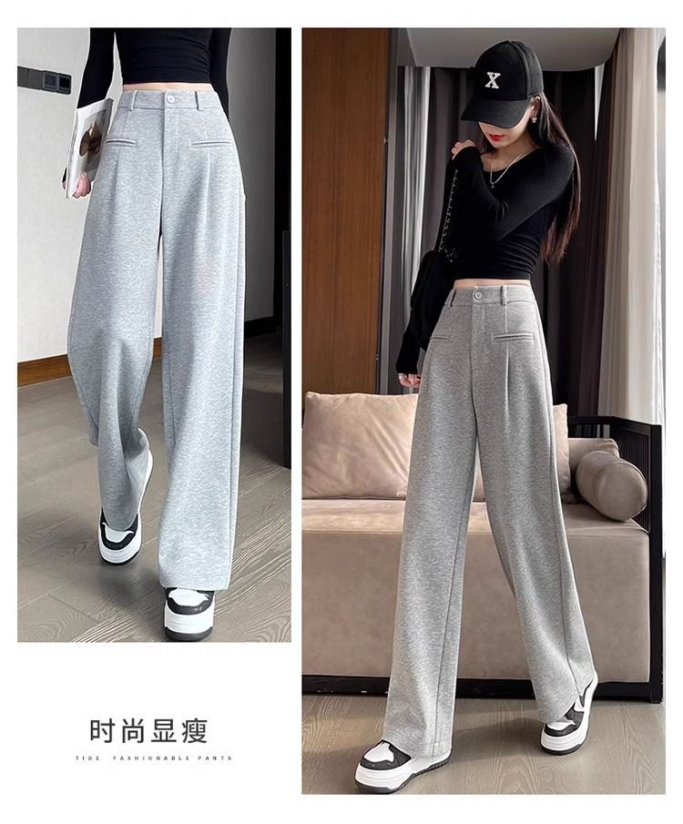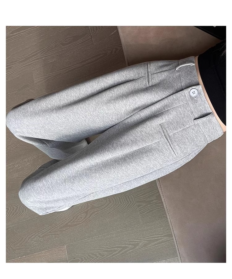145小個子灰色西裝濶腿褲女春秋150高腰垂感直筒褲寬松運動休閒褲
