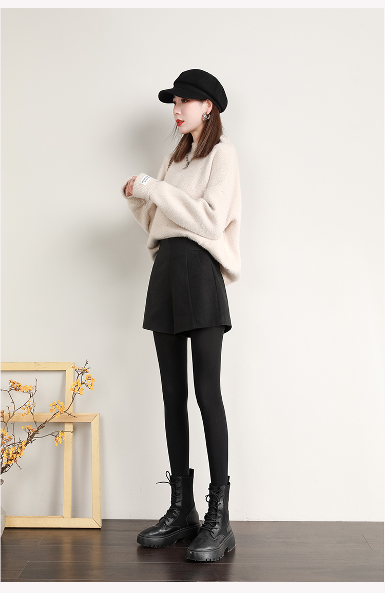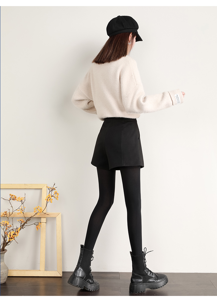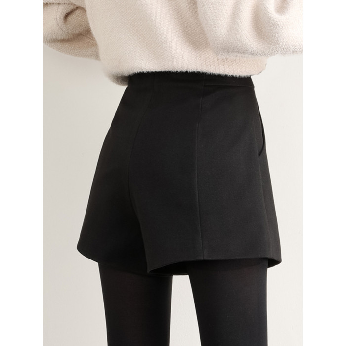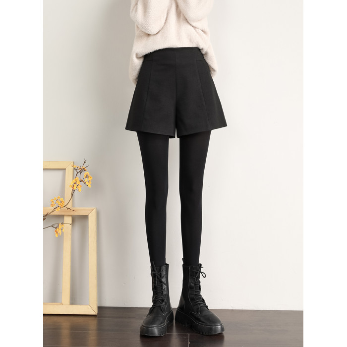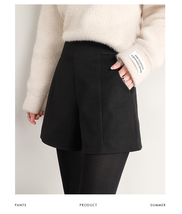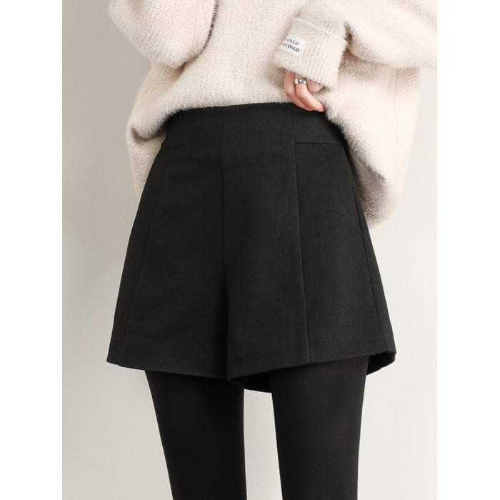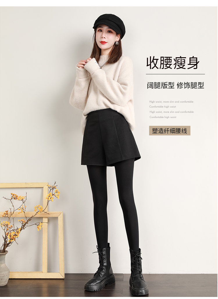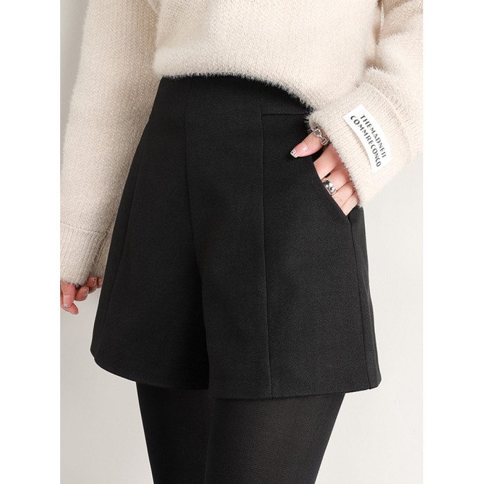 毛呢短褲女2025爆款秋冬季新款濶腿高腰a字顯瘦黑色外穿打底靴褲