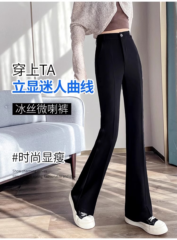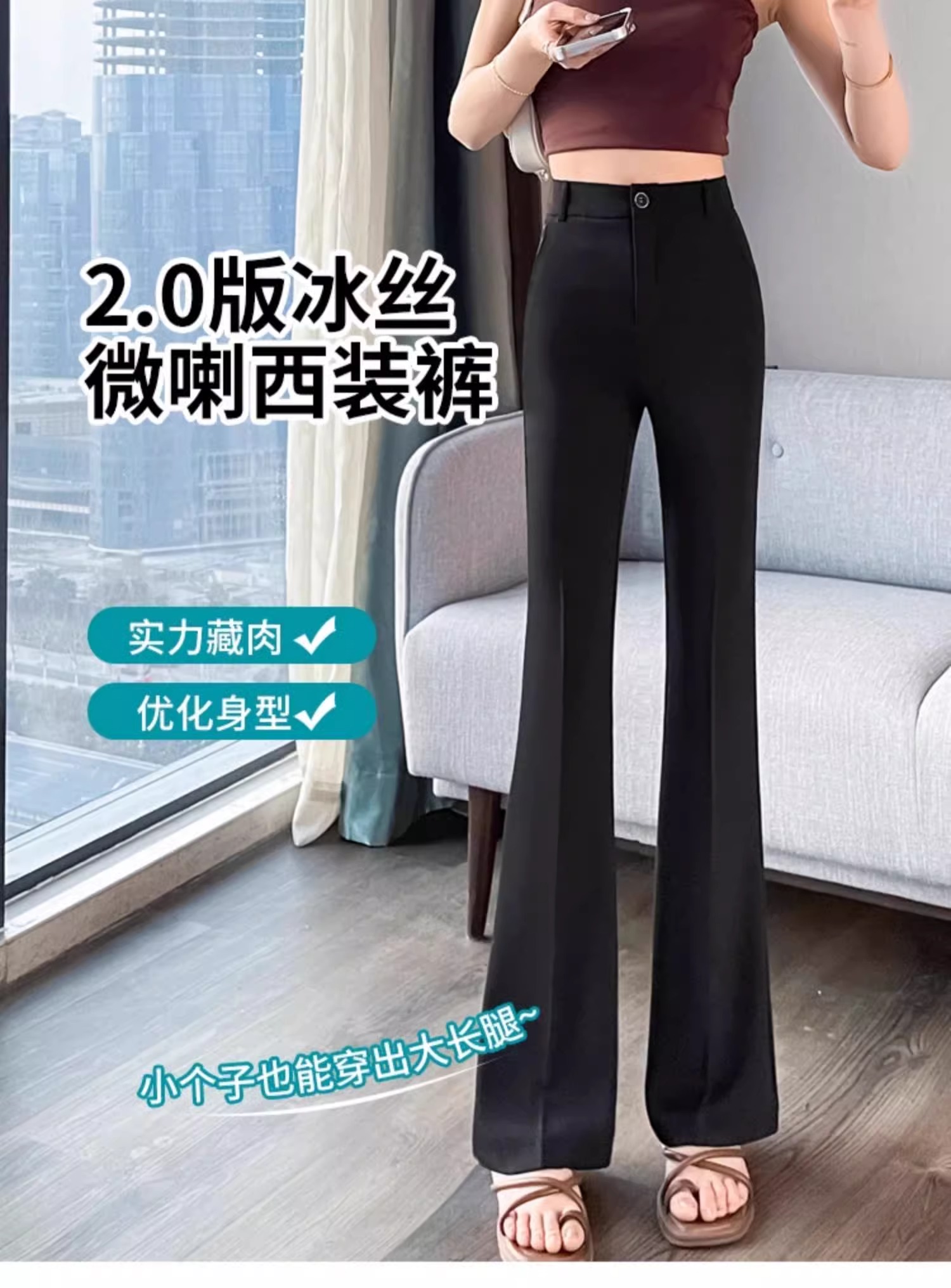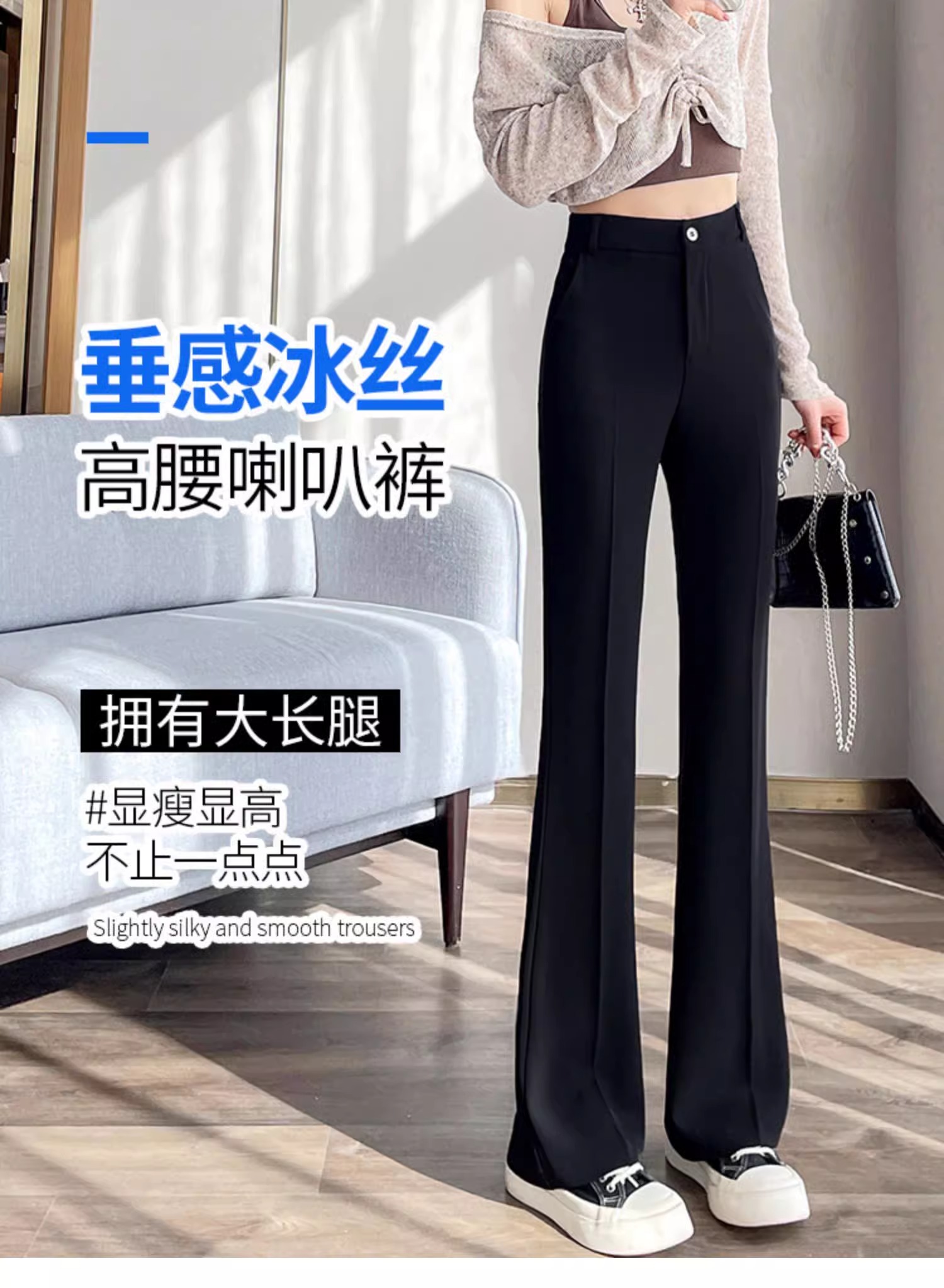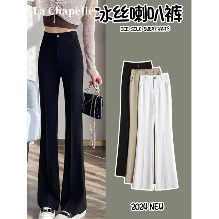 拉夏貝爾冰絲喇叭褲女夏薄2025新款高腰修身春秋小個子西裝微喇褲