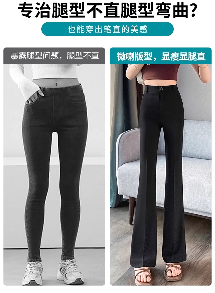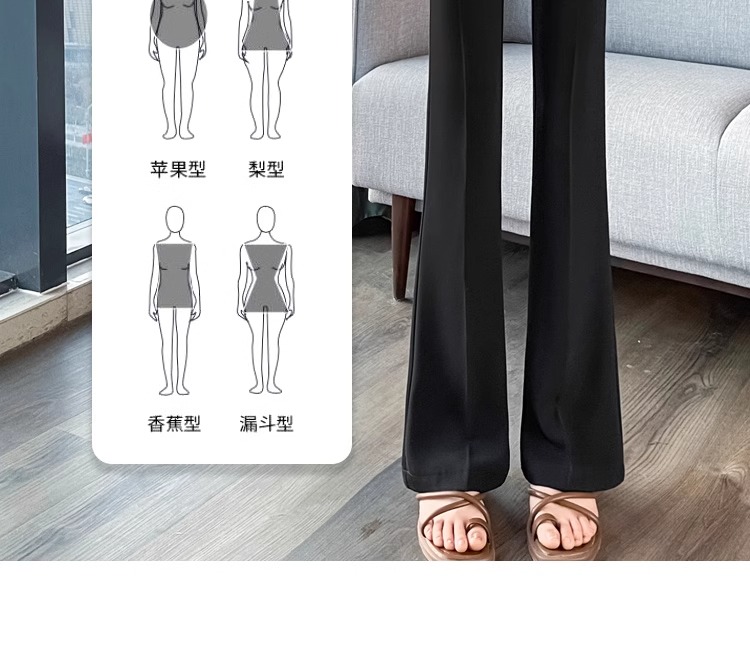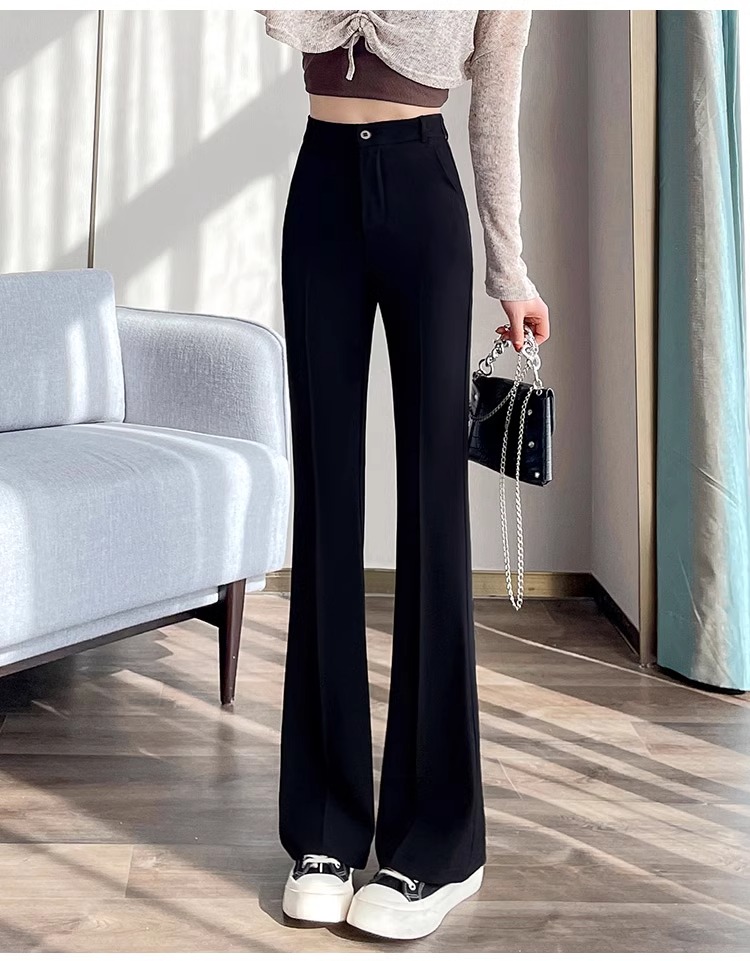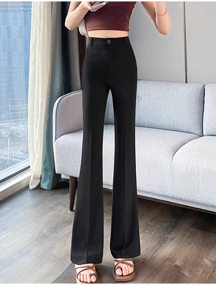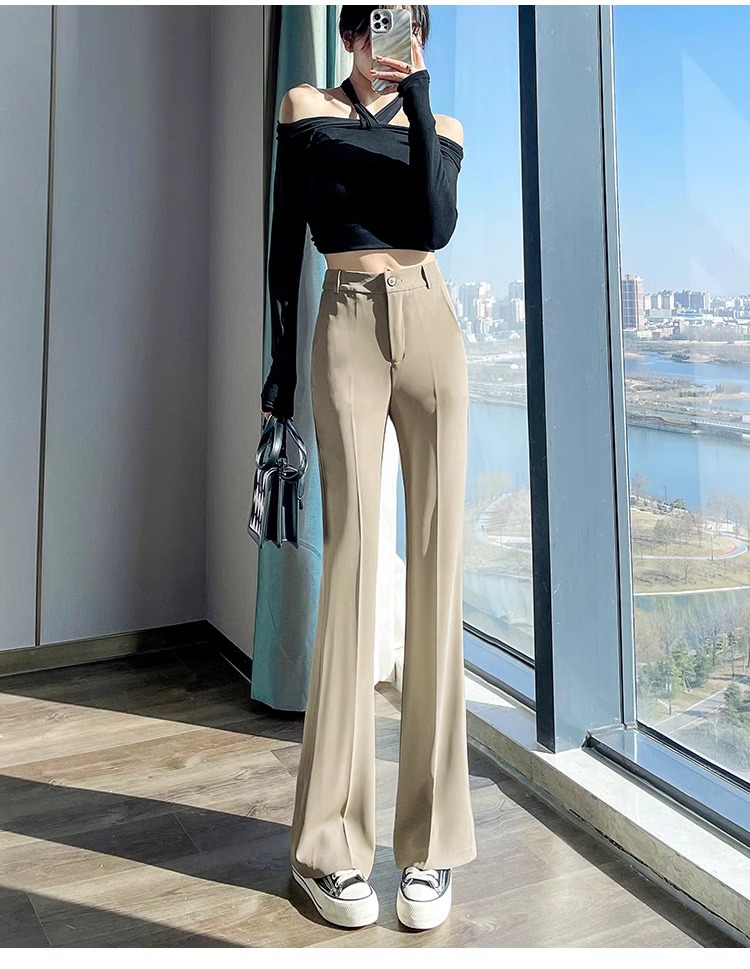 拉夏貝爾冰絲喇叭褲女夏薄2025新款高腰修身春秋小個子西裝微喇褲