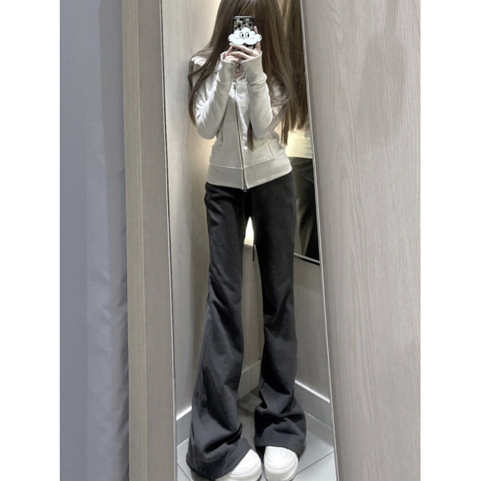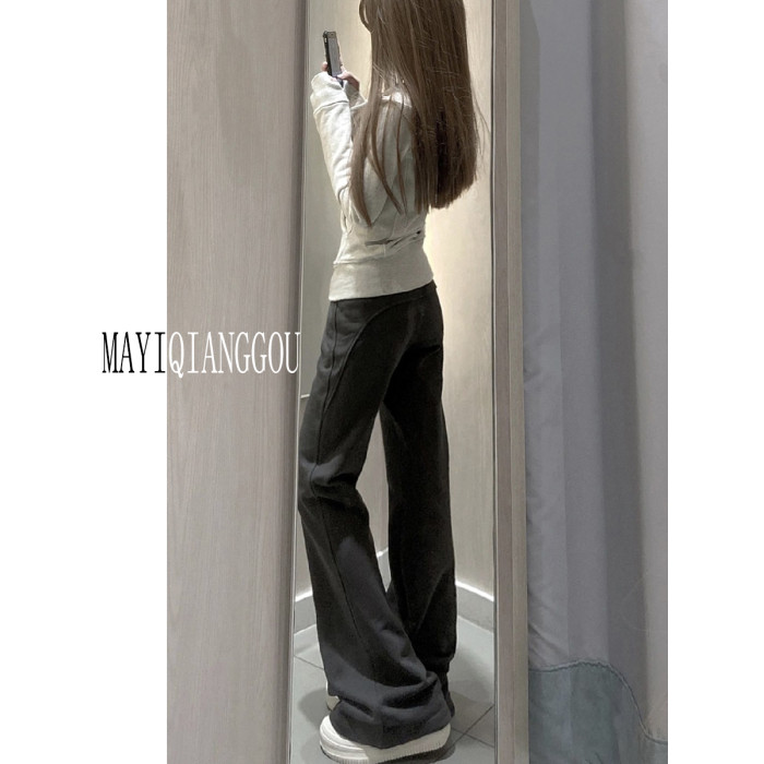 175高個子加長灰色美式喇叭褲女顯瘦直筒垂墜感瑜珈運動褲拖地褲