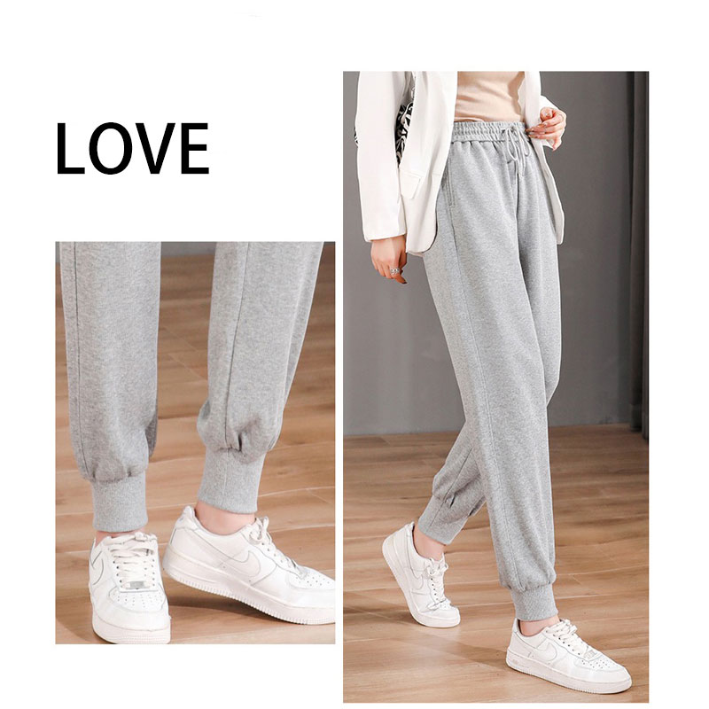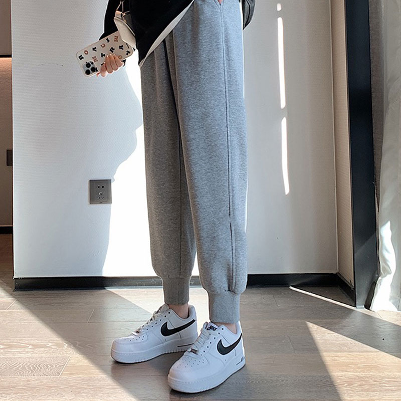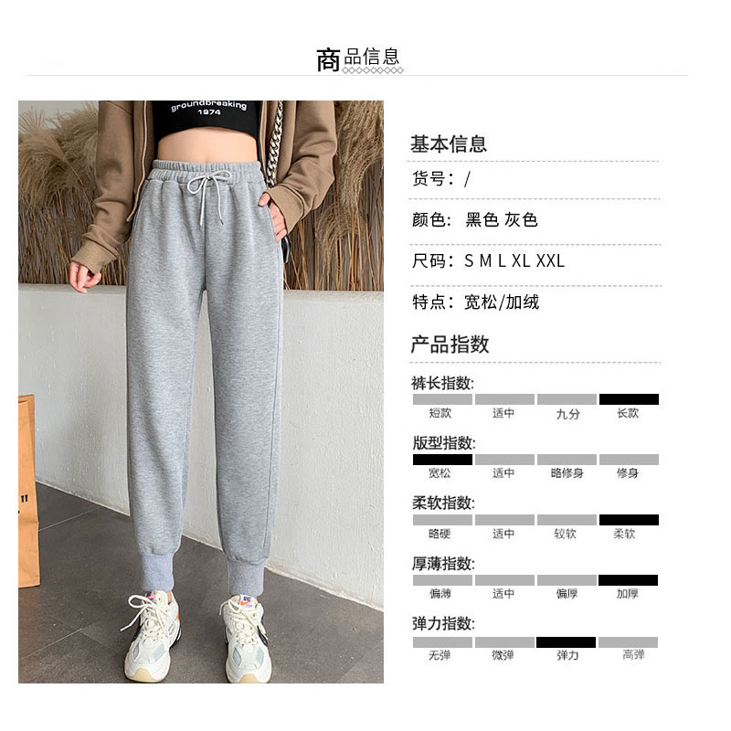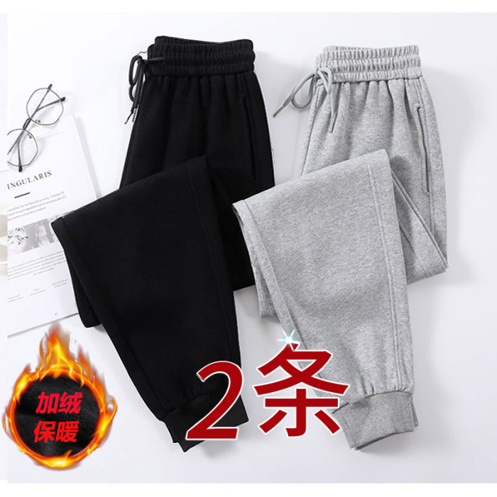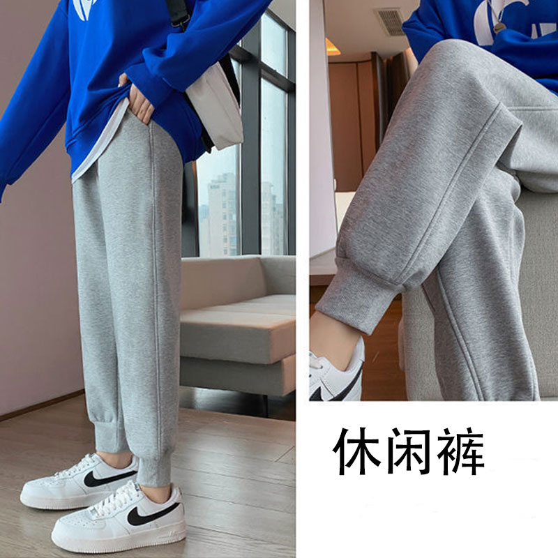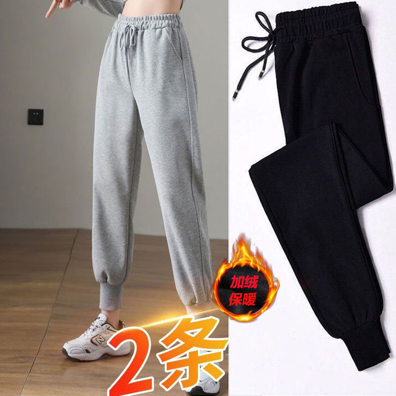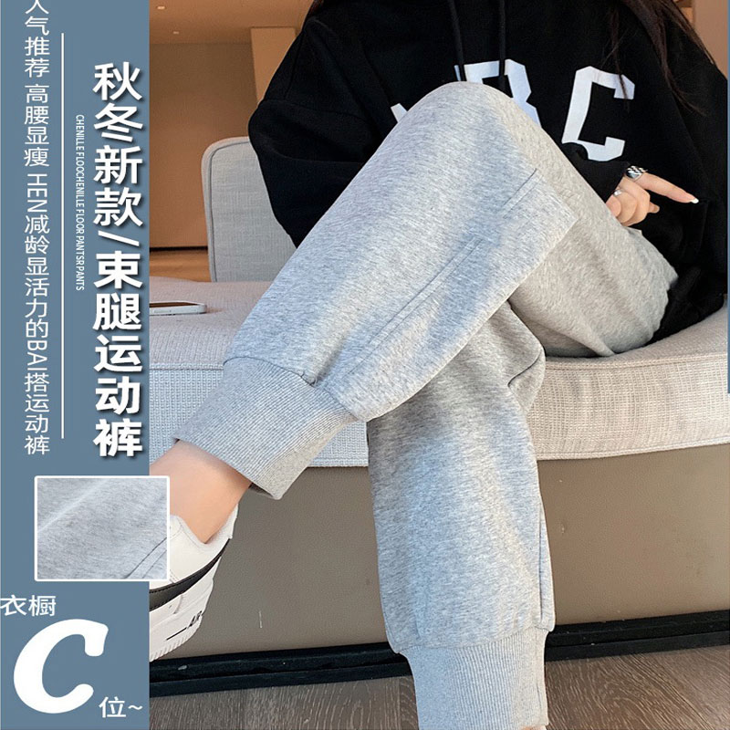 加絨加厚運動褲女秋冬季百搭寬松束腳褲2025大碼女裝灰色休閒衛褲