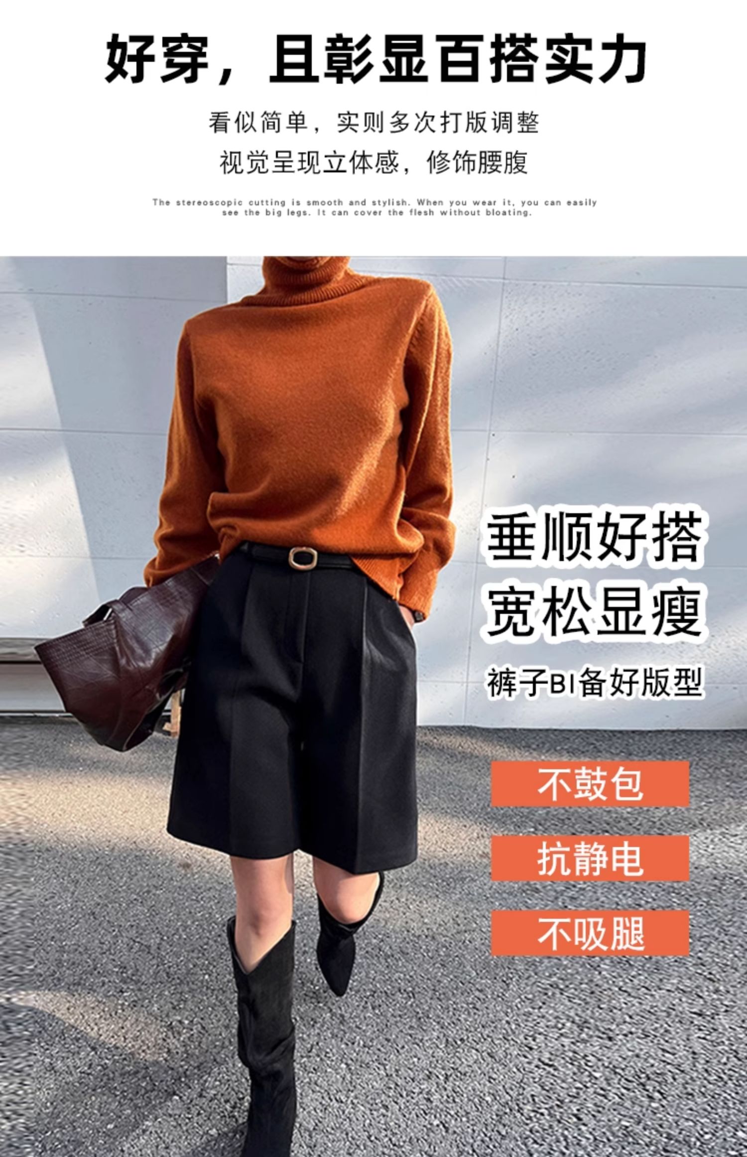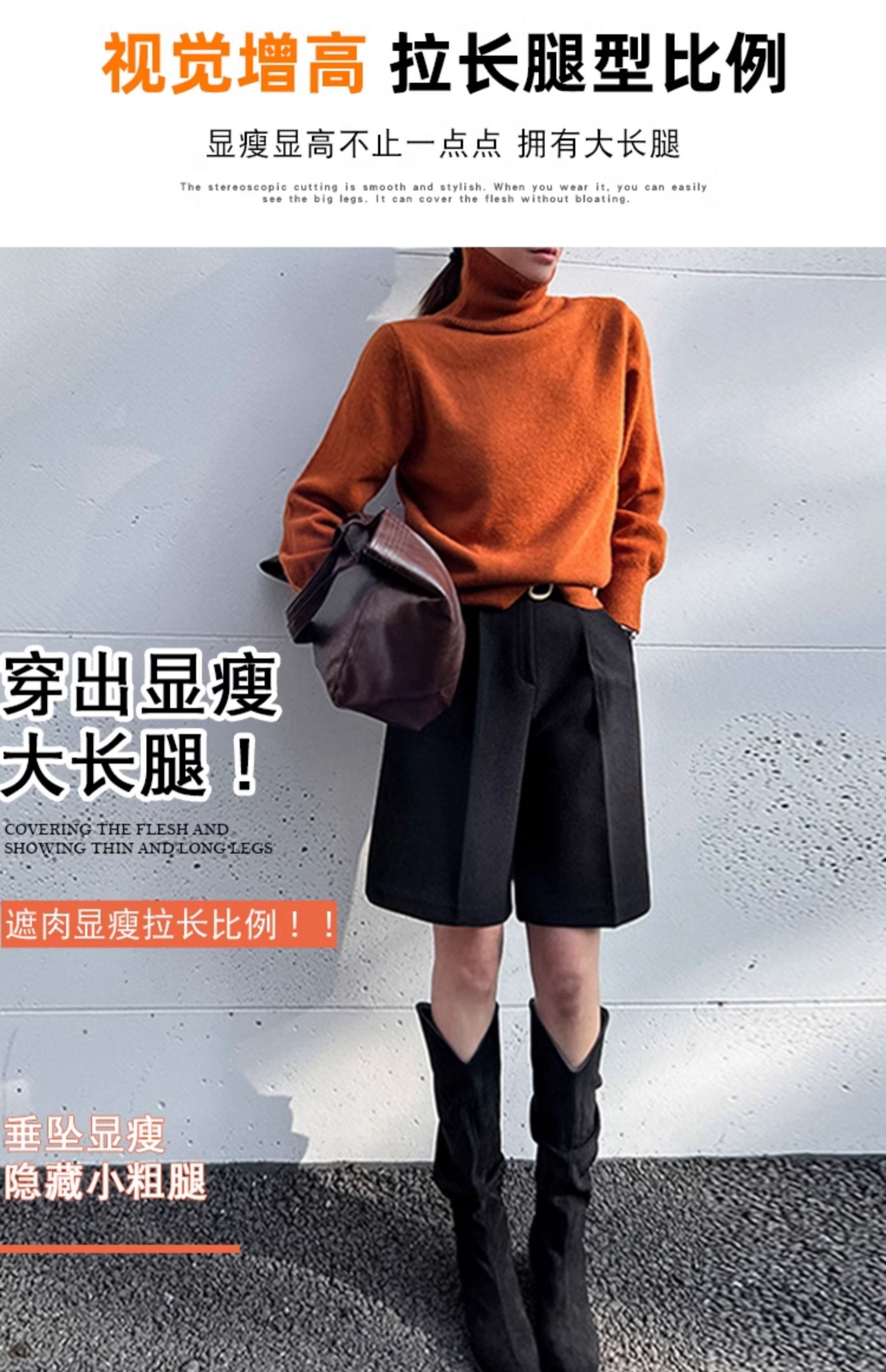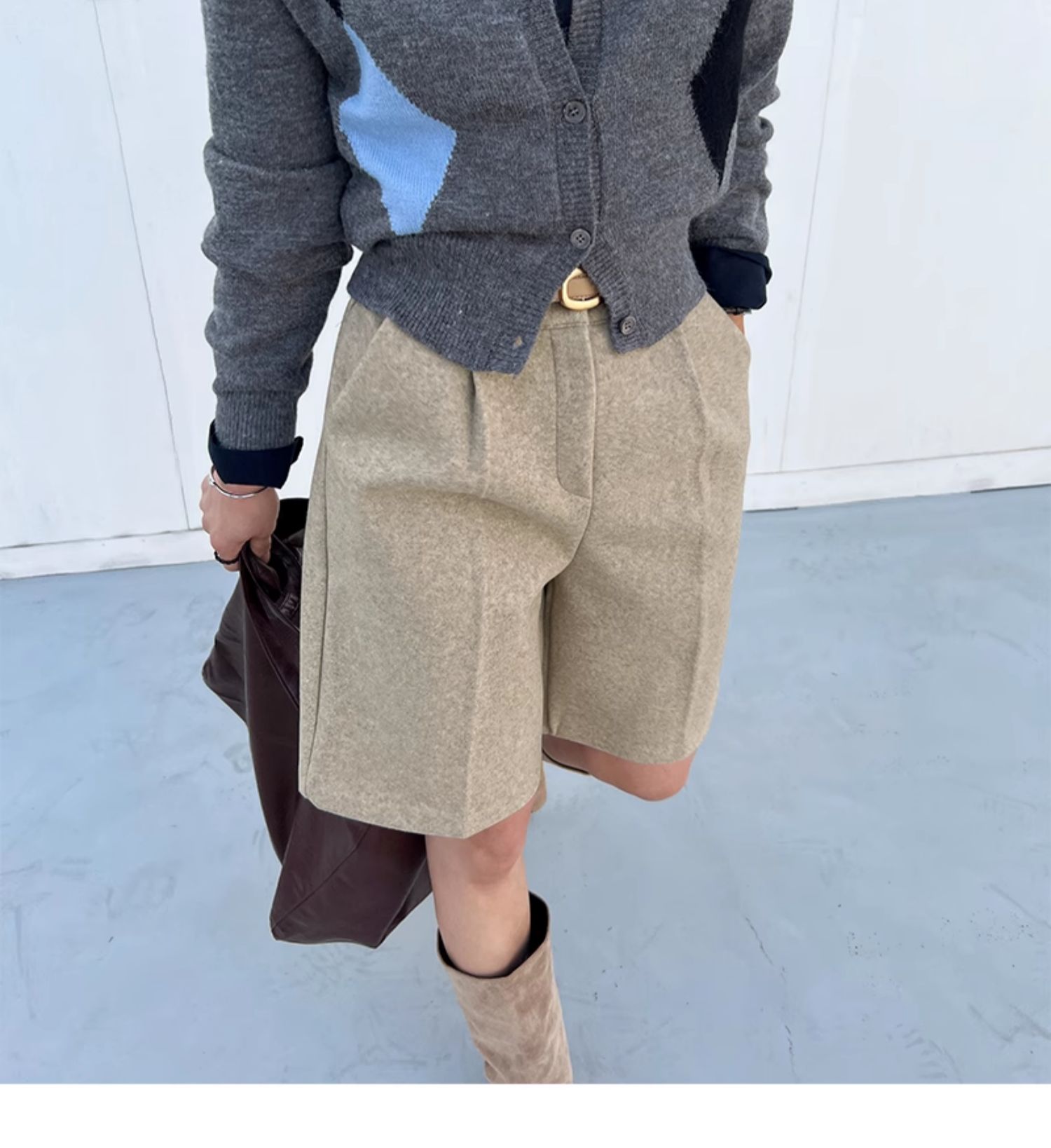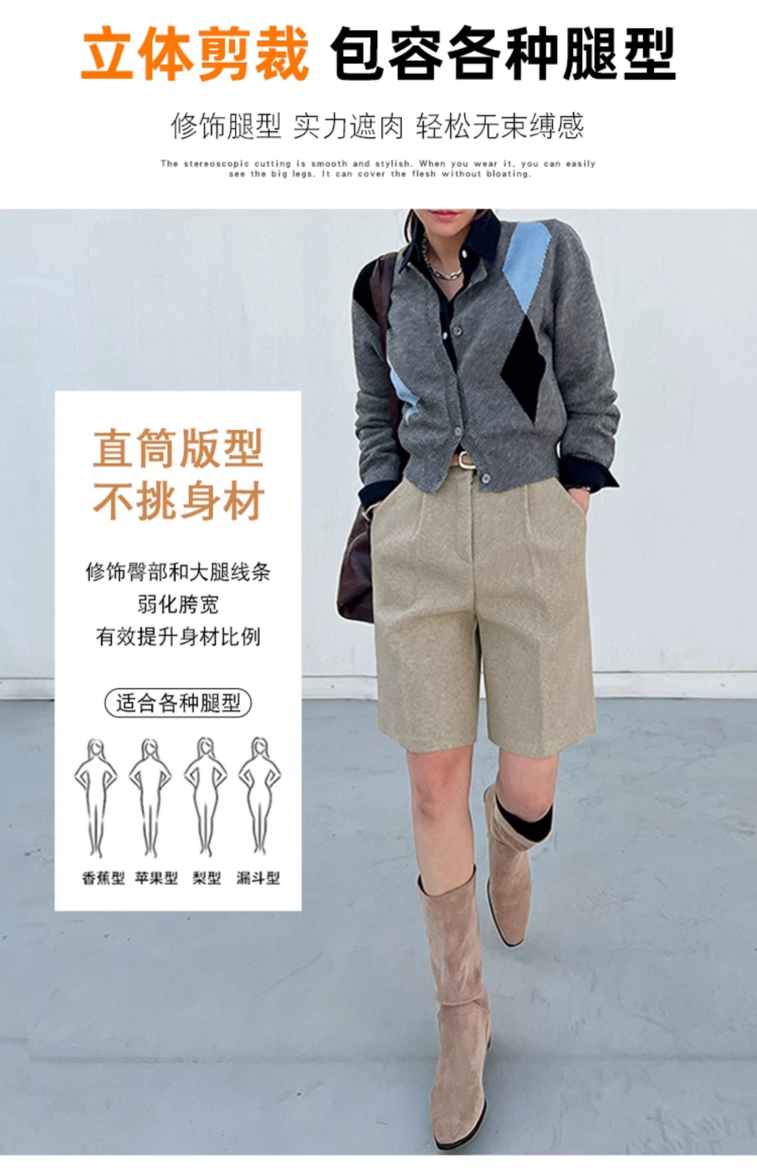 高腰西裝短褲女2025新款秋冬季外穿毛呢五分褲百搭加厚5分中褲子