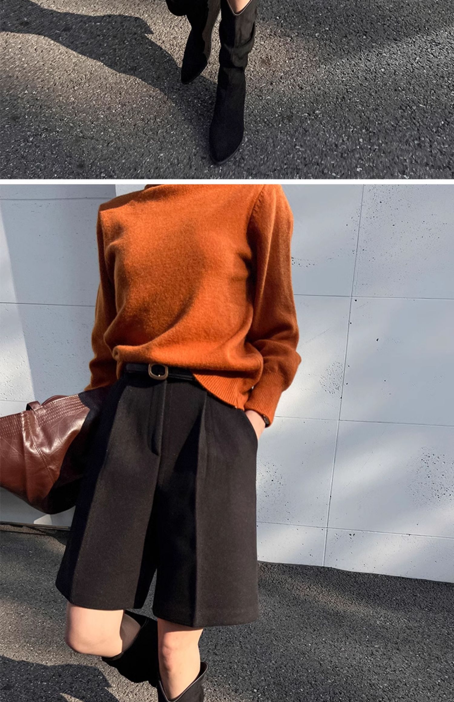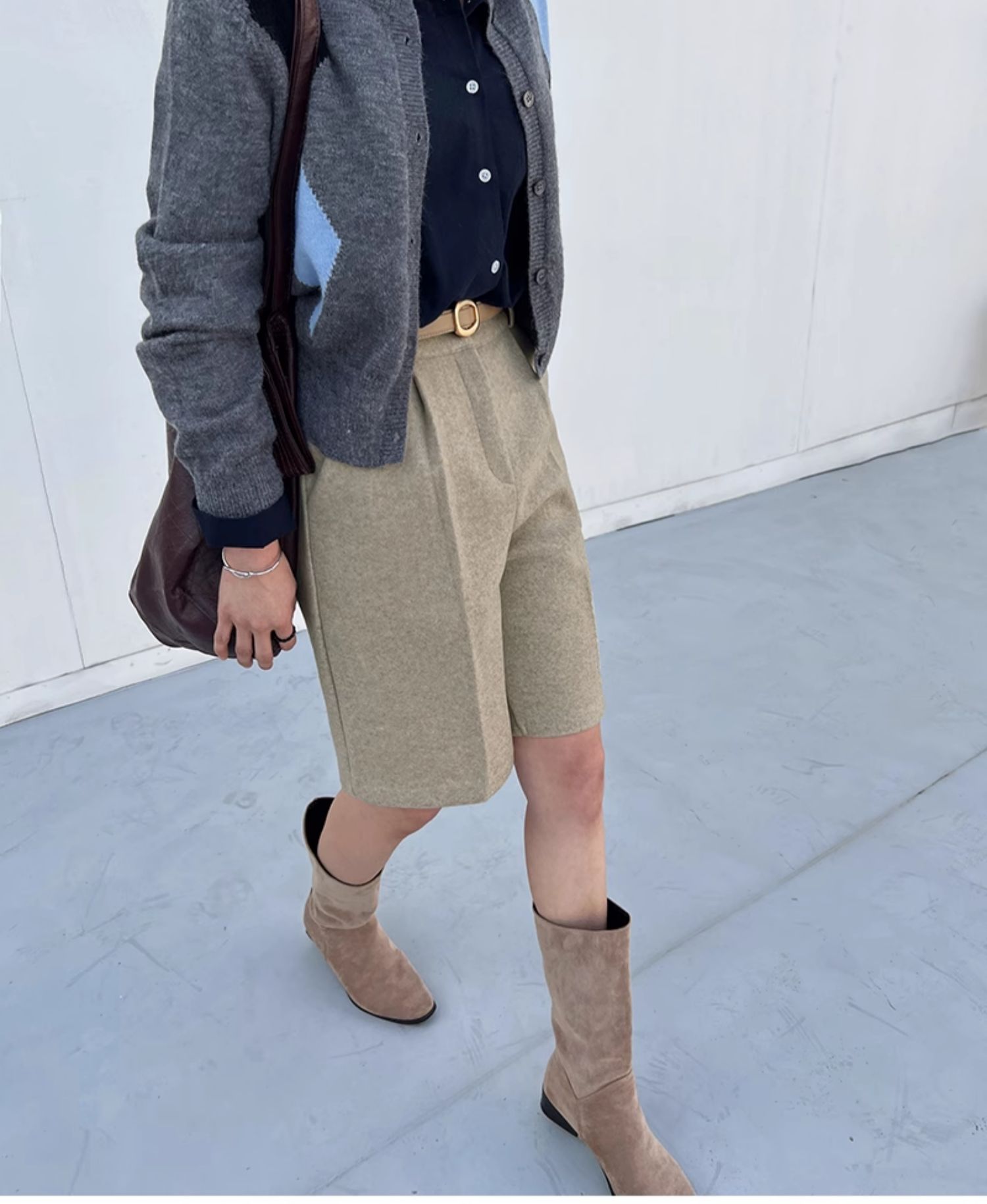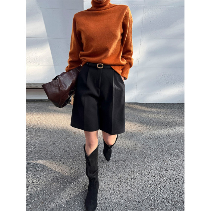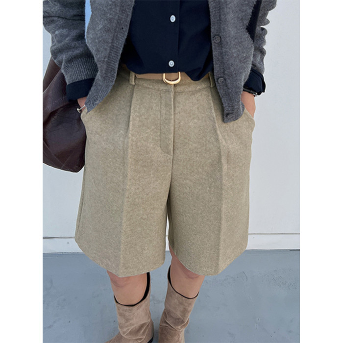 高腰西裝短褲女2025新款秋冬季外穿毛呢五分褲百搭加厚5分中褲子