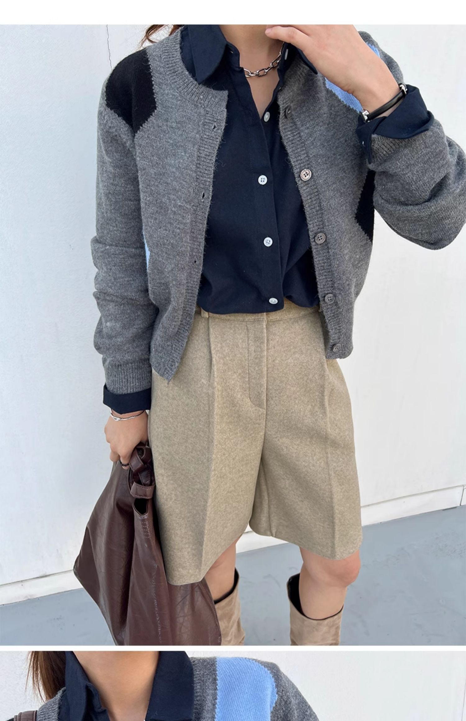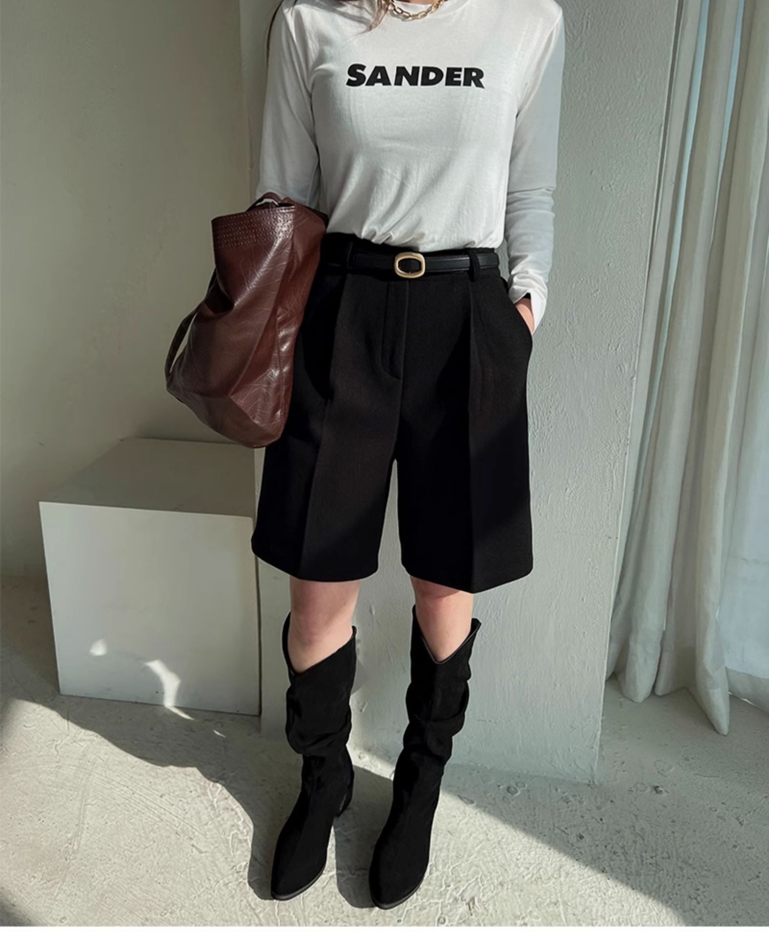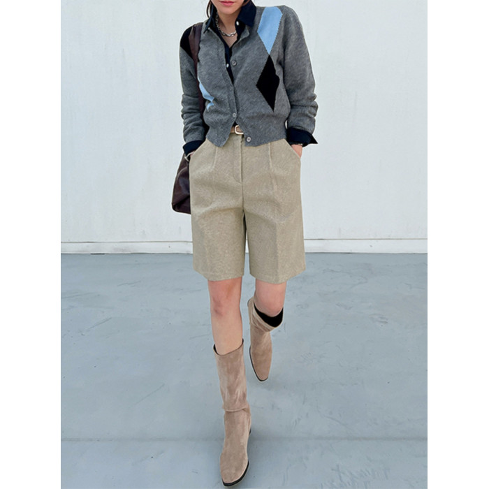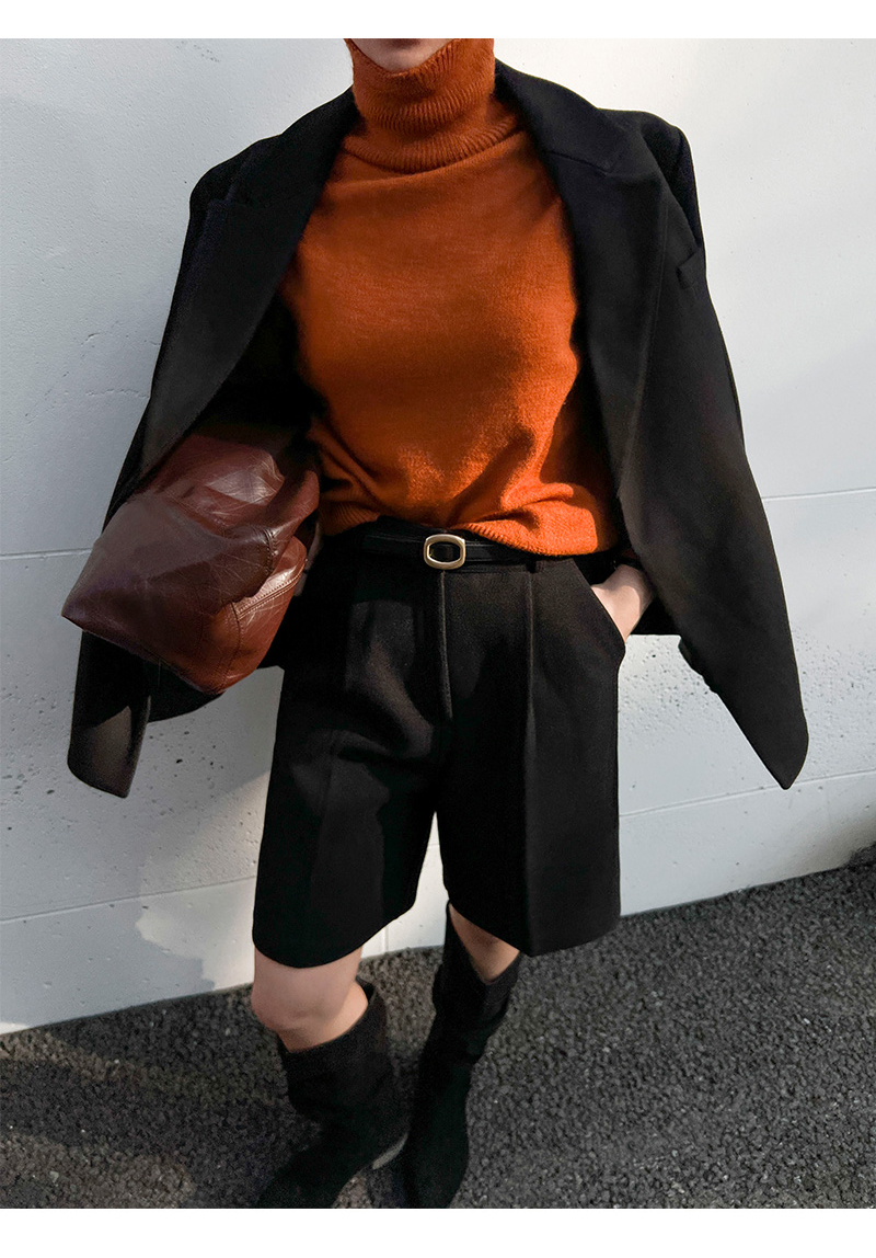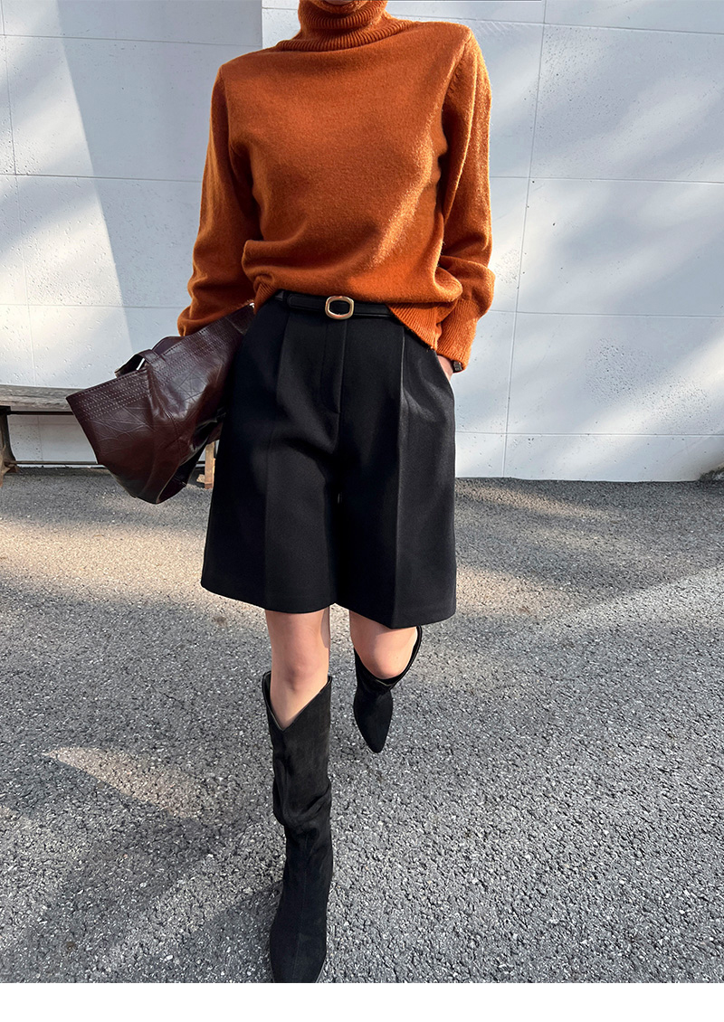 高腰西裝短褲女2025新款秋冬季外穿毛呢五分褲百搭加厚5分中褲子