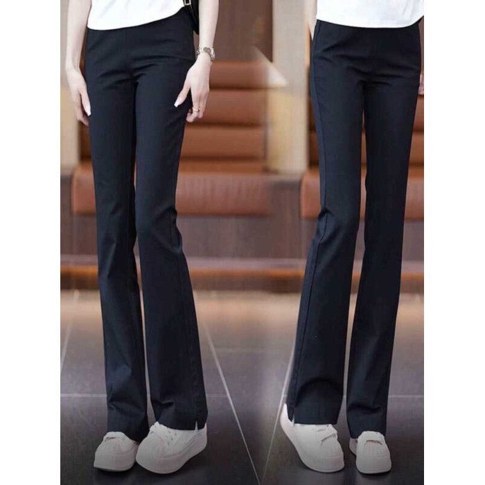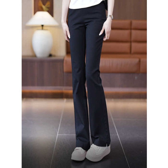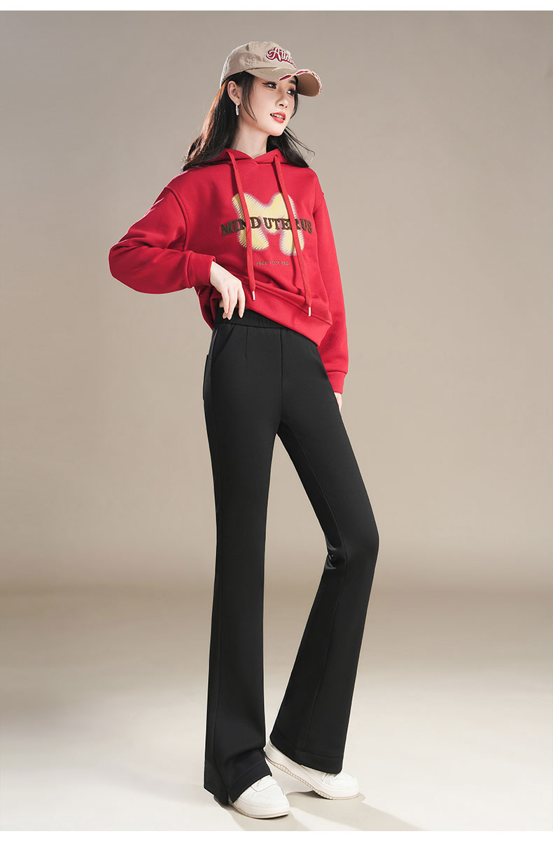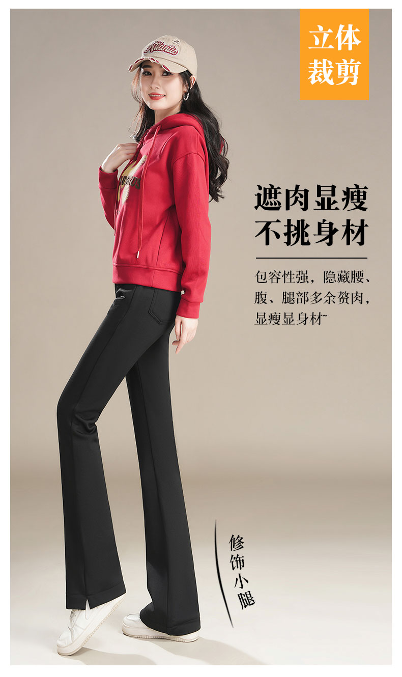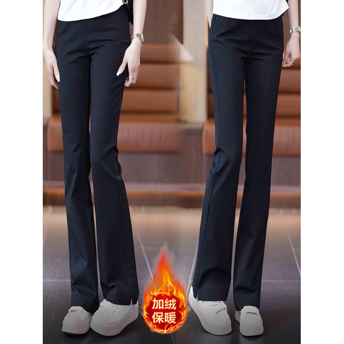 加絨微喇褲女2025新款百搭時尚休閒褲喇叭褲高腰修身松緊女小黑褲