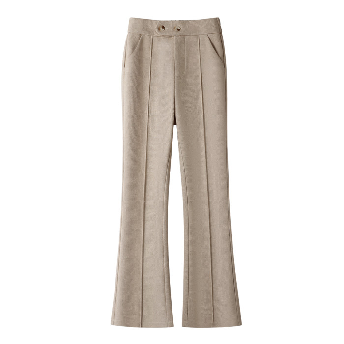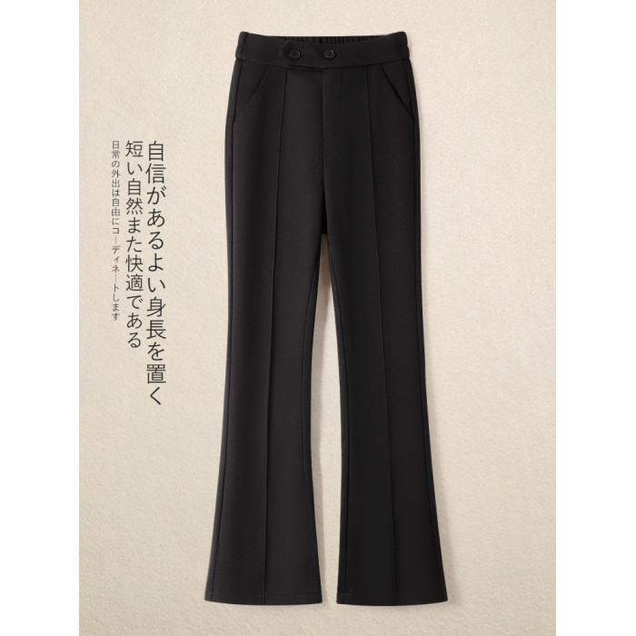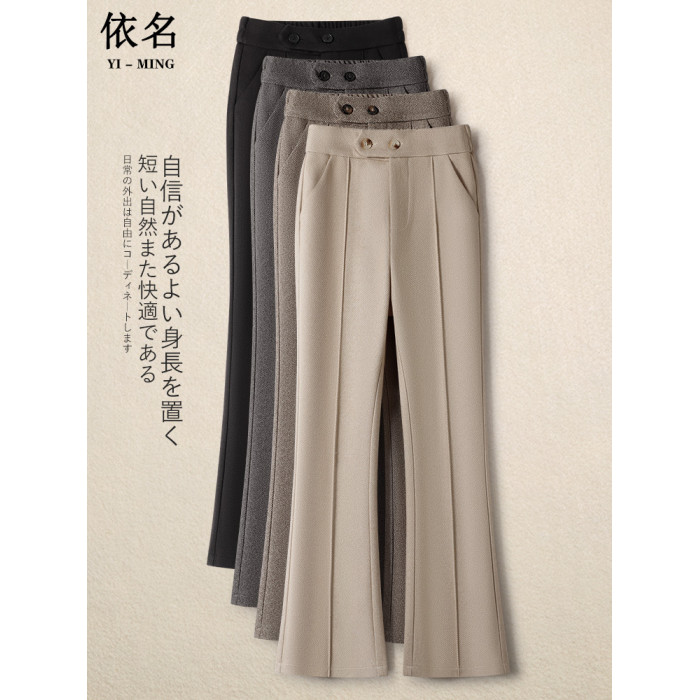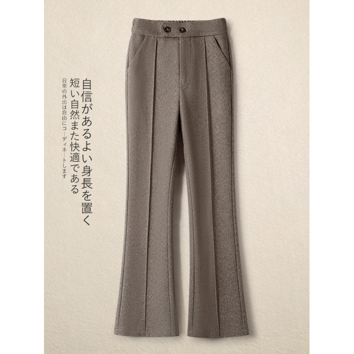 加絨松緊腰微喇褲毛呢褲女秋冬2025新款加厚馬蹄褲顯瘦修身喇叭褲