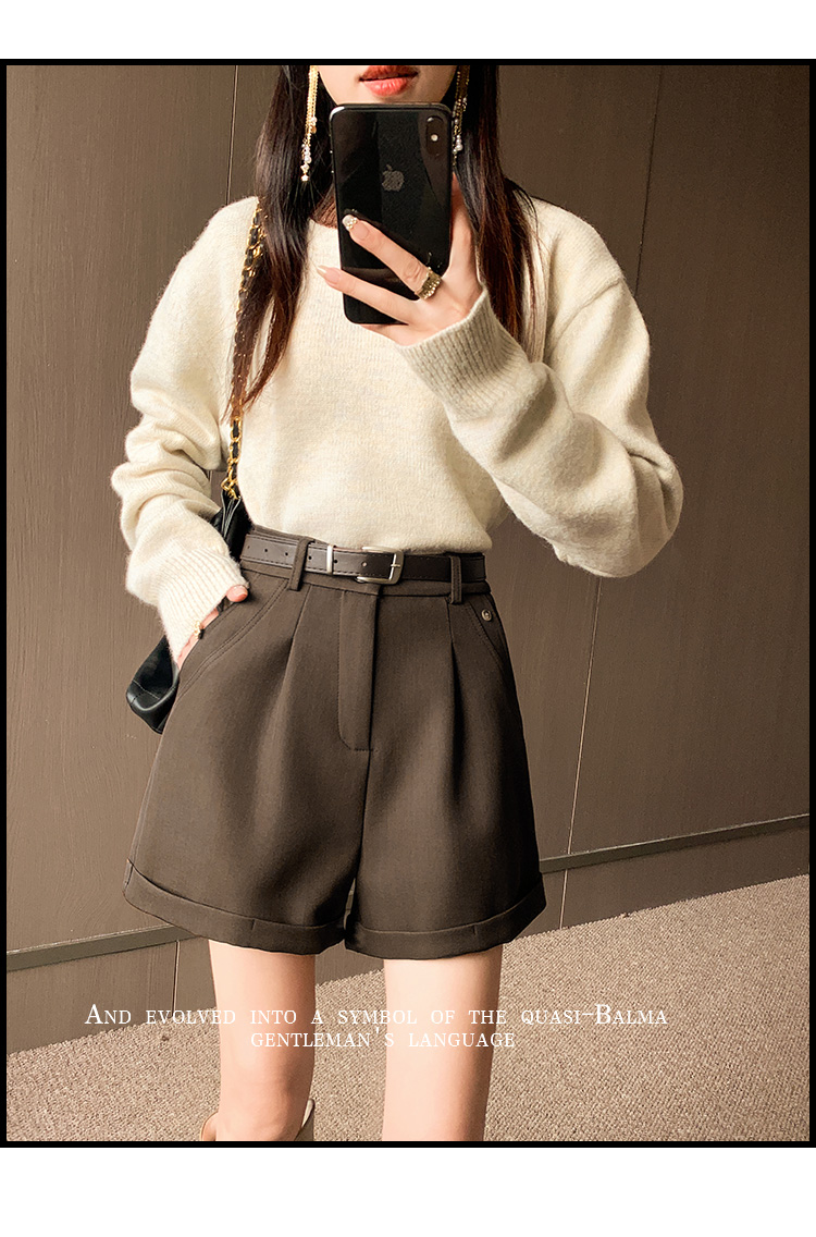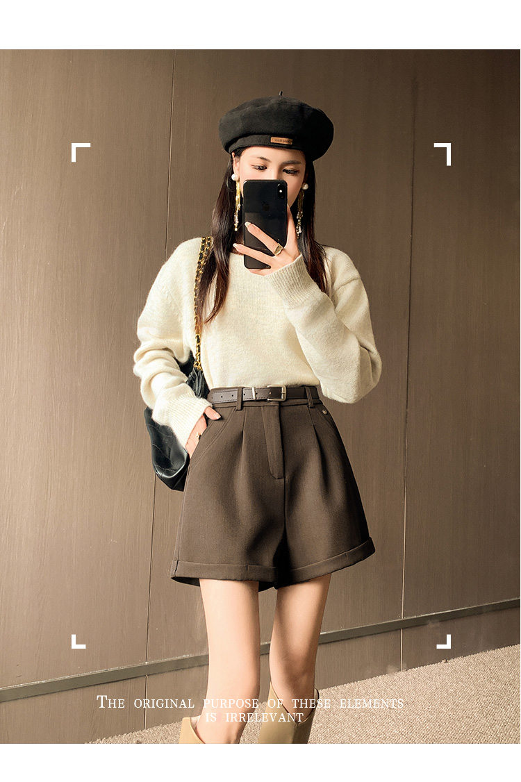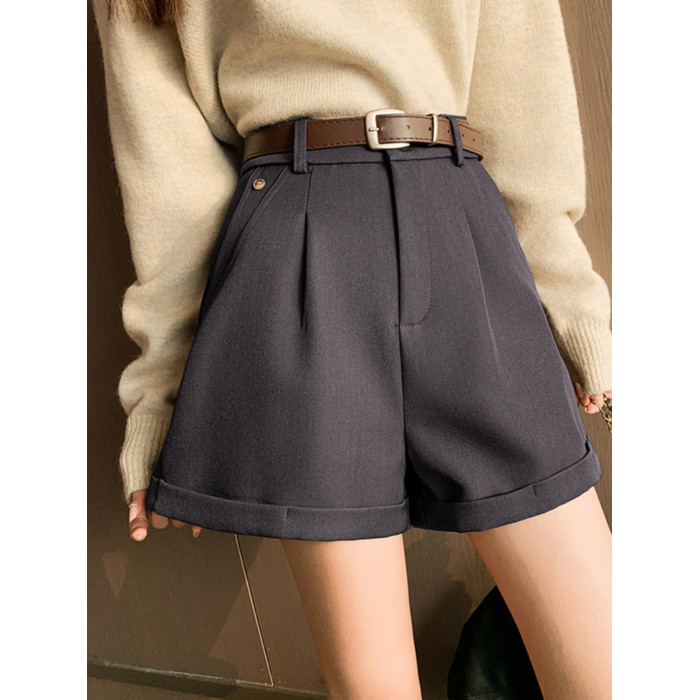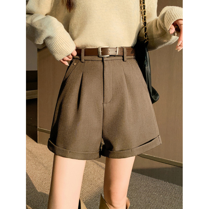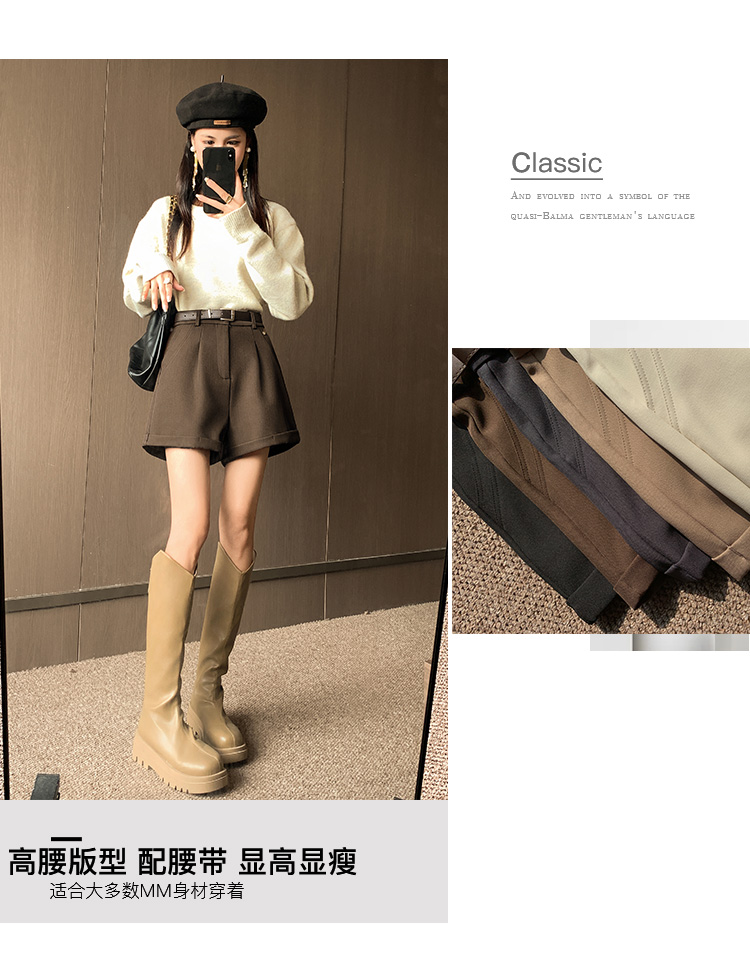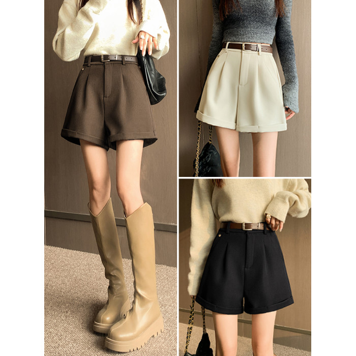 配靴子的短褲女款冬天2025新款春秋小個子外穿高腰a字西裝濶腿褲