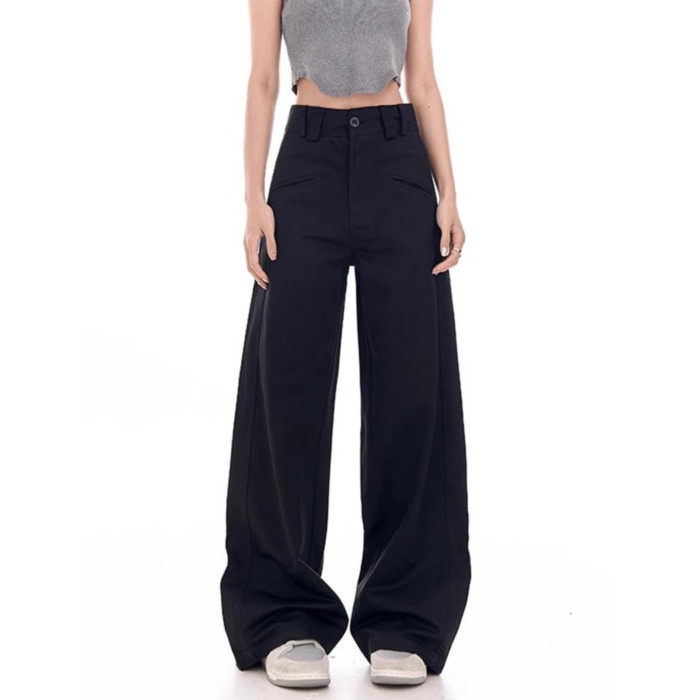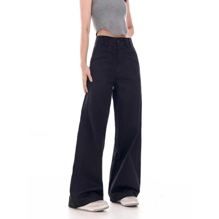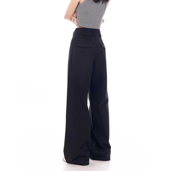 土土家黑色濶腿西裝褲女秋季新款高腰顯瘦垂感直筒休閒拖地褲子