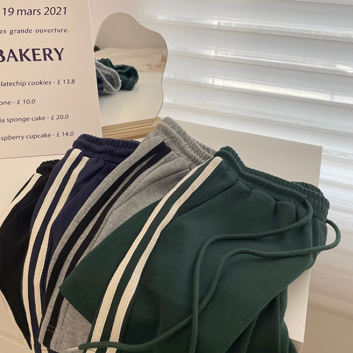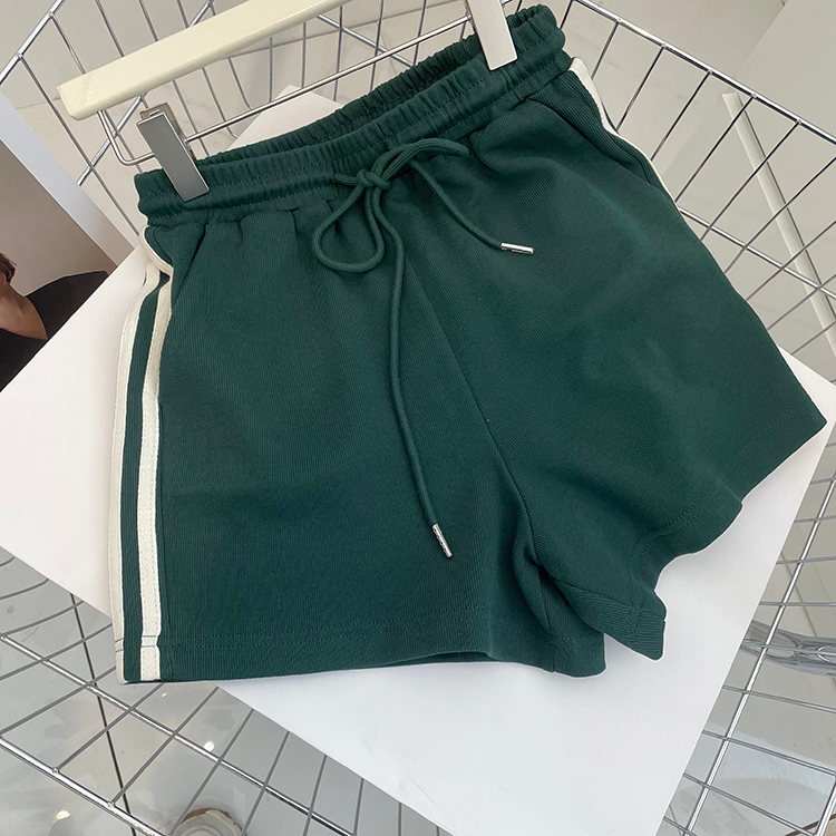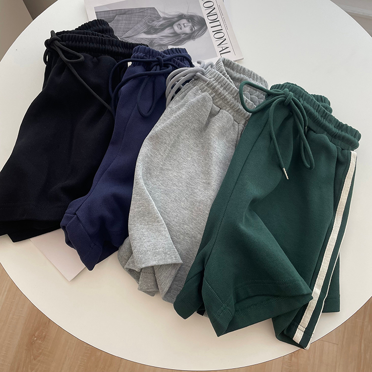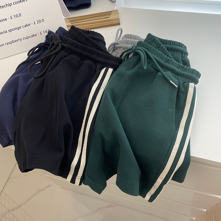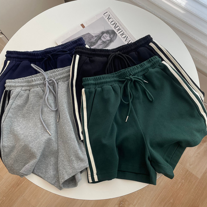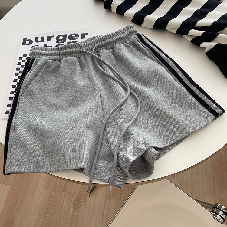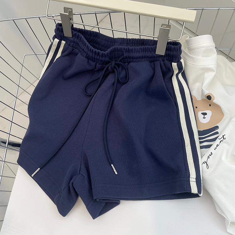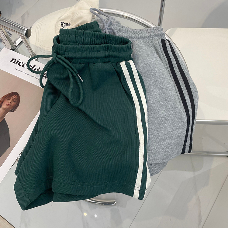 條紋高腰運動熱褲女夏季2025新款韓版百搭休閒濶腿短褲居家外穿